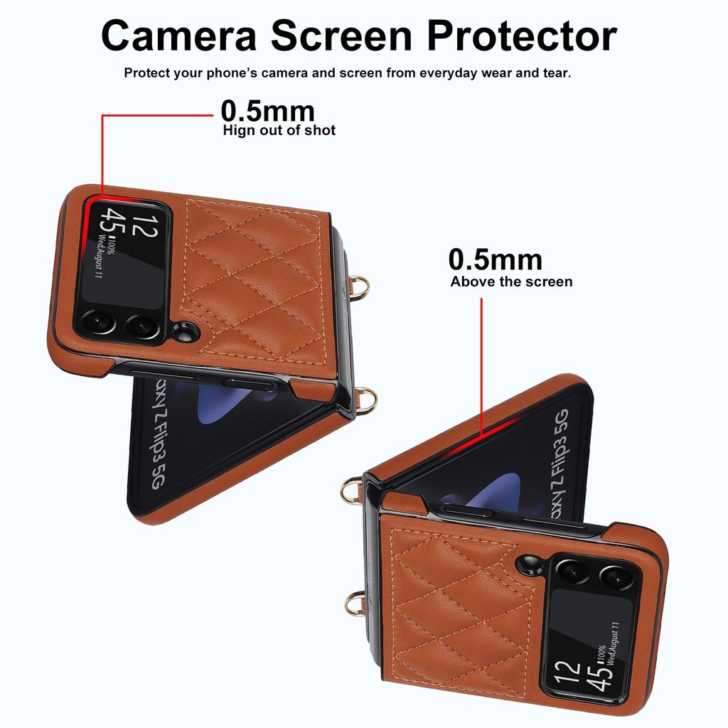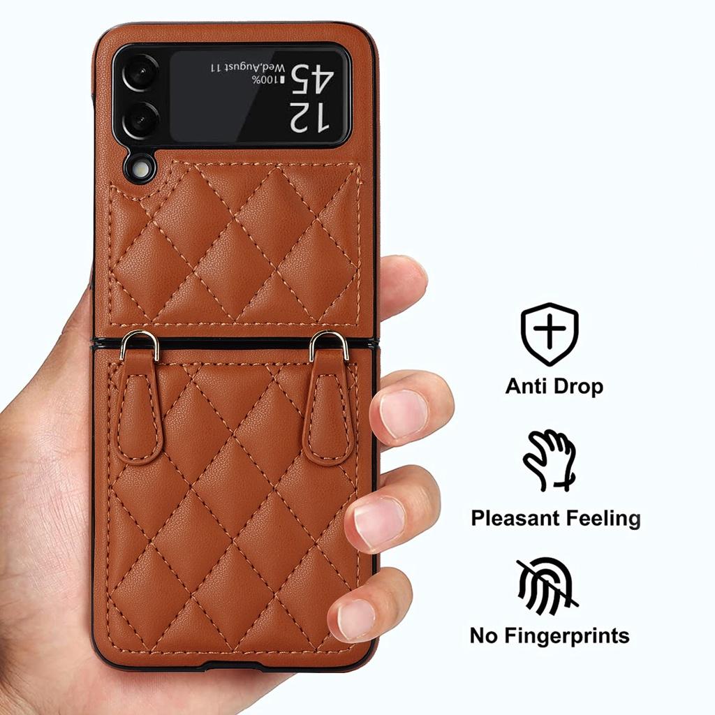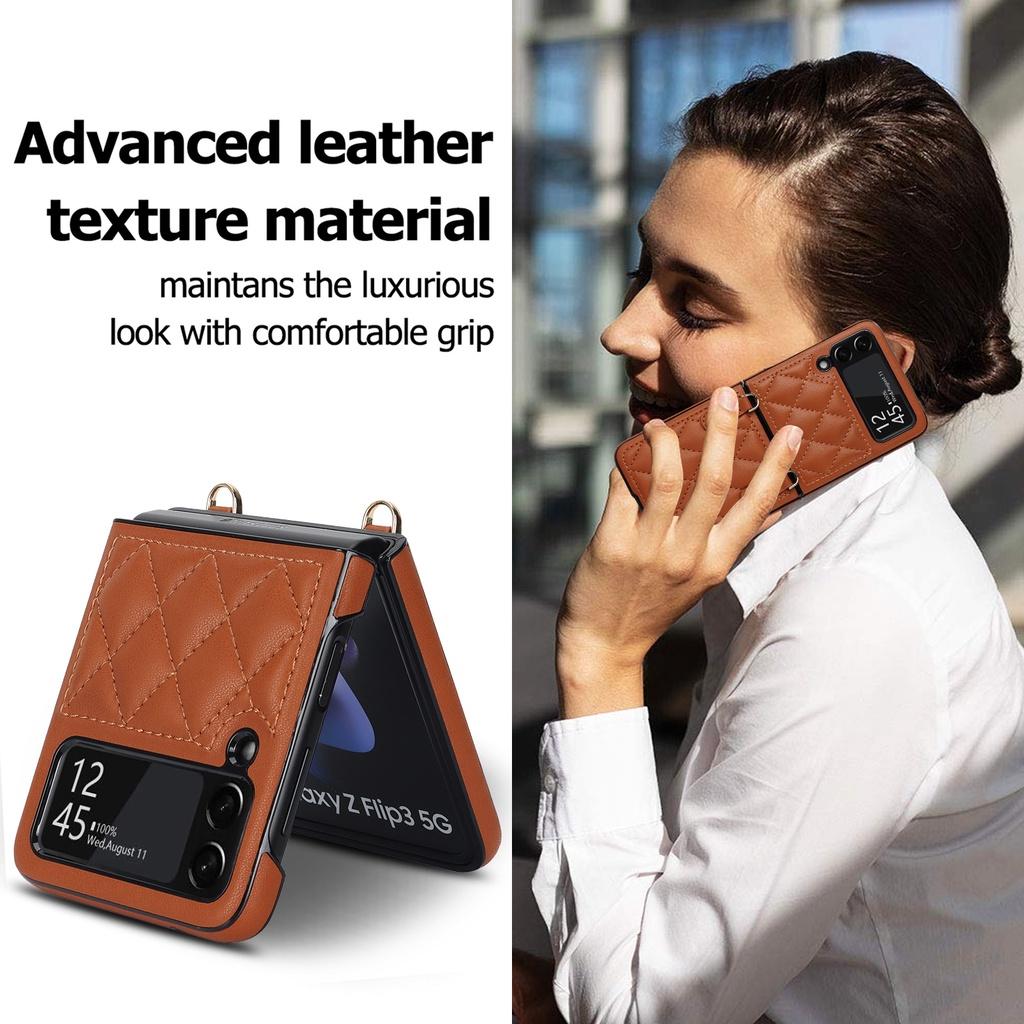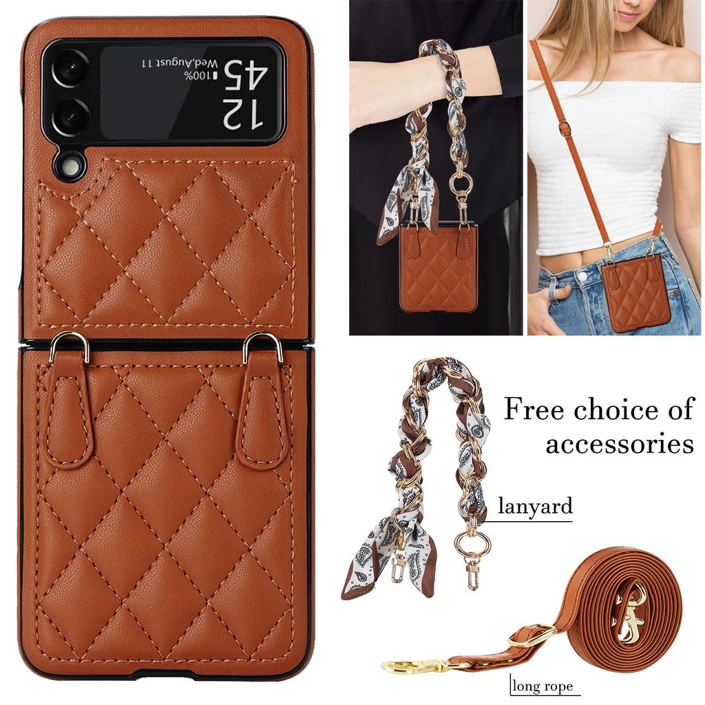 Luxury Silk Scarf Chian Leather Case For Samsung Galaxy Z Flip 6 Flip 5 Flip 4 Flip3 5G Luxury Crossbody Strap Smart Phone Cover