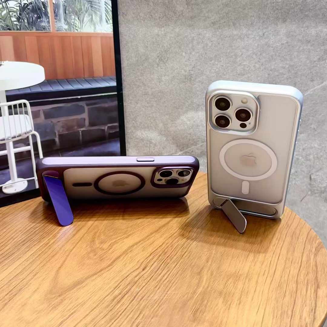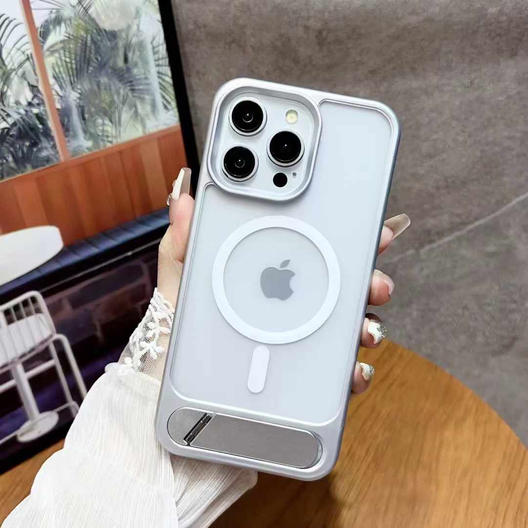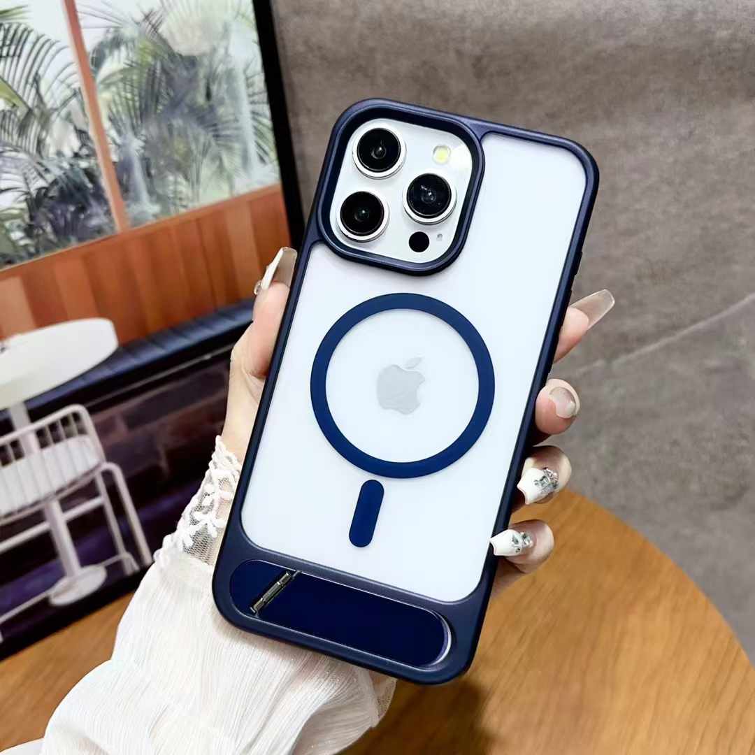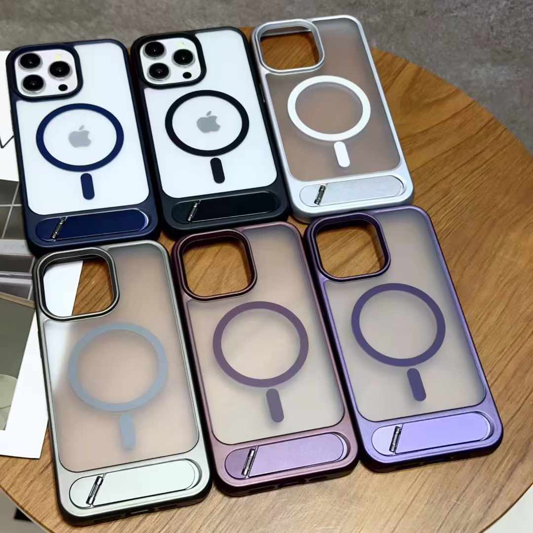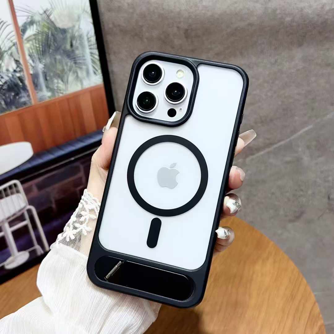 Magnetic Shockproof Frosted Phone Case For iPhone 16 15 14 13 12 11 Pro Max Invisible Bracket Cover