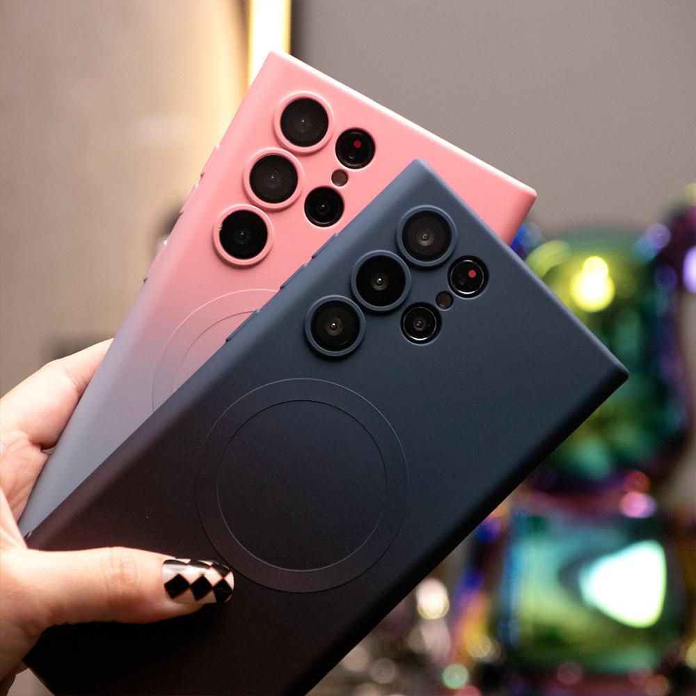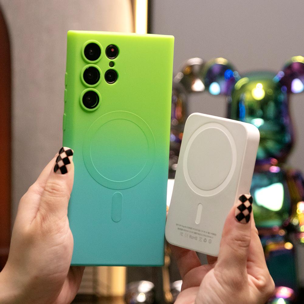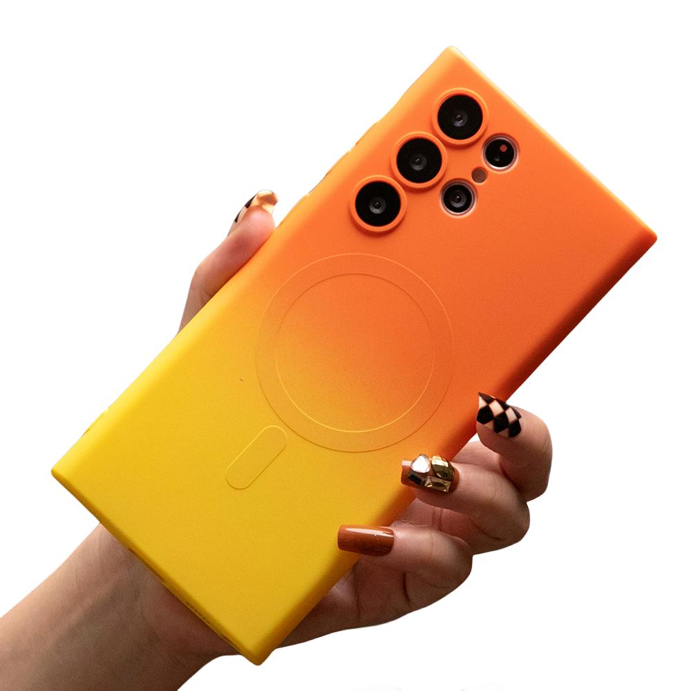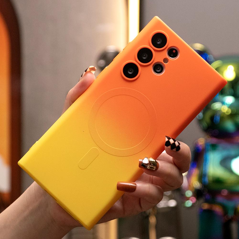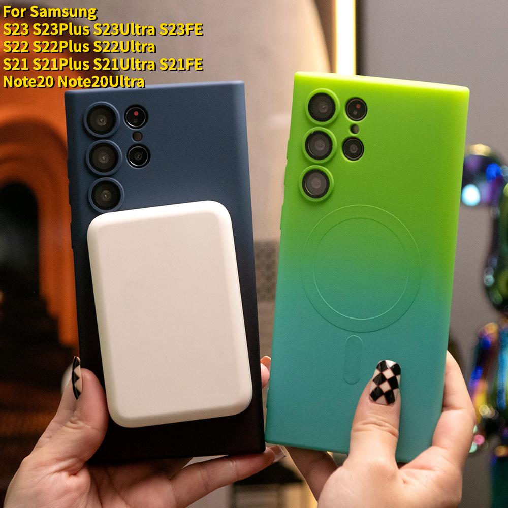 Matte Gradient Color Magnetic Wireless Charging Phone Case For Samsung S24FE S24Ultra S24 S23Ultra S23 S22 S21 FE Plus Ultra Note 20 Ultra with Lens Protector