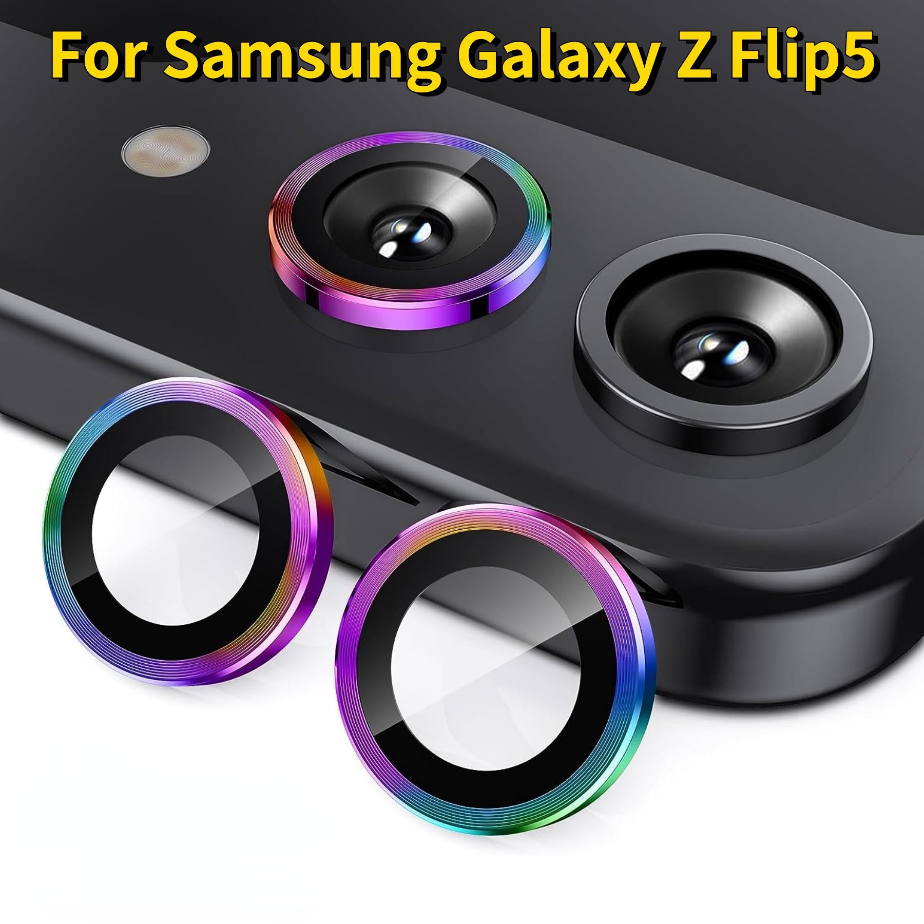 Metal Camera Lens Protector For Samsung Galaxy Z Flip 5 Anti Scratch 9H Tempered Glass With Metal Ring Lens Cover For Galaxy Z Flip5