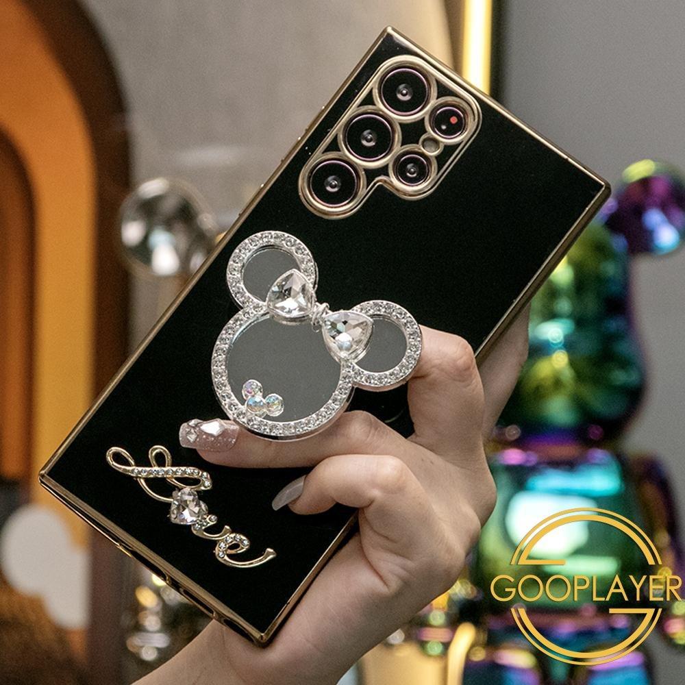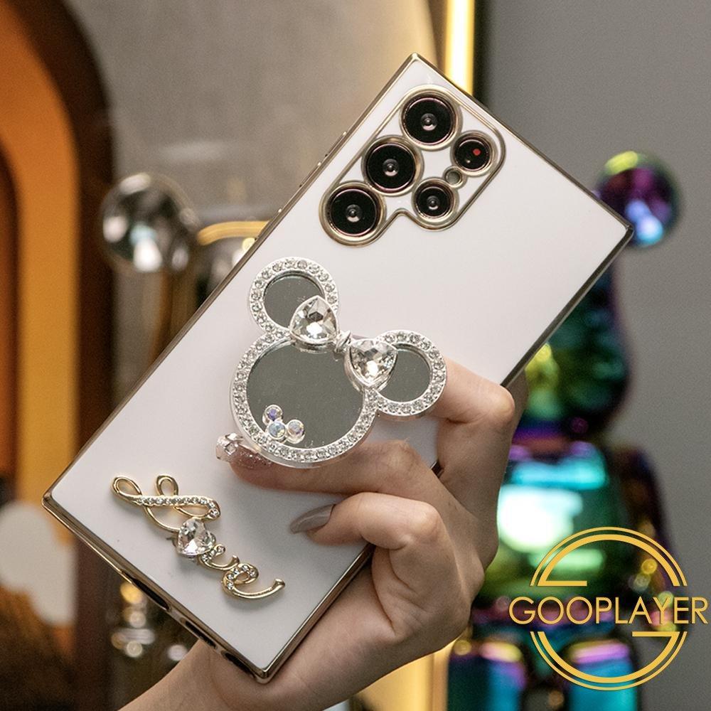 Mouse Head Mirror Pop Stand Kickstand Plating Phone Case For Samsung S25 S24 S23 S22 S21 Note20