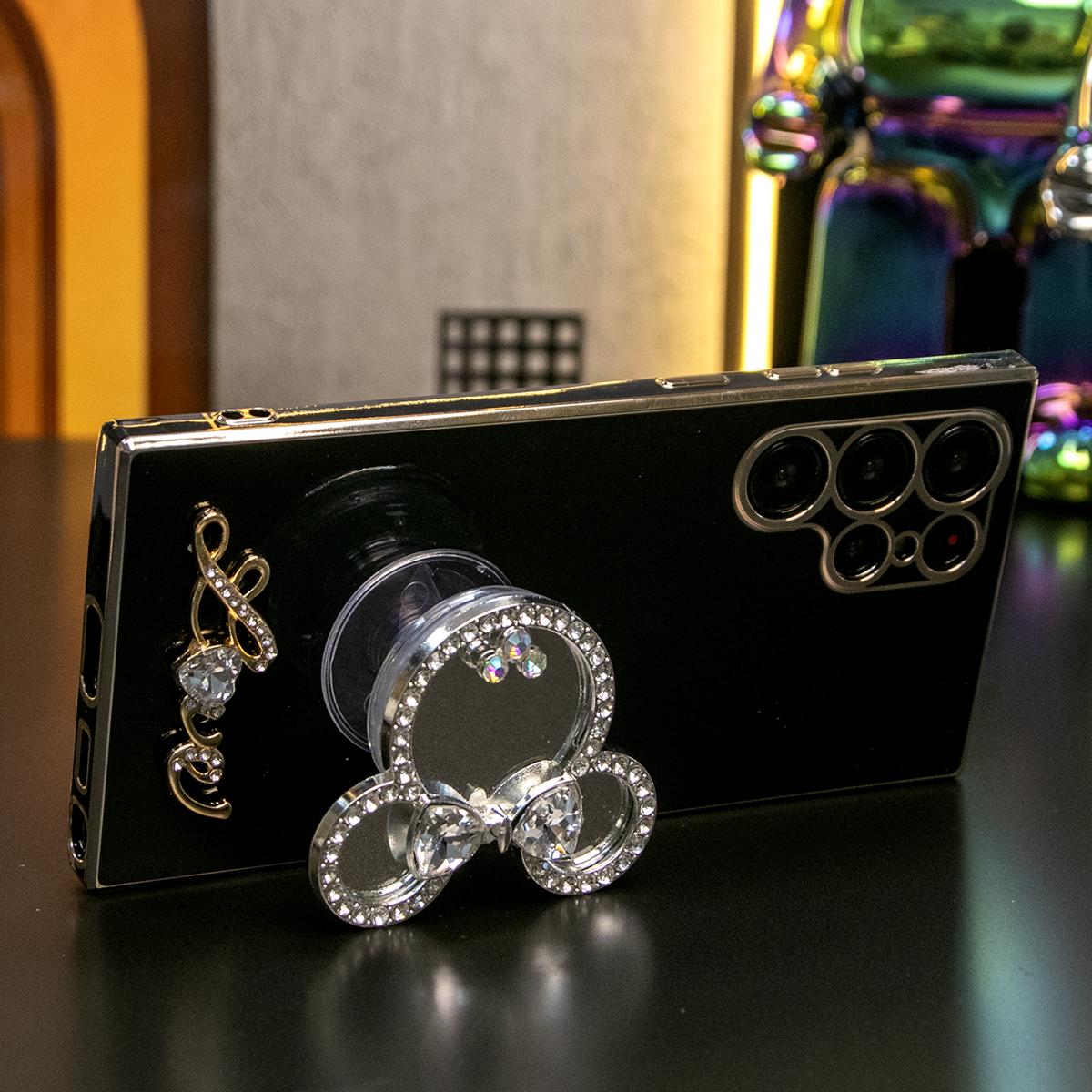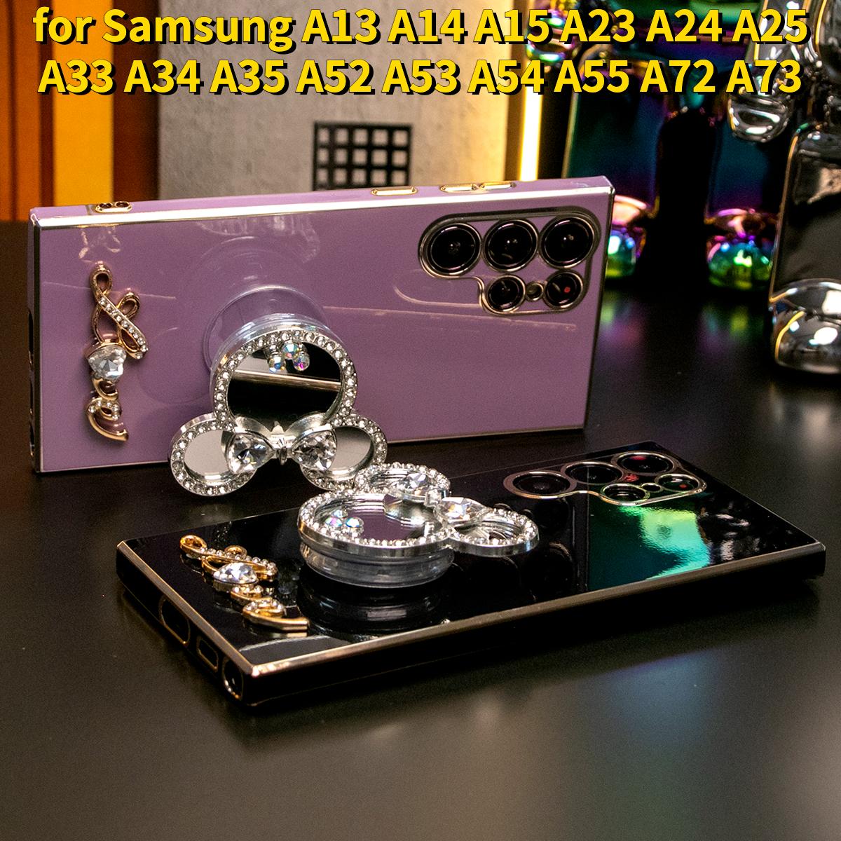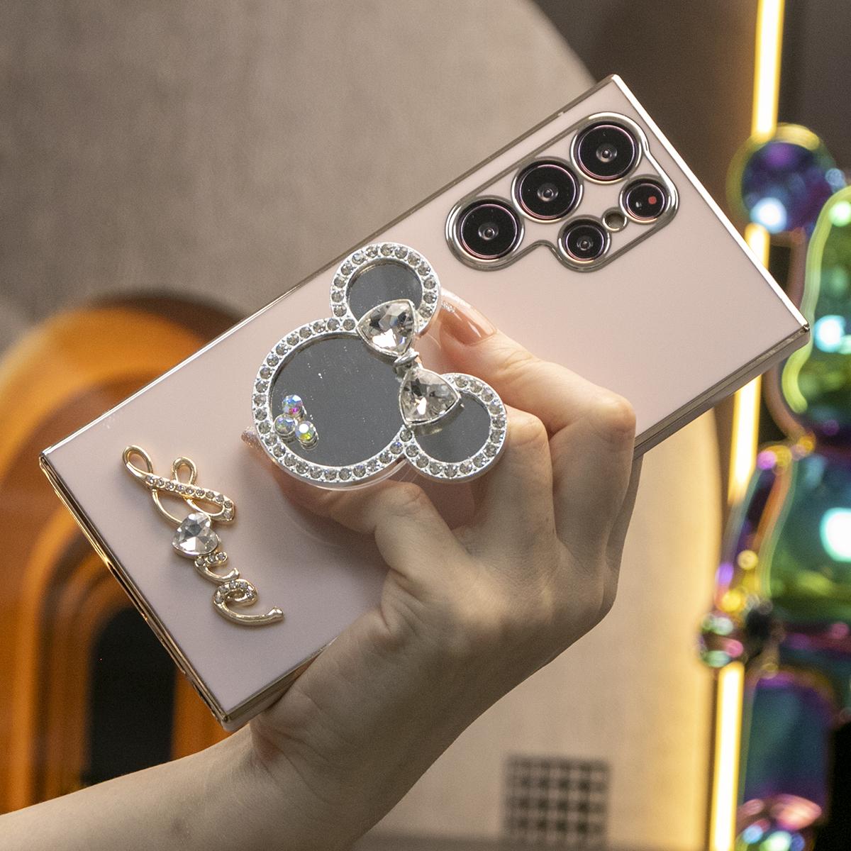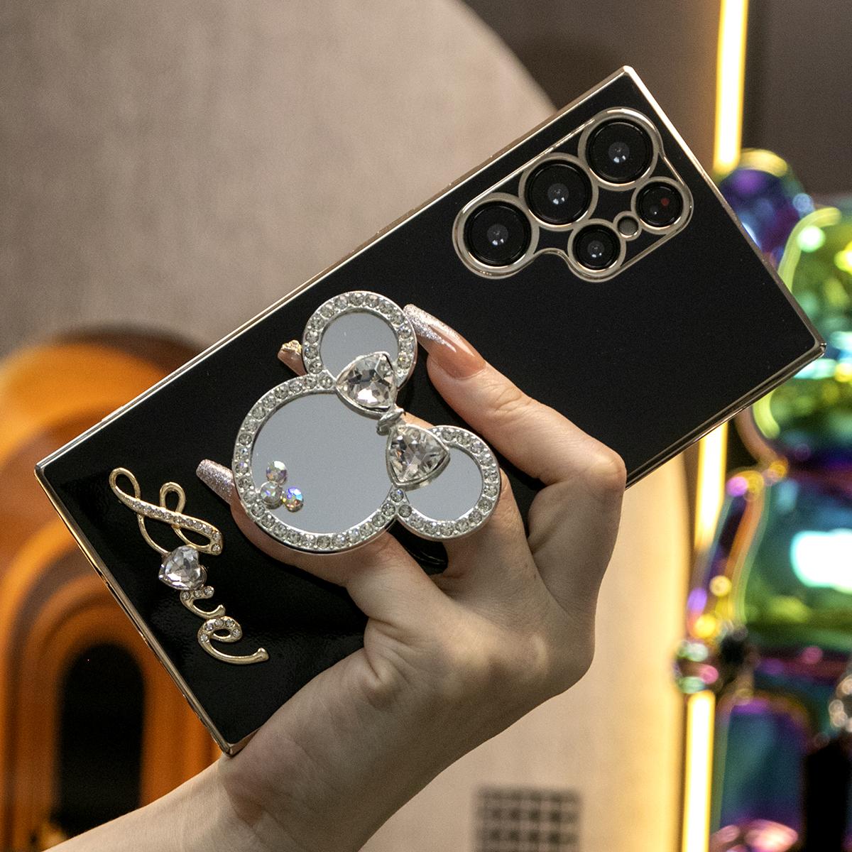 Mouse Head Mirror Popstand Kickstand Plating Soft Phone Case for Samsung A13 A14 A15 A23 A24 A25 A33 A34 A35 A52 A53 A54 A55 A72 A73