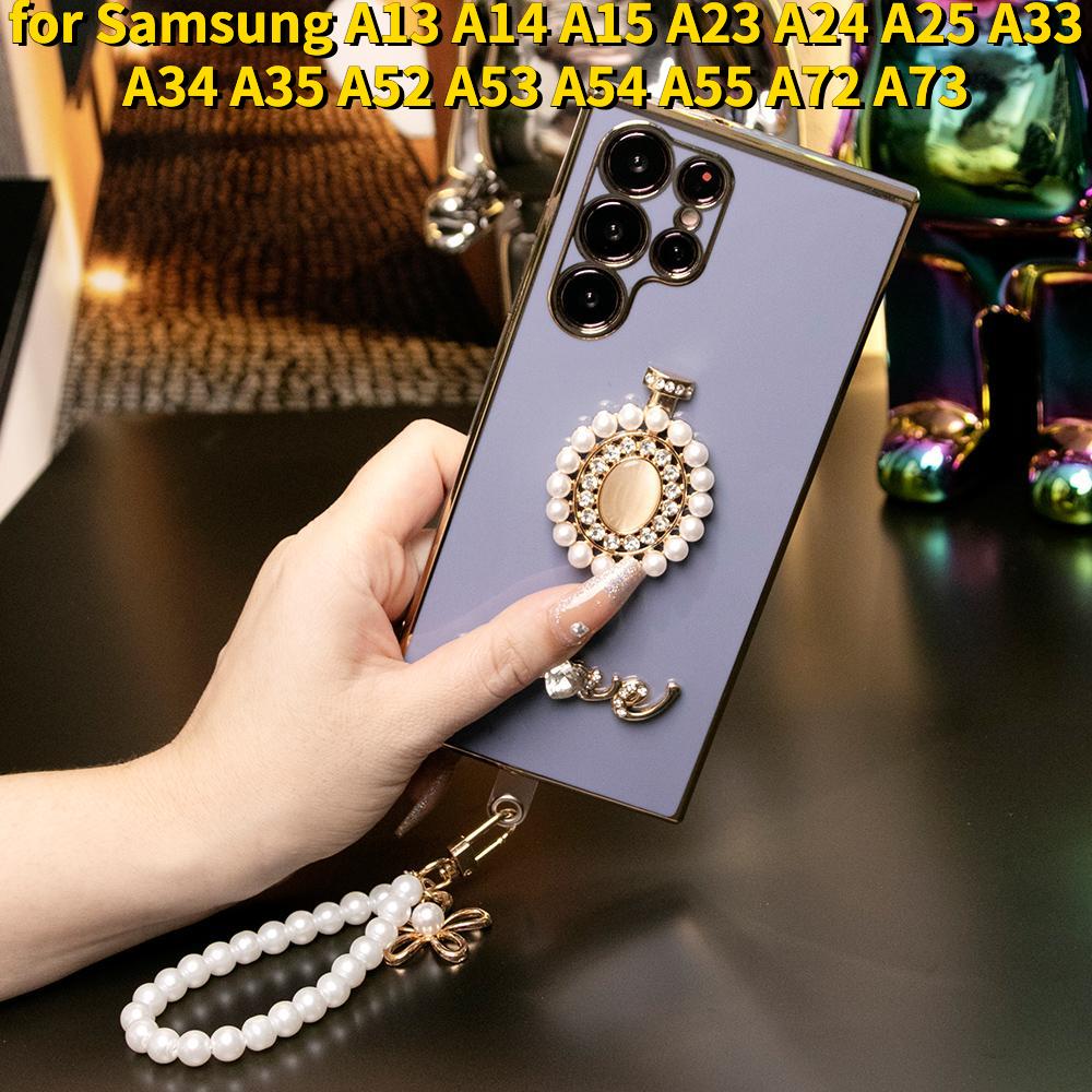 Pearl Perfume Bottle with Chain Plating Soft Phone Case for Samsung A13 A14 A15 A23 A24 A25 A33 A34 A35 A52 A53 A54 A55 A72 A73