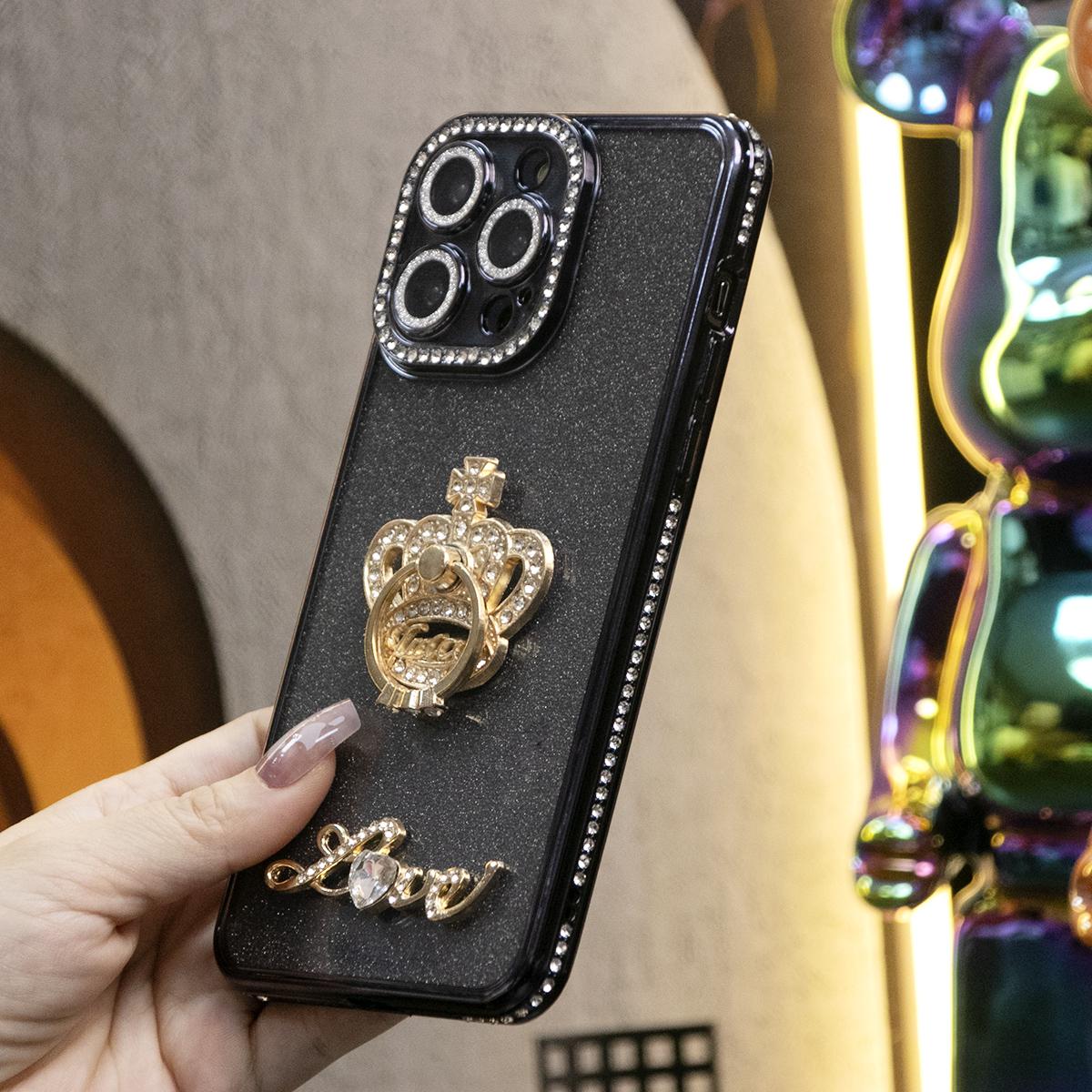 Plating Glitter Diamond Crown Ring Kickstand Phone Case For iPhone 16 15 14 13 12 11 Pro Max