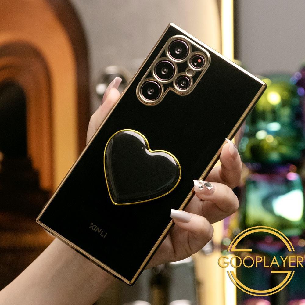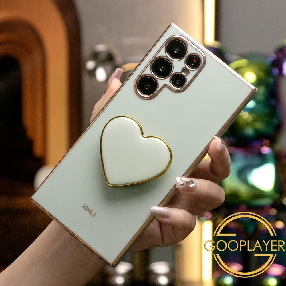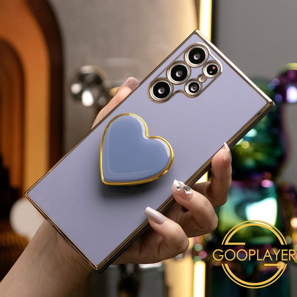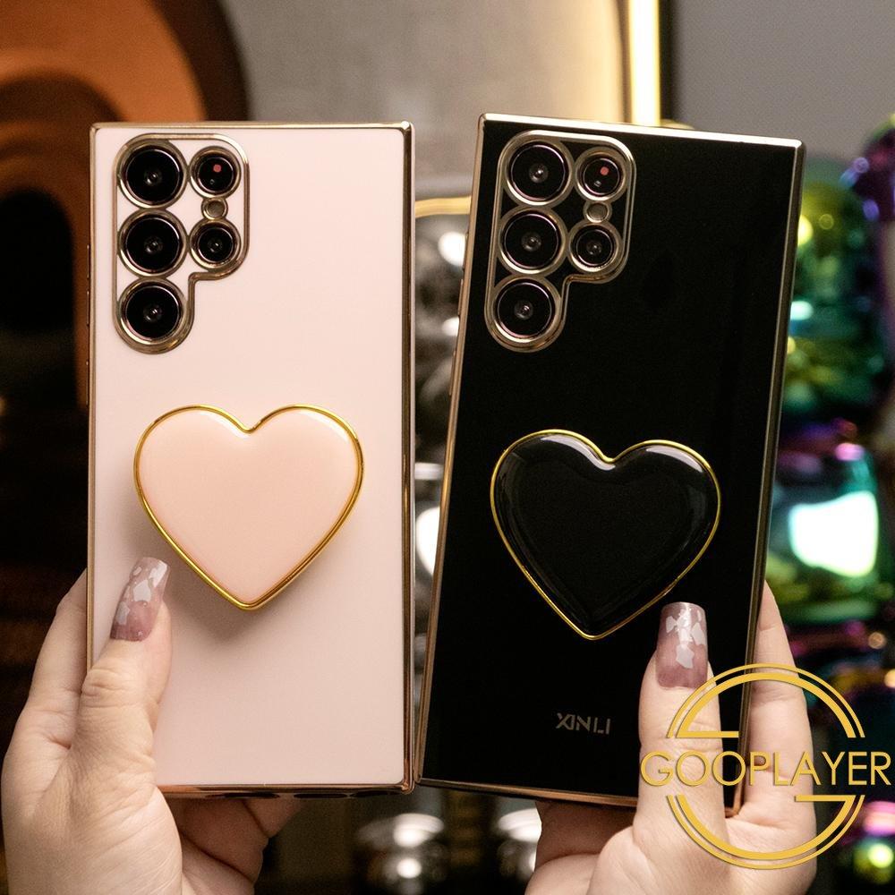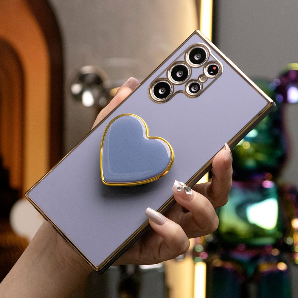 Plating Love Heart Pop Stand Phone Case For Samsung S25 S24 S23 S22 S21 Note20