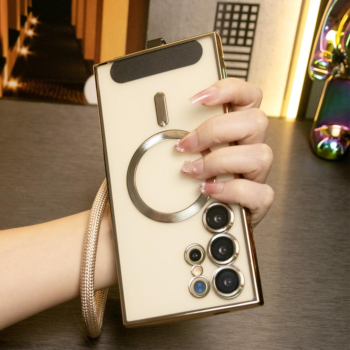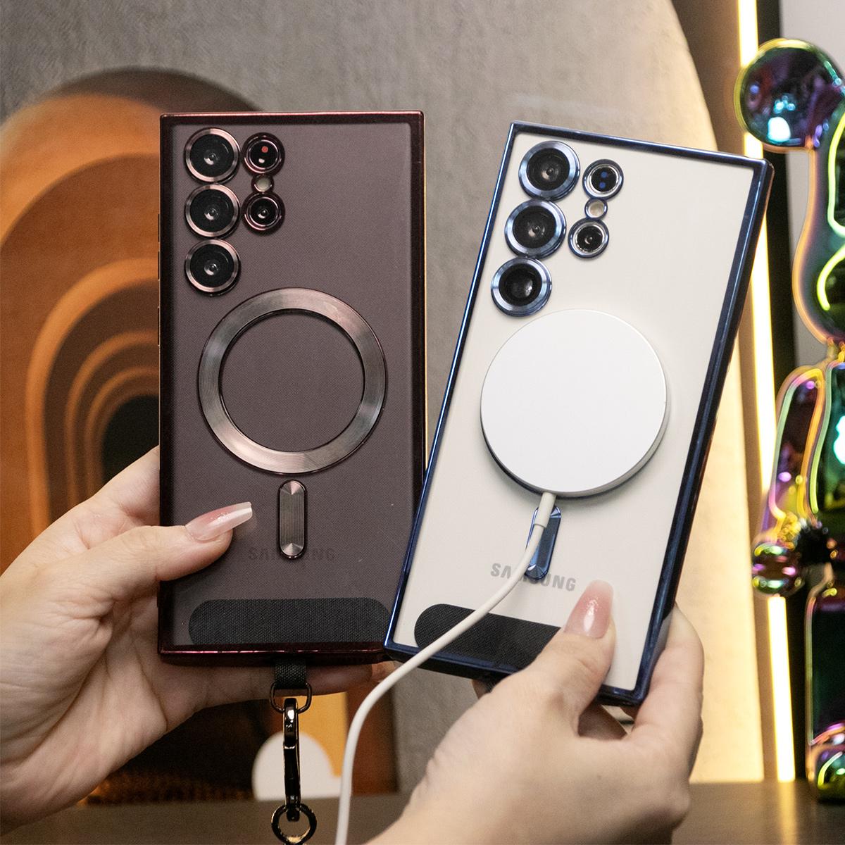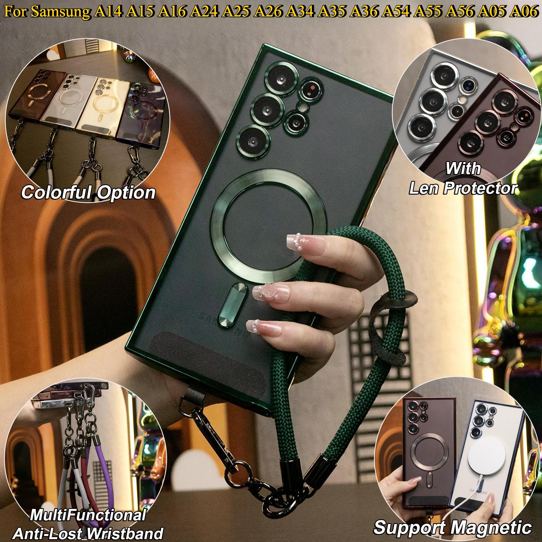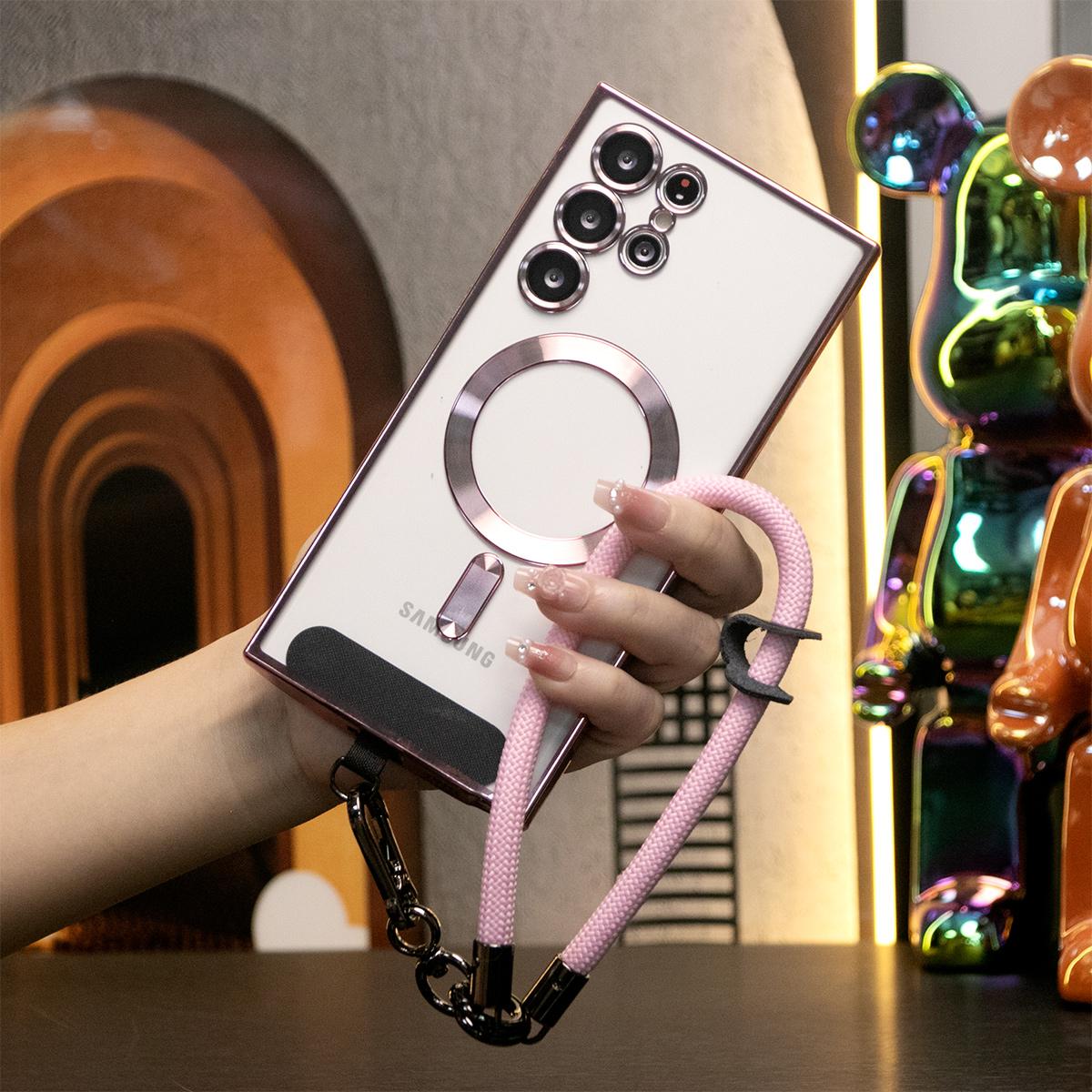 Plating Magnetic Wireless Charge Transparent Soft Phone Case With Multifunctional Climbing Rope For Samsung A14 A15 A16 A24 A25 A26 A34 A35 A36 A54 A55 A56 A05 A05S A06