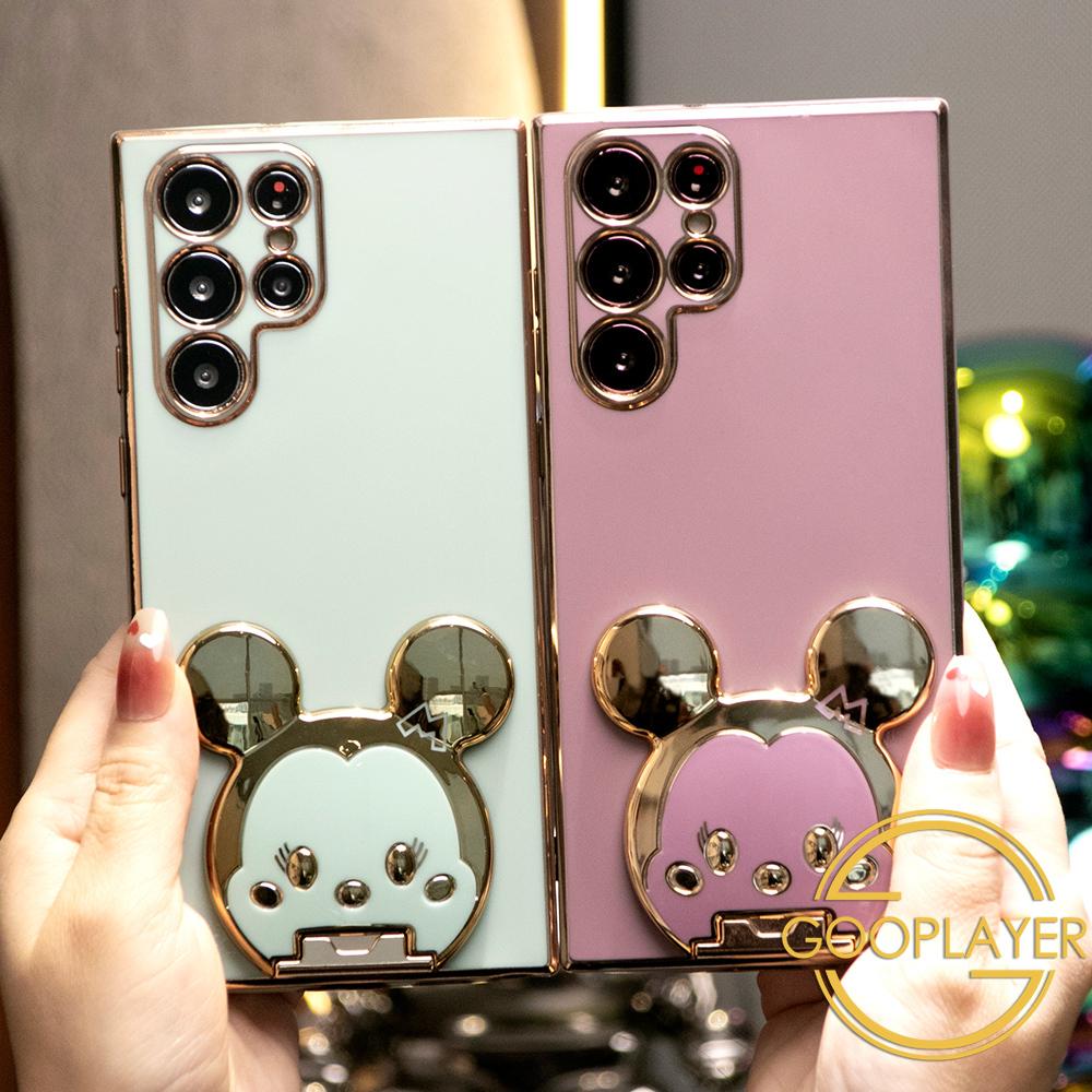 Plating Mouse Head Popstand Kickstand Phone Case For Samsung S25 S24 S23 S22 S21 Note20