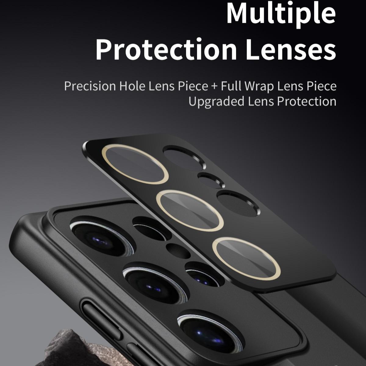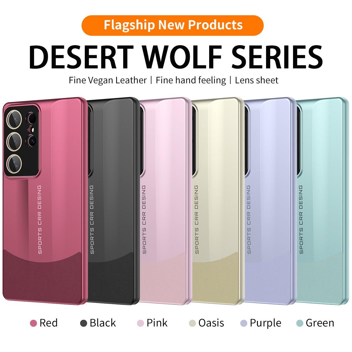 Premium PC Leather Two-tone Len Protector Shockproof Phone Case For Samsung S25Ultra S25 S24 S23 Hard Full Cover