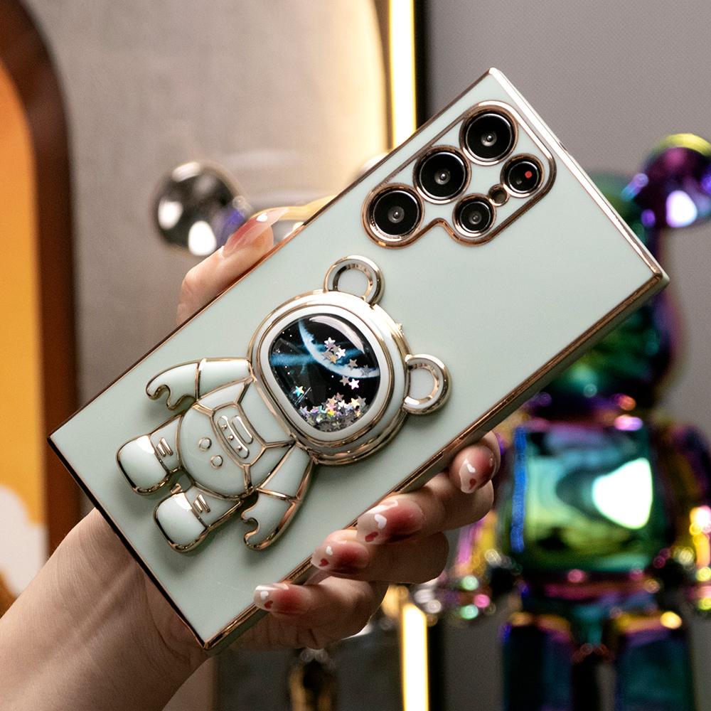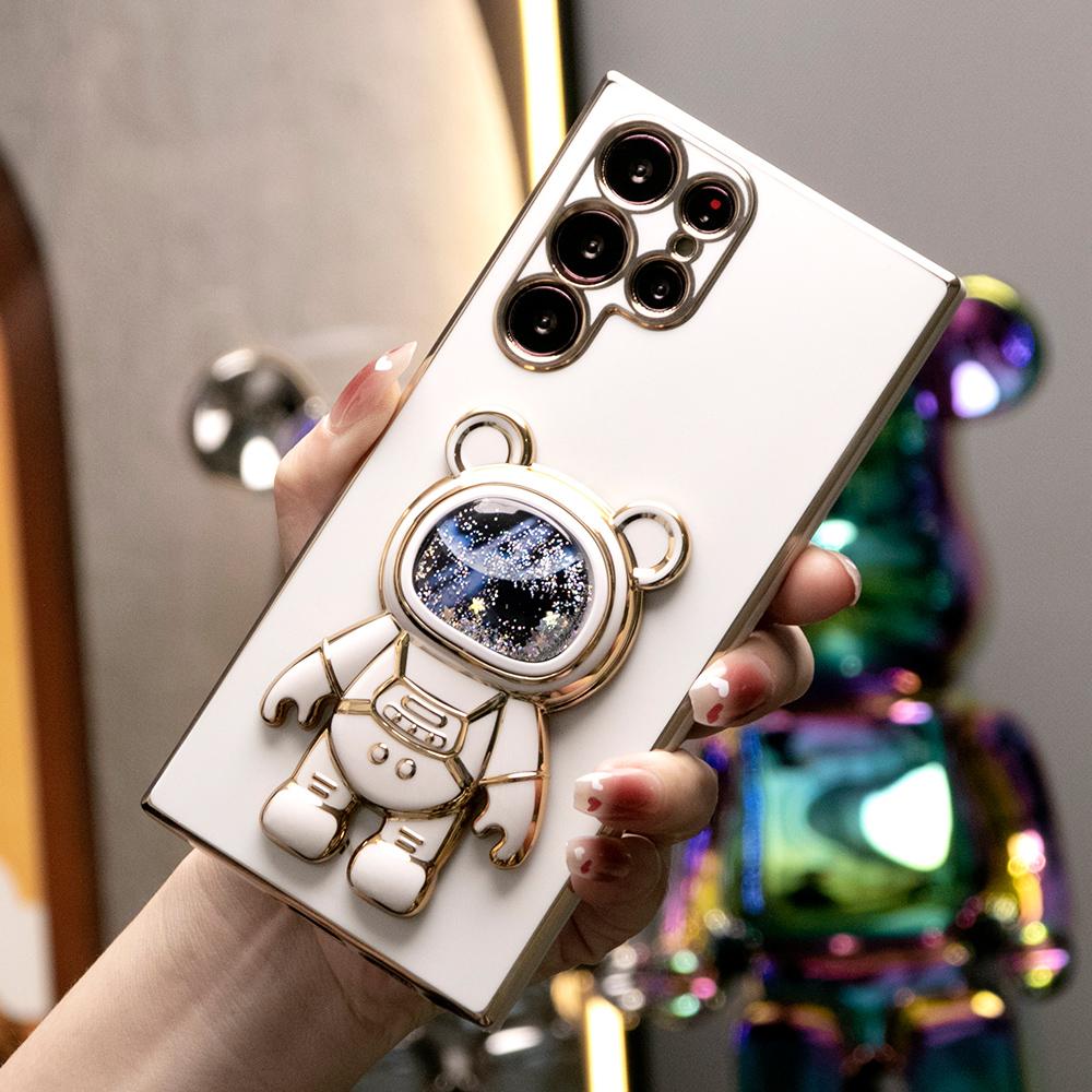 Quicksand Astronaut Space Bear Kickstand Soft Phone Case for Samsung A13 A14 A15 A23 A24 A25 A33 A34 A35 A52 A53 A54 A55 A72 A73