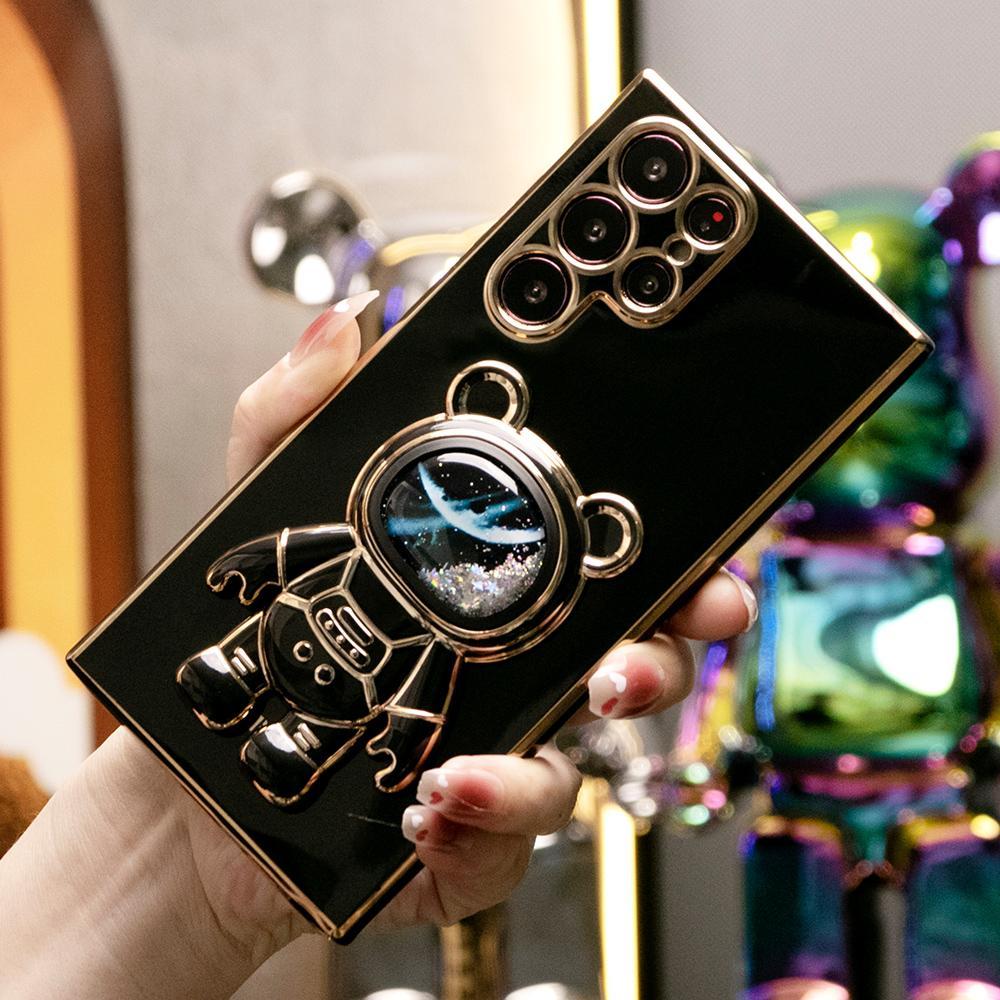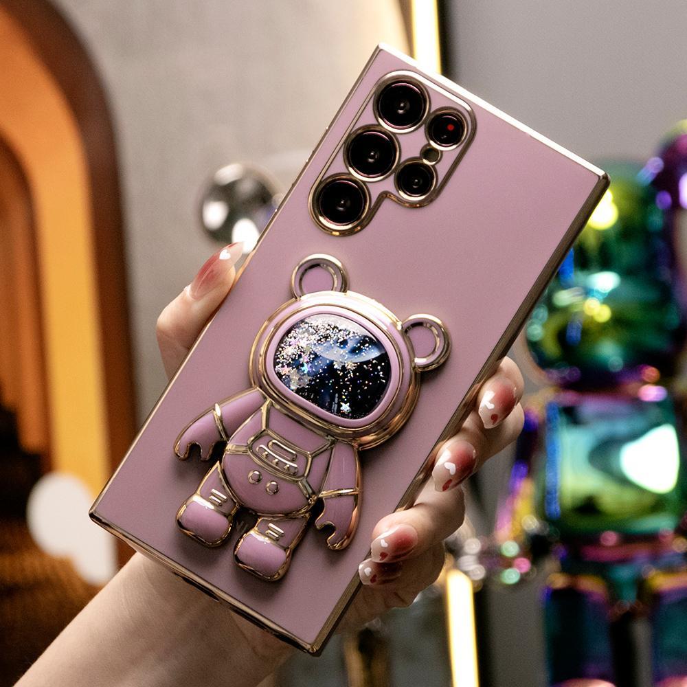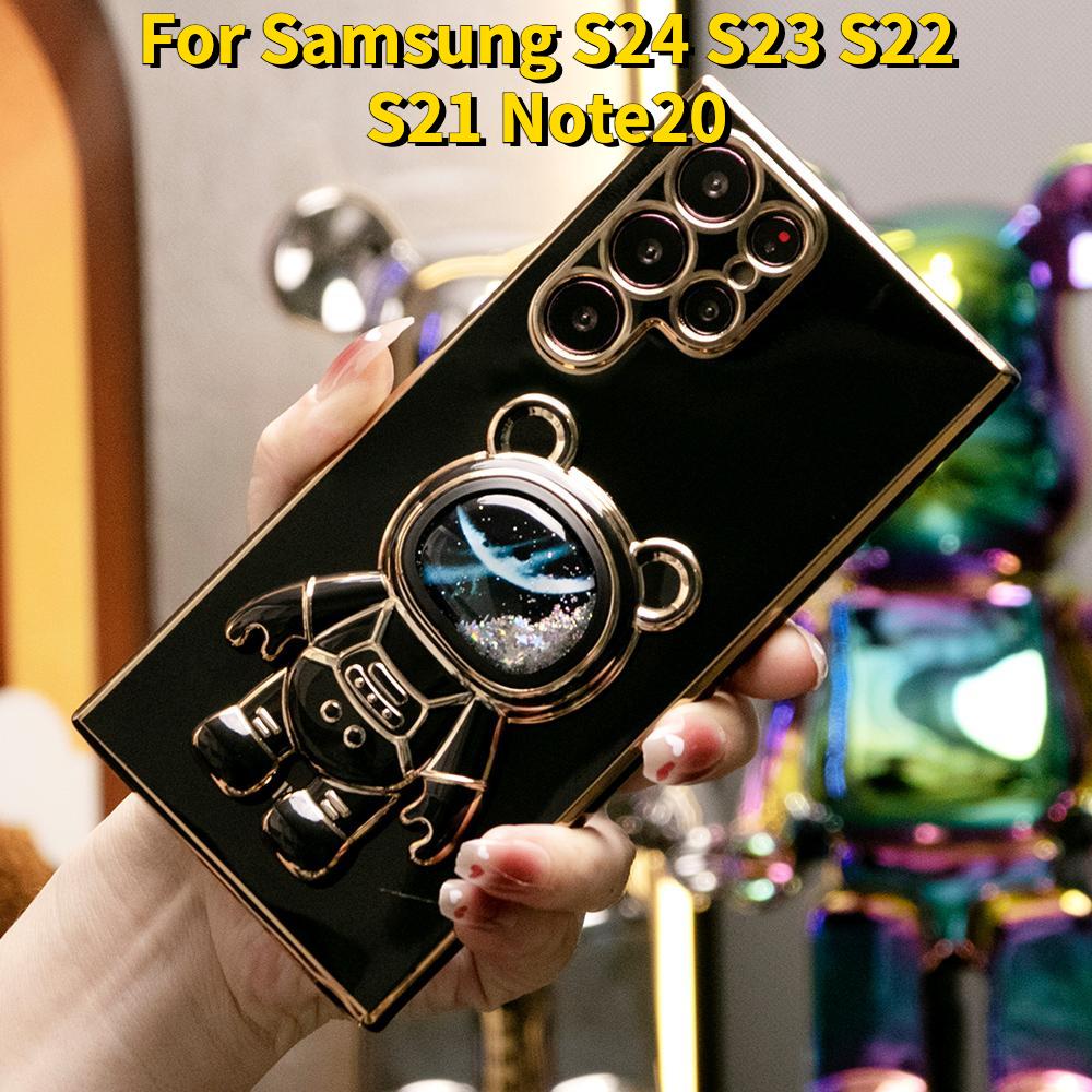 Quicksand Bear Astronaut SpaceBear Kickstand Plating Phone Case for Samsung S24 S23 S22 S21 FE Plus Ultra Note20
