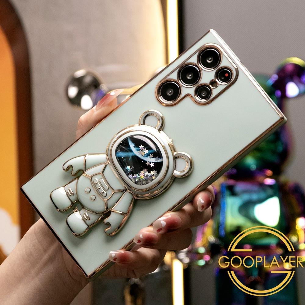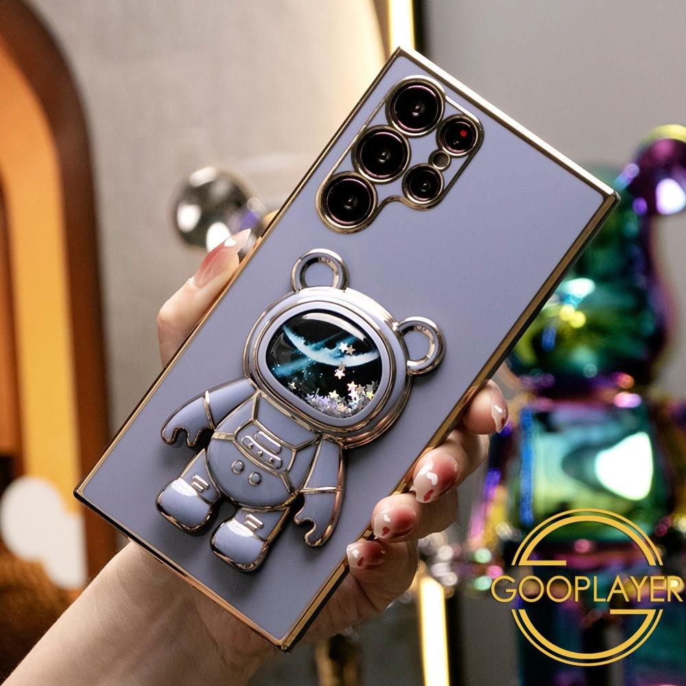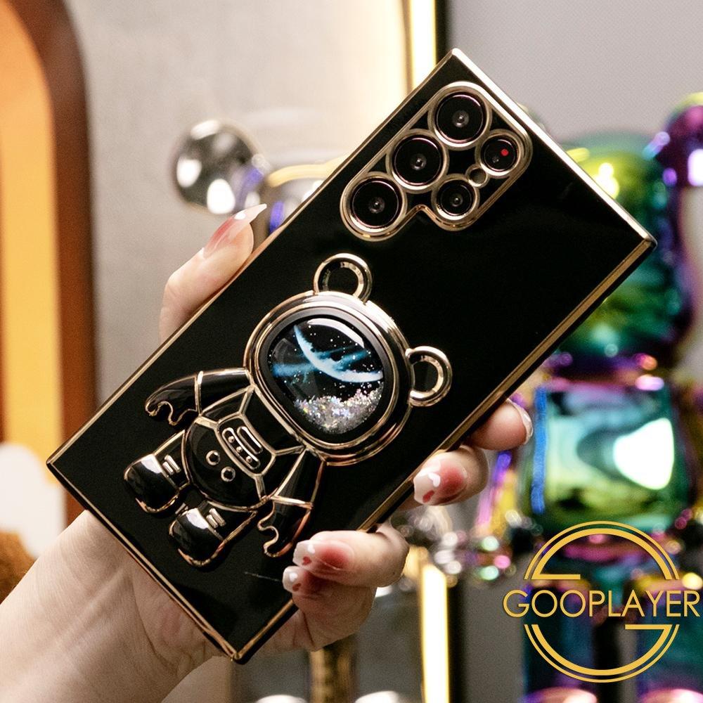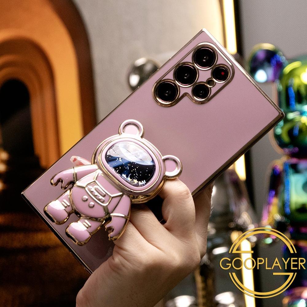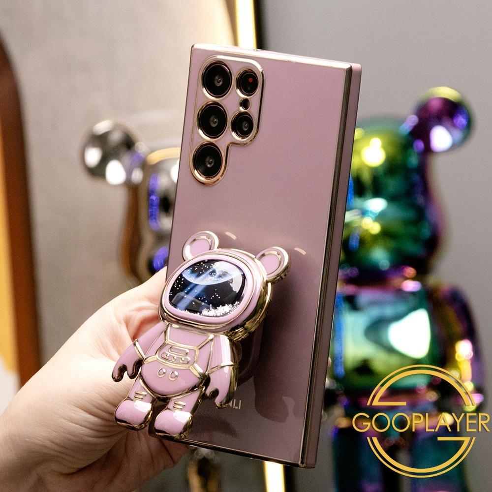 Quicksand Bear Stand Plating Phone Case for Samsung S24 S23 S22 S21 FE Plus Ultra Note20