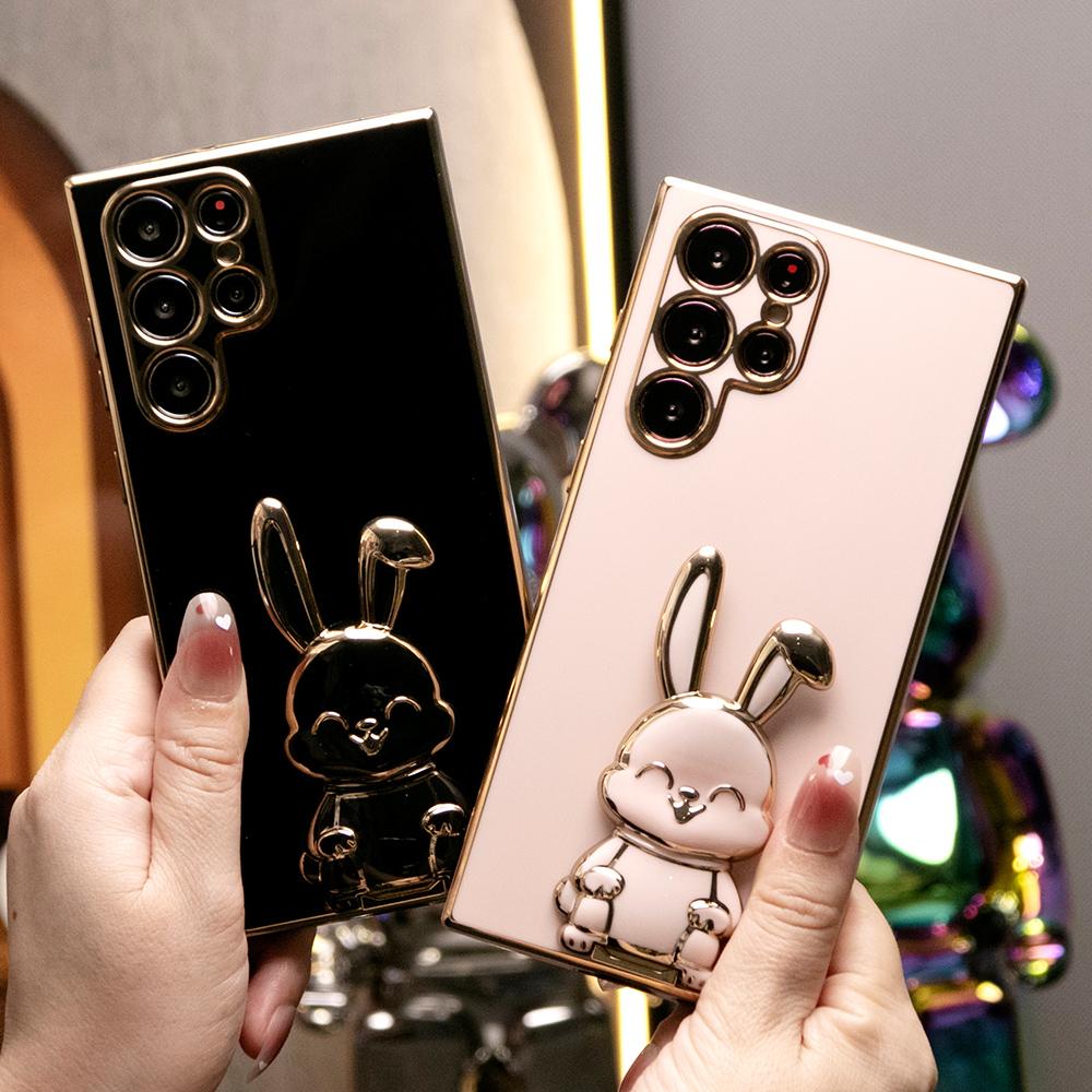 Rabbit Kickstand Plating Phone Case For Samsung S25 S24 S23 S22 S21 Note20