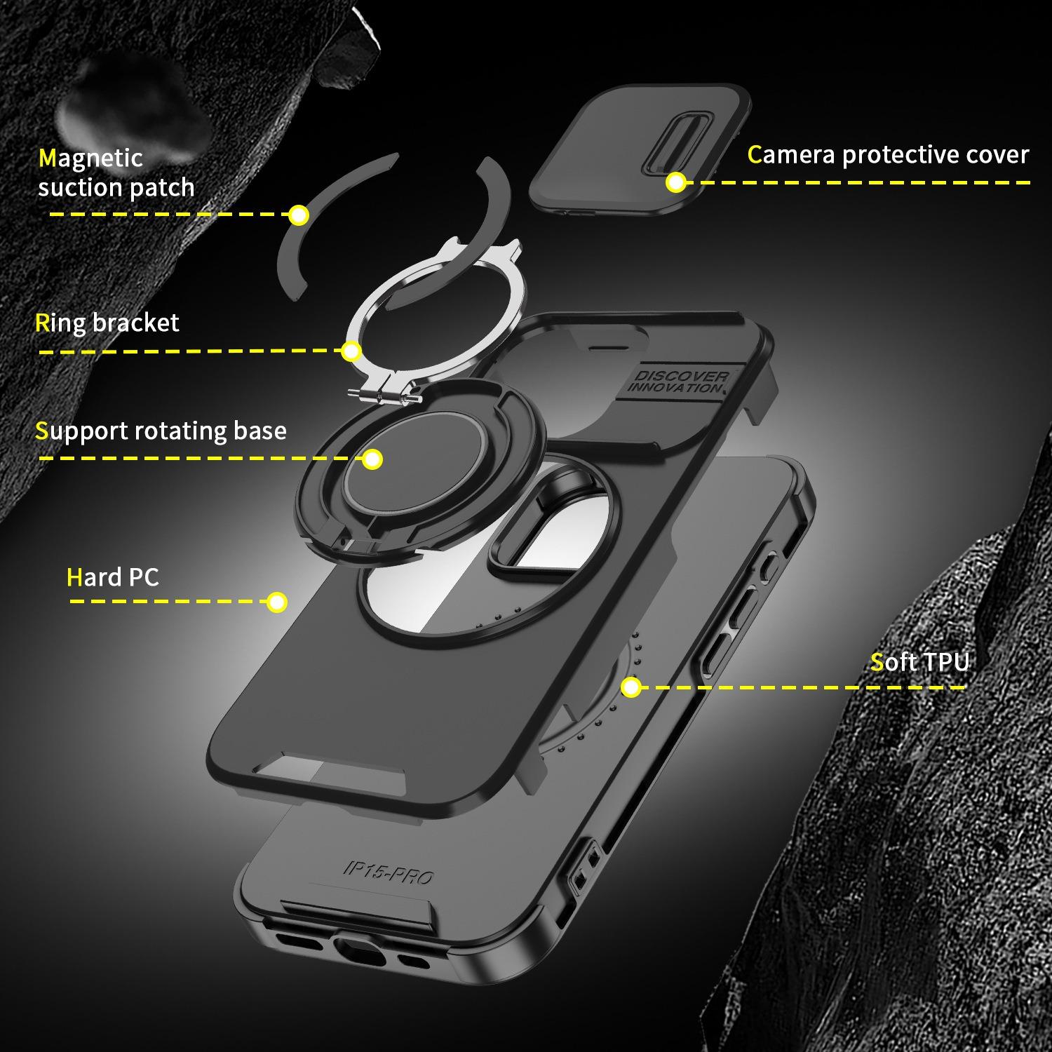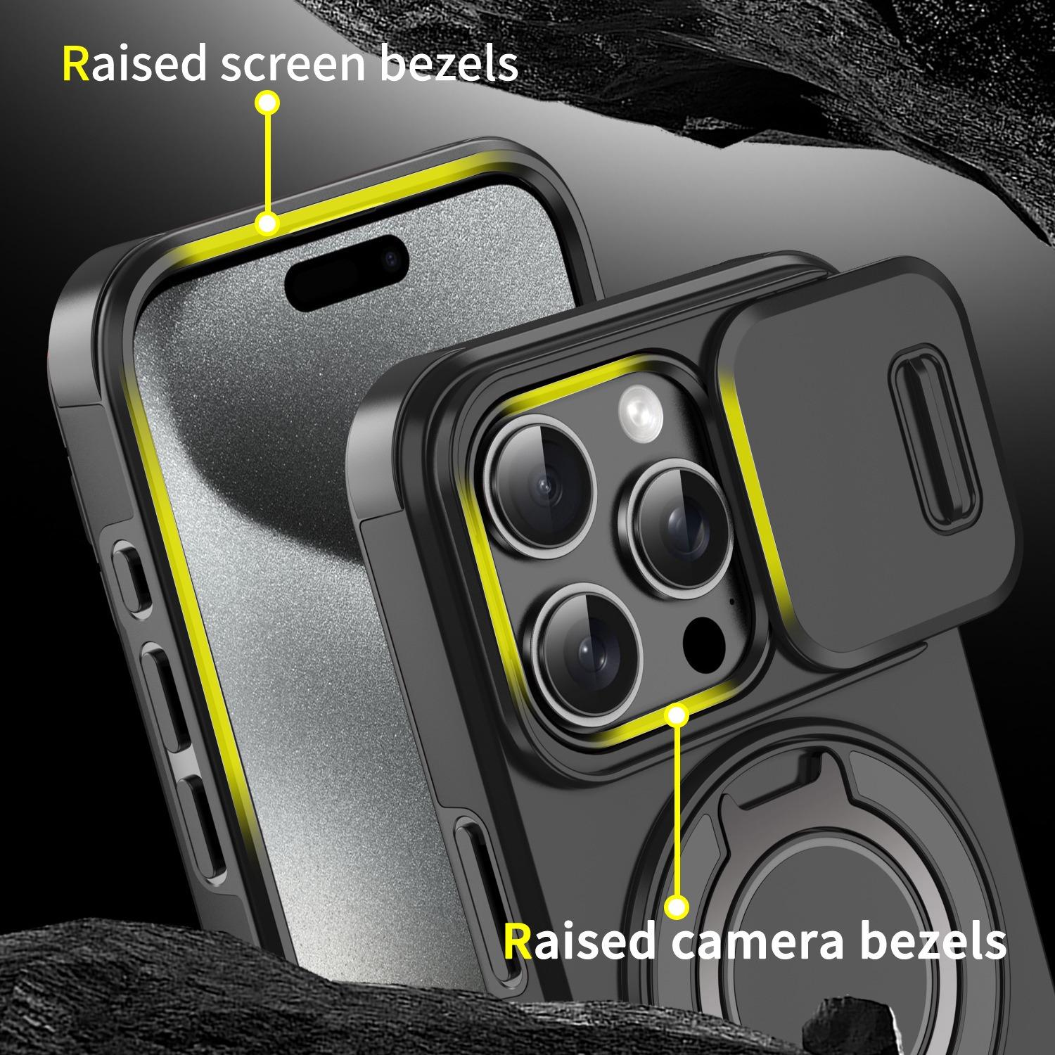 Removable Dust-proof Lens Cap Protection Phone Case 360 Rotating Metal Kickstand For iPhone 16ProMax 16 15 14 13 12 11 Shockproof Bumper Hard Full Cover