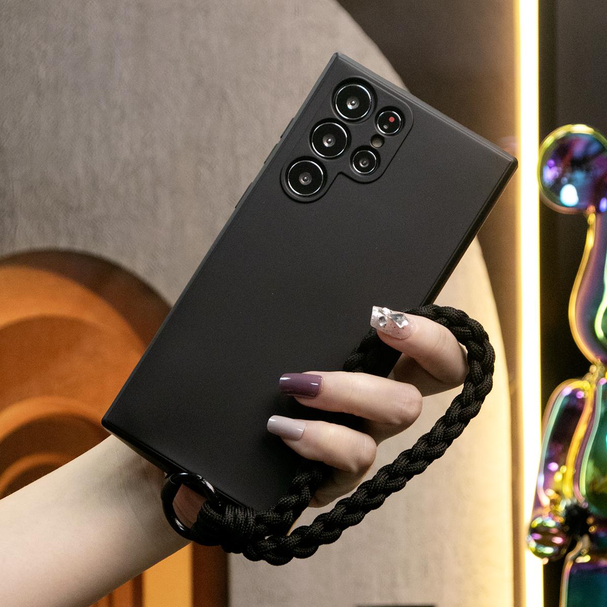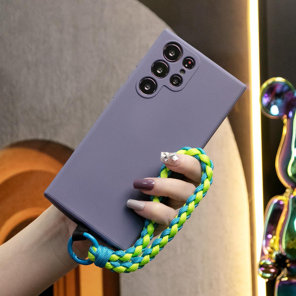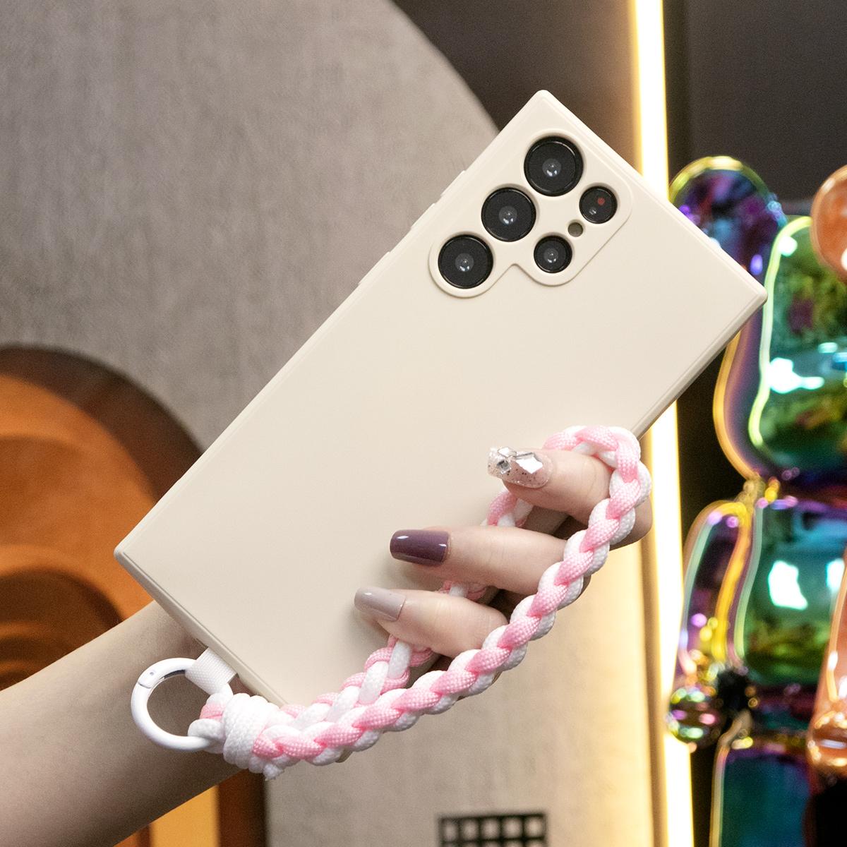 Silicone Matte Phone Case with Braided Rope Bracelet For Samsung S25 S24 S23 S22 S21 Note20 Camera Protect Soft Cover