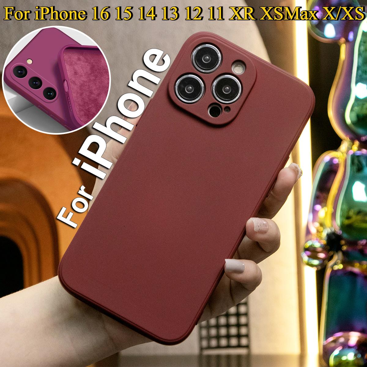 Square Liquid Silicone Matte Shockproof Phone Case For iPhone 16 15 14 13 12 11 XR XSMax X/XS Camera Protect Soft Cover