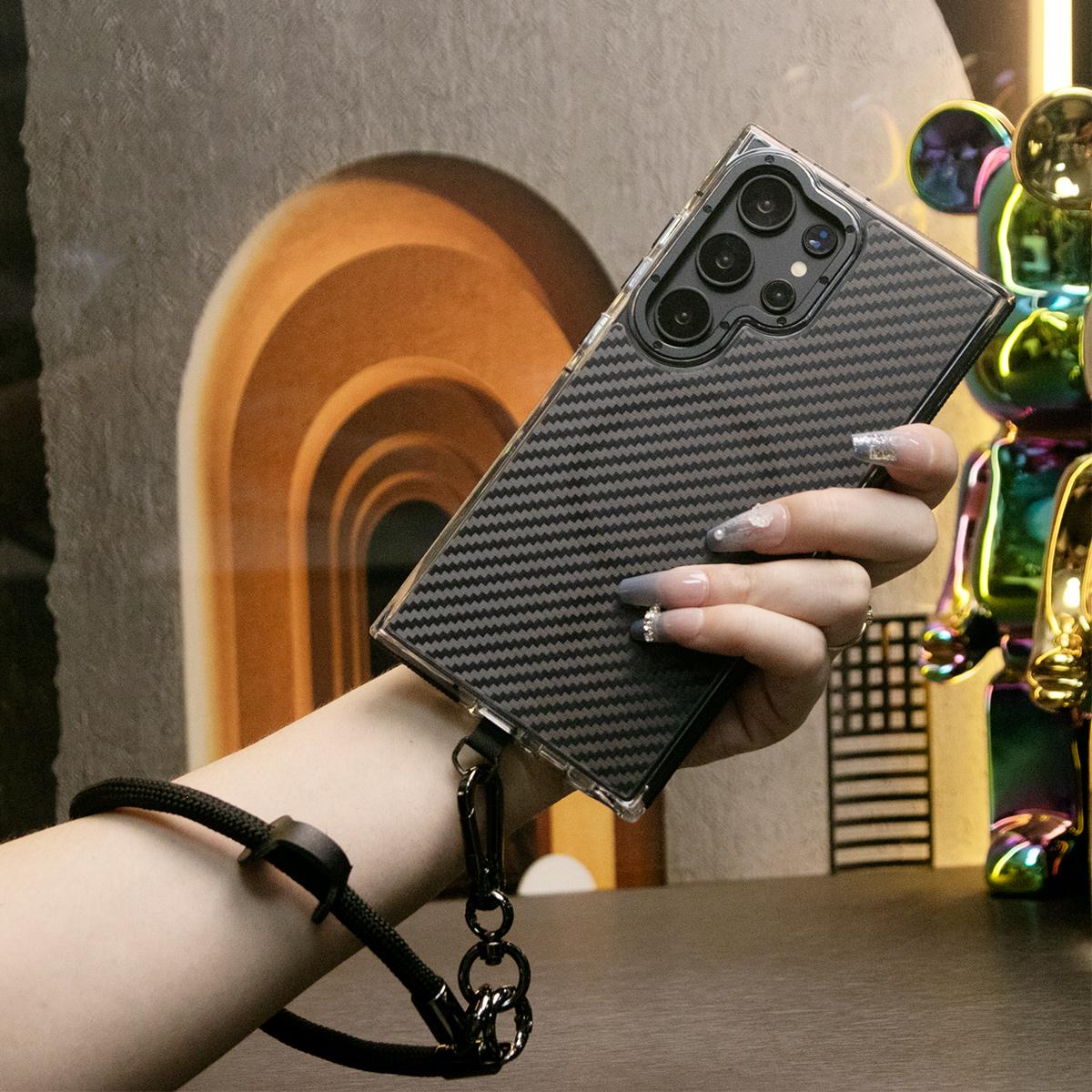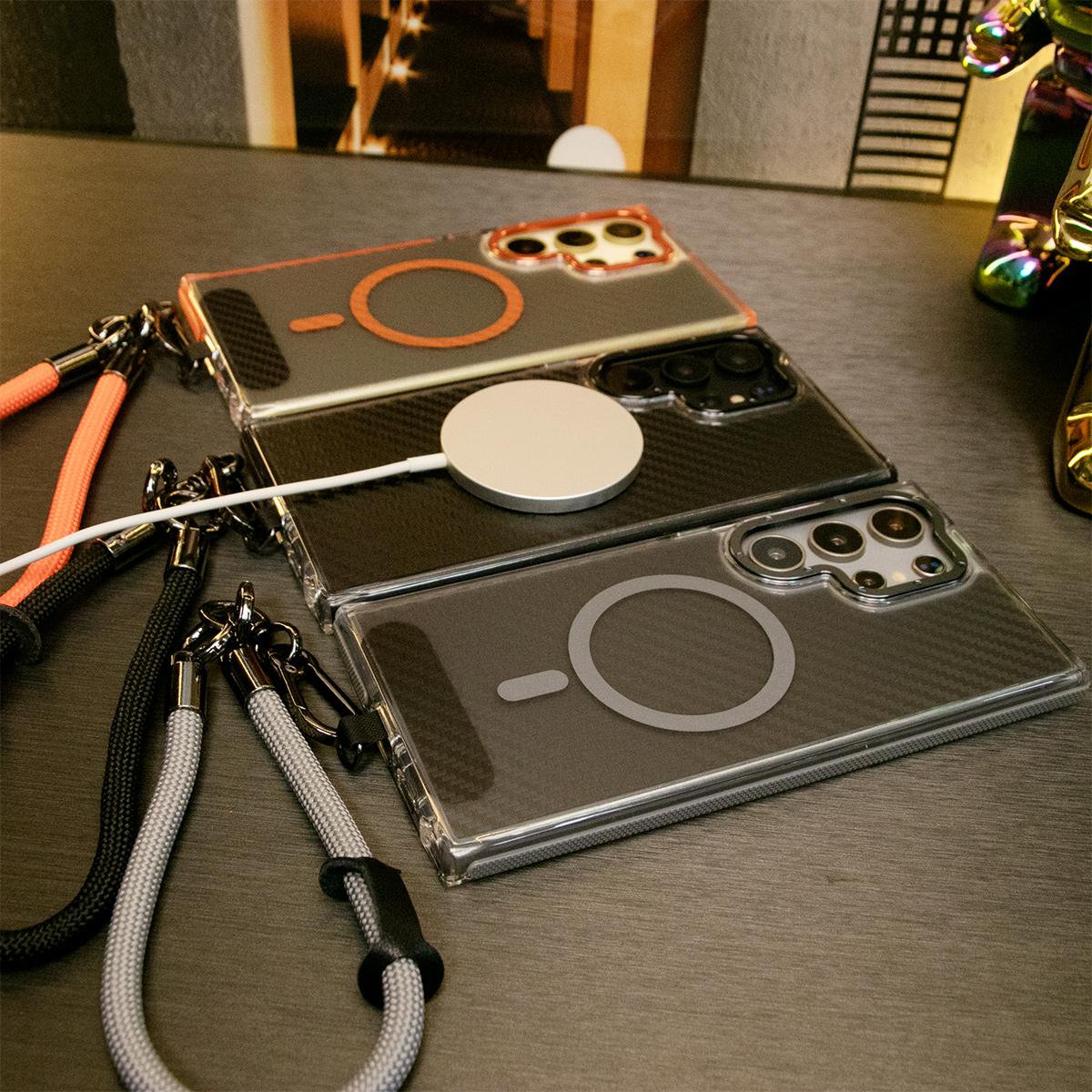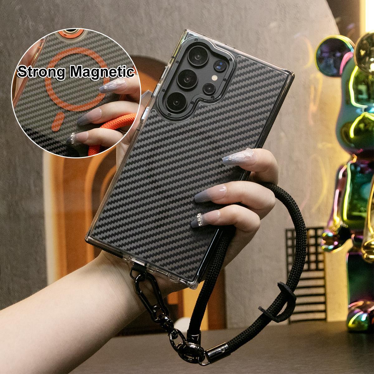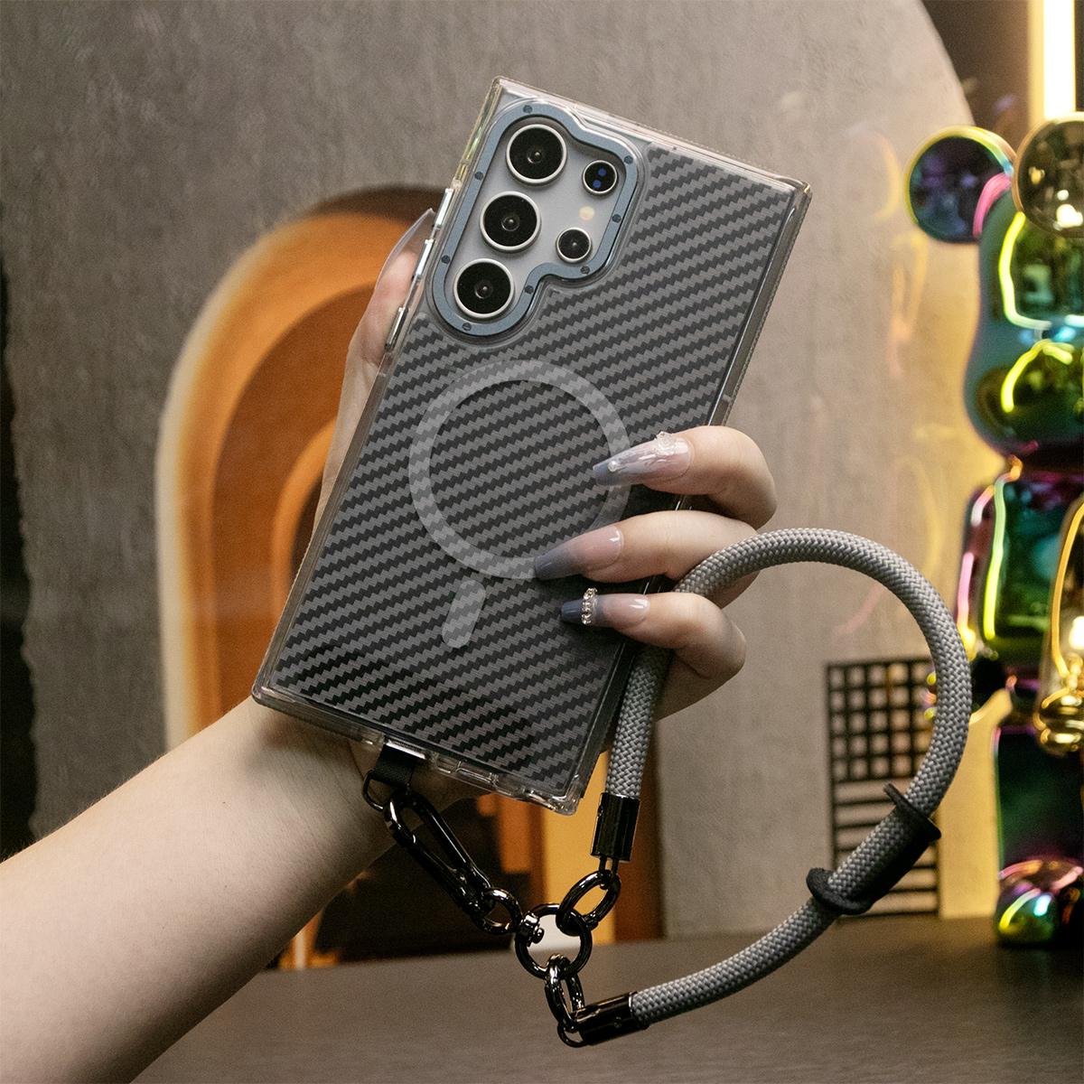 Strong Magnetic Carbon Fiber Phone Case, With Climbing Rope, Metal Hardware Camera Protective Acrylic, Shockproof Anti-Fall Bumper For Samsung S24 S23 S21FE S24 FE A14 A15 A24 A25 A35 A54 A55 A05