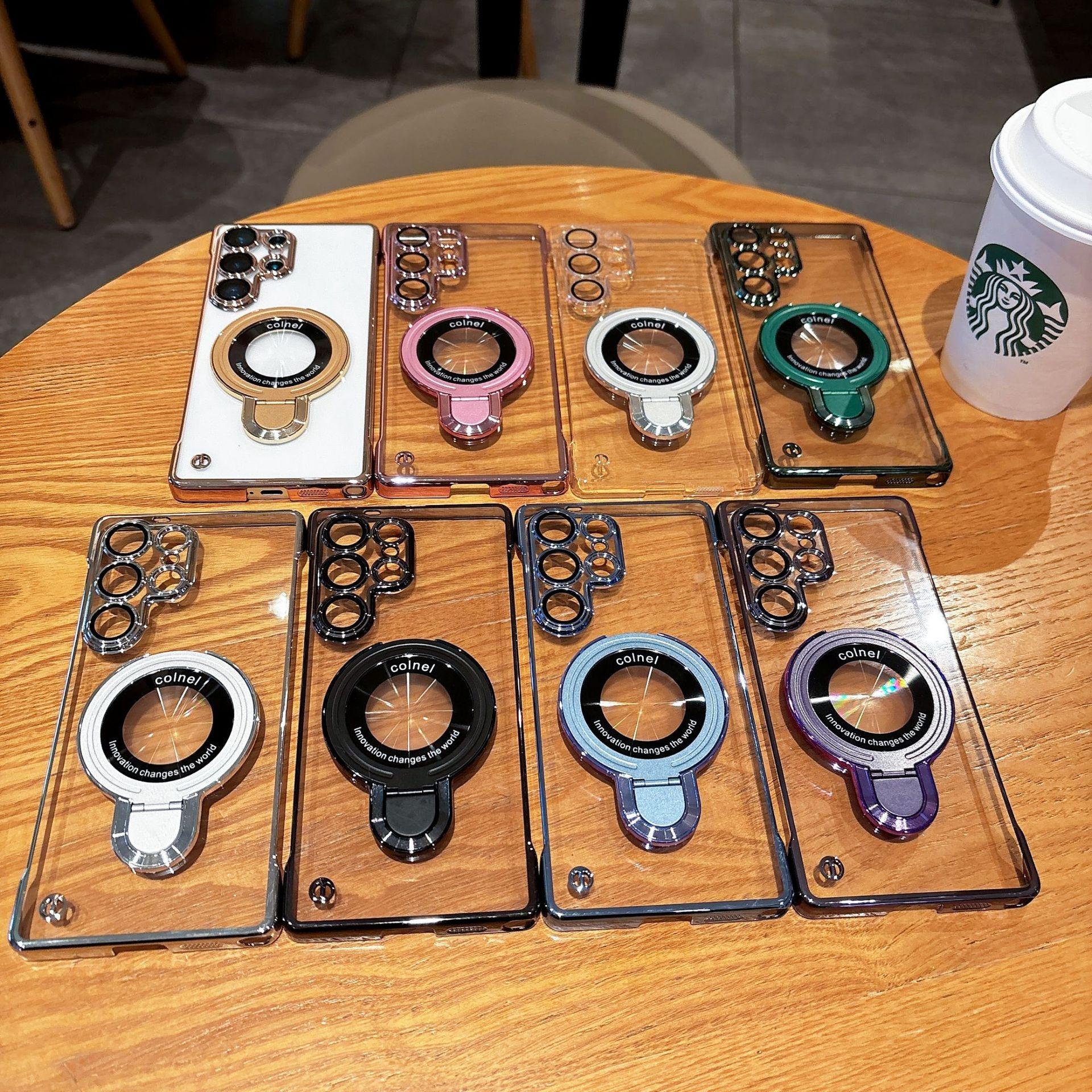 Ultra Slim Frameless Plating PC with Len Protector Phone Case with Metal Kickstand For Samsung S25Ultra S24 S23 S22 Shockproof Support Wireless Charging Hard Full Cover