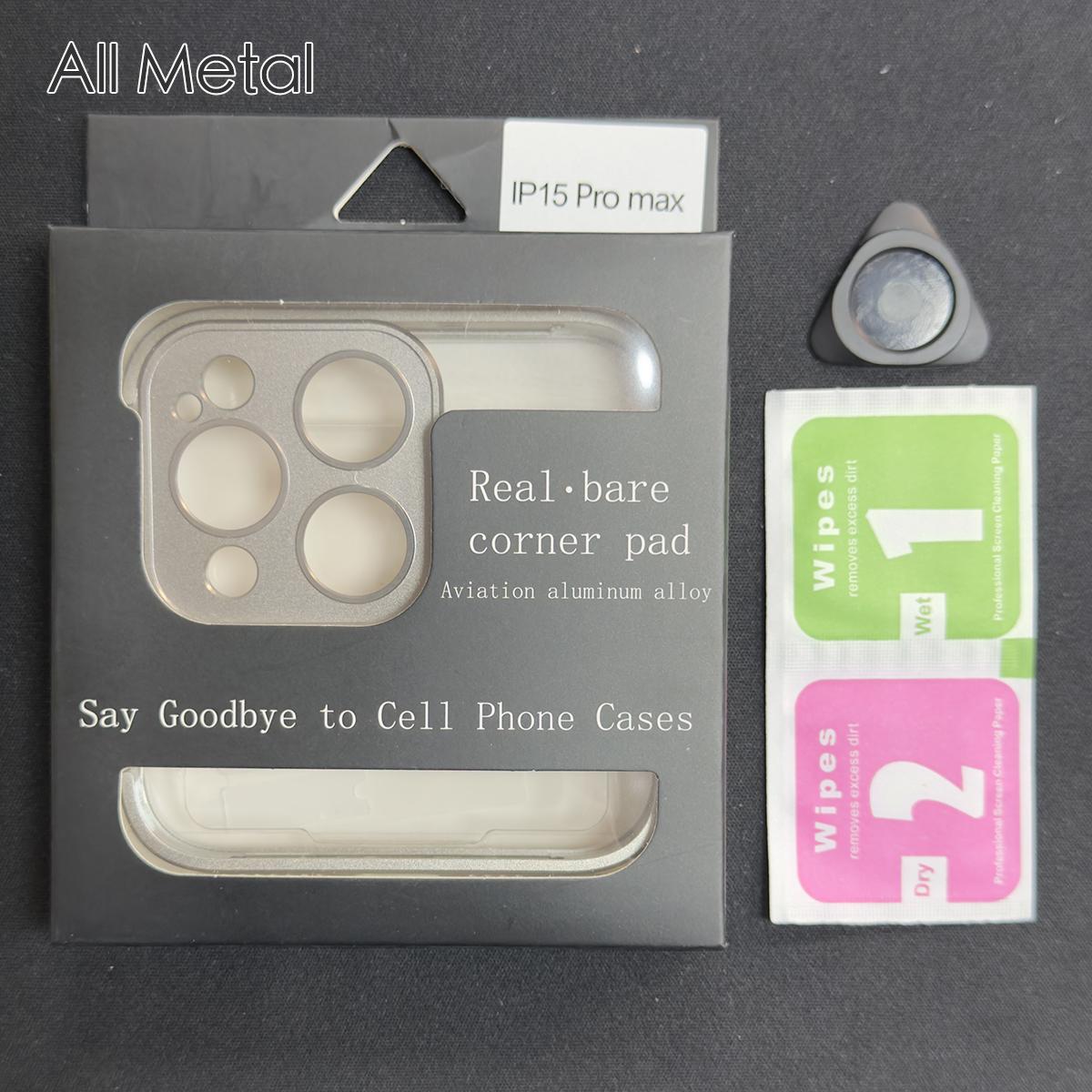 Ultrathin Frameless Aluminium Alloy Metal Bumper Corner Cover Protector Case for iPhone 15 14 13 12 Pro Max Drop-proof Cover