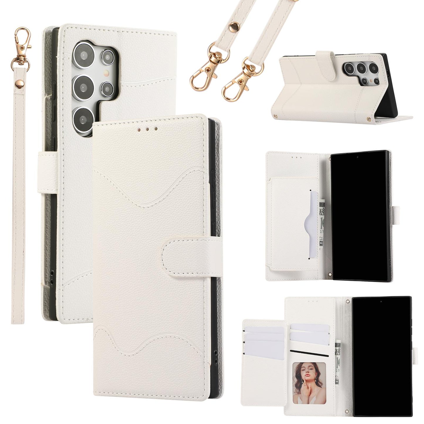 Wrist Strap Crossbody Wallet with Card Holder Phone Case for Samsung S24 Ultra S23 S22 S21 Plus PU Leather Shockproof Cover