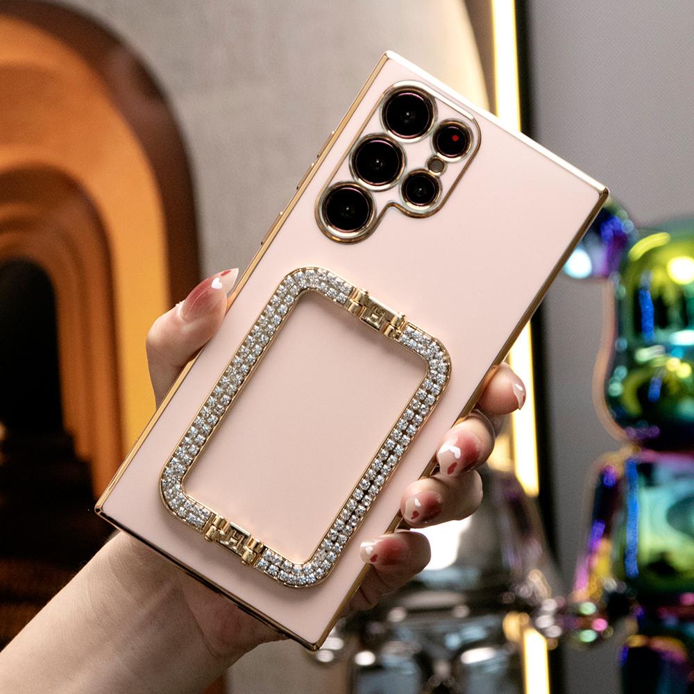3D Crystal Square Holder Plating Phone Case for Samsung S24 S23 S22 S21 FE Plus Ultra Note 20