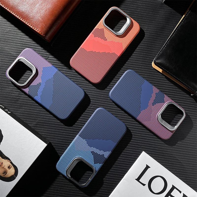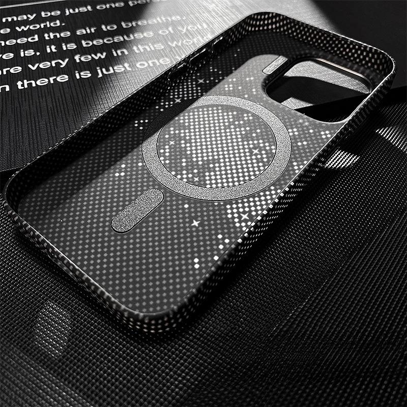 Carbon Fiber Star Mountain Mosaic Particle Matte Strong Magnetic Camera Kickstand Hardware Shockproof Phone Case For iPhone 16ProMax 15 14 13 Hard Full Cover