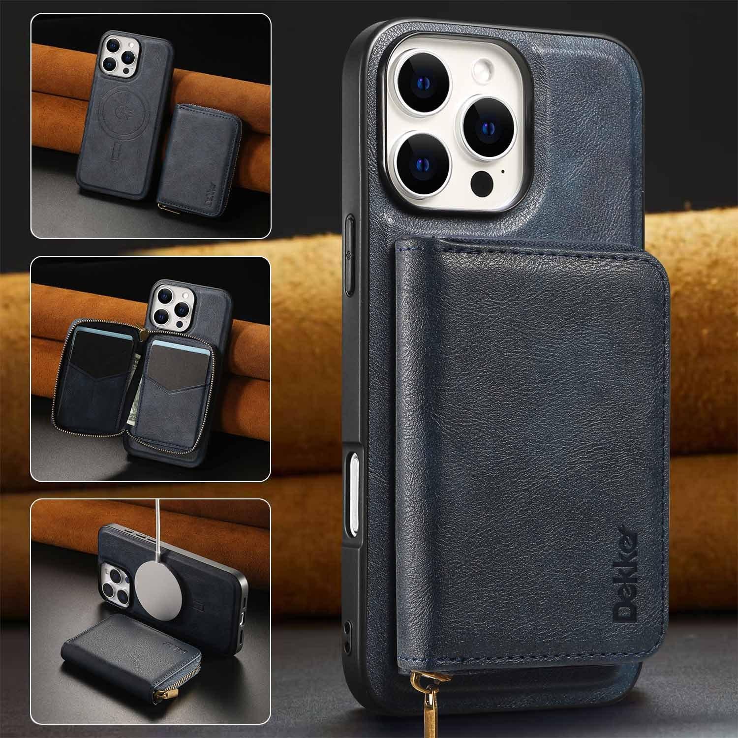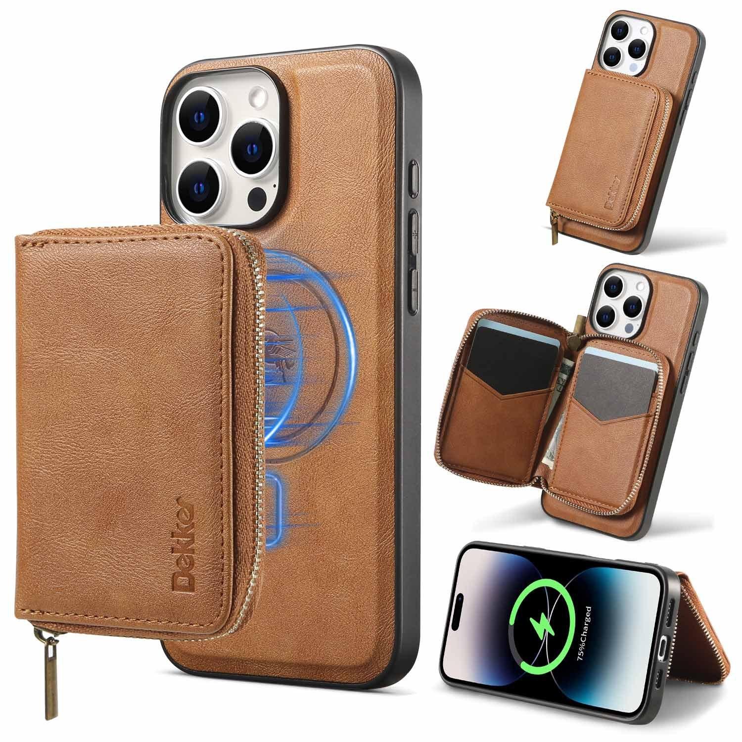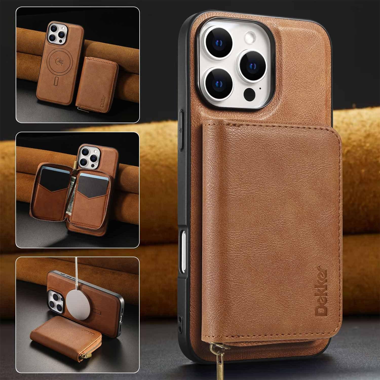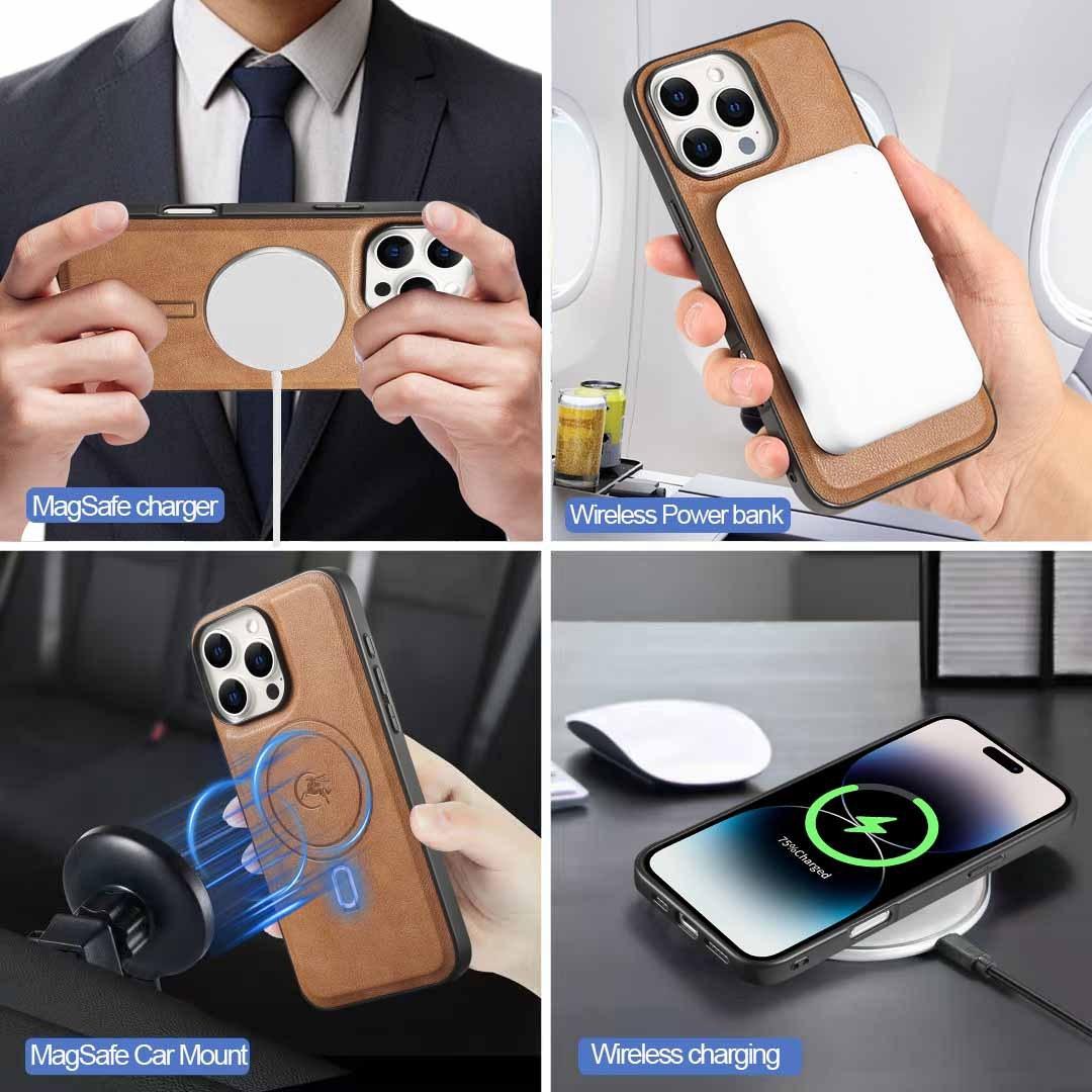 For iPhone 16ProMax 16 15 14 13 12 Leather Phone Case with Strong Magnetic Wallet, Anti-Fall Card Bag Kickstand for Magsafe Shockproof Business Hard Full Cover