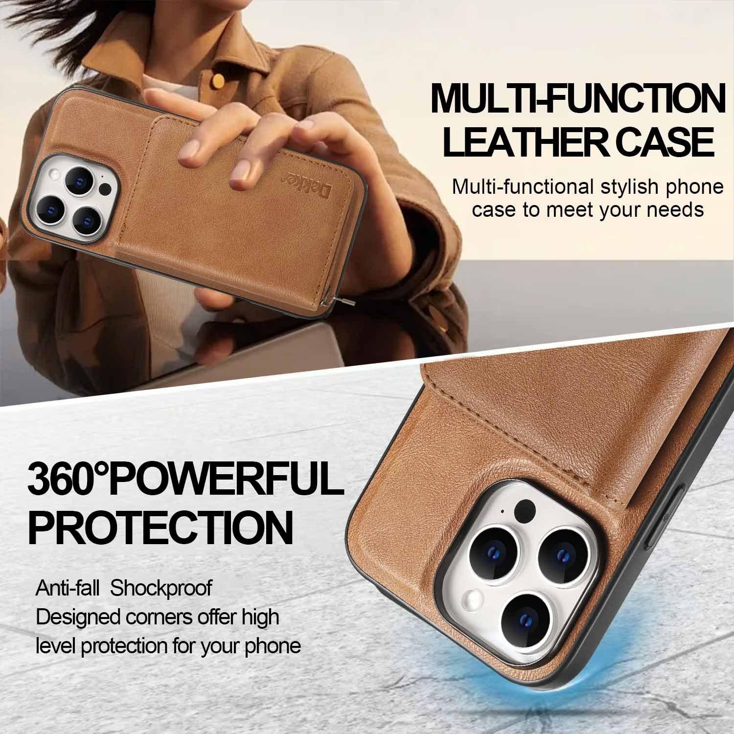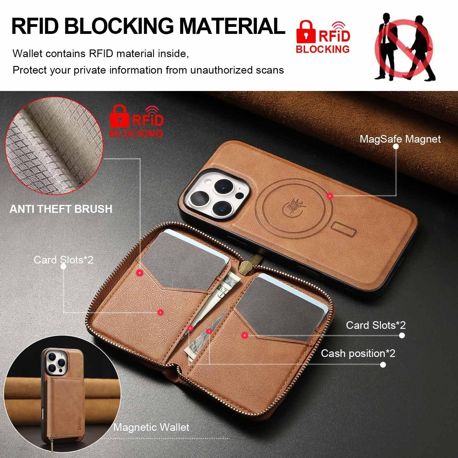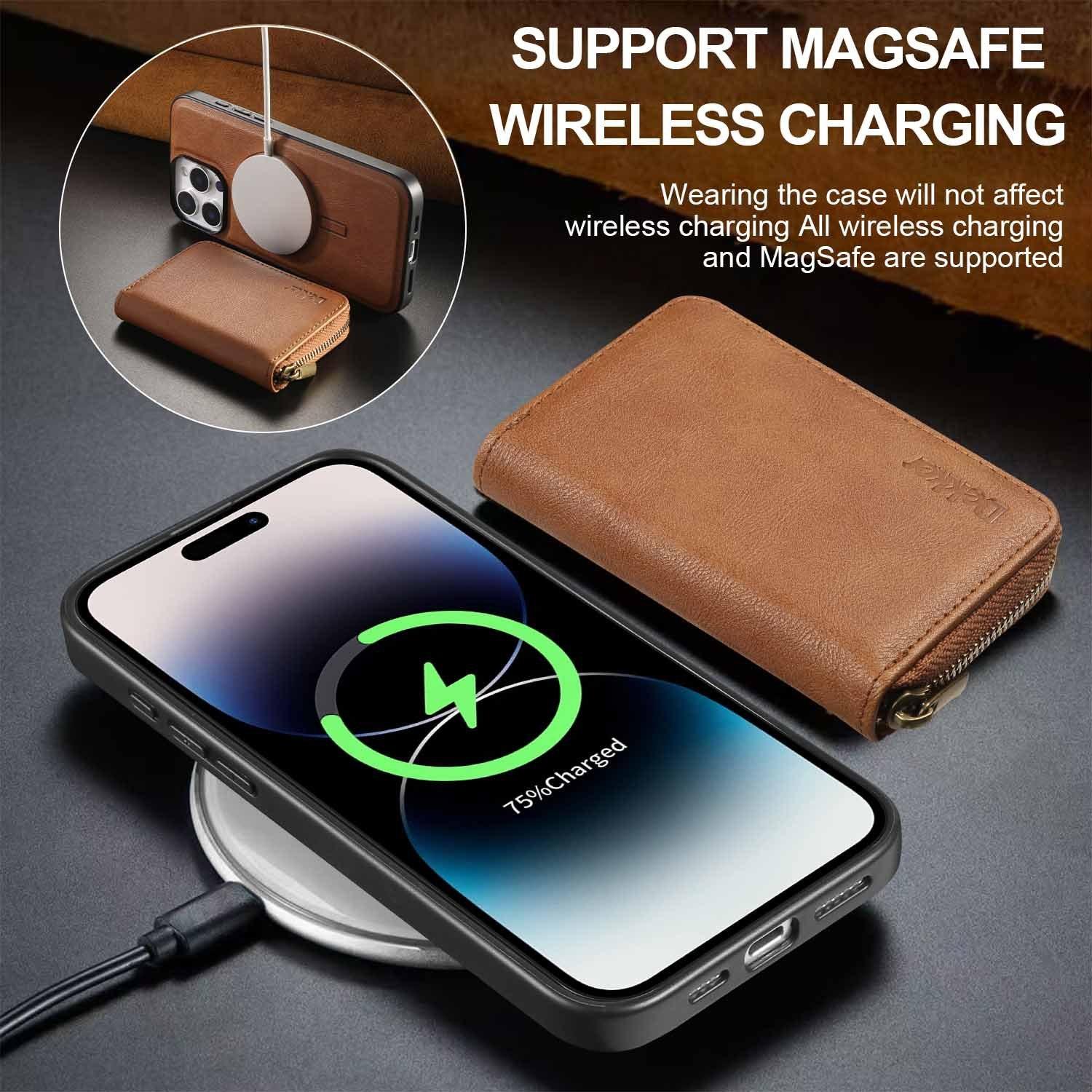 For iPhone 16ProMax 16 15 14 13 12 Leather Phone Case with Strong Magnetic Wallet, Anti-Fall Card Bag Kickstand for Magsafe Shockproof Business Hard Full Cover