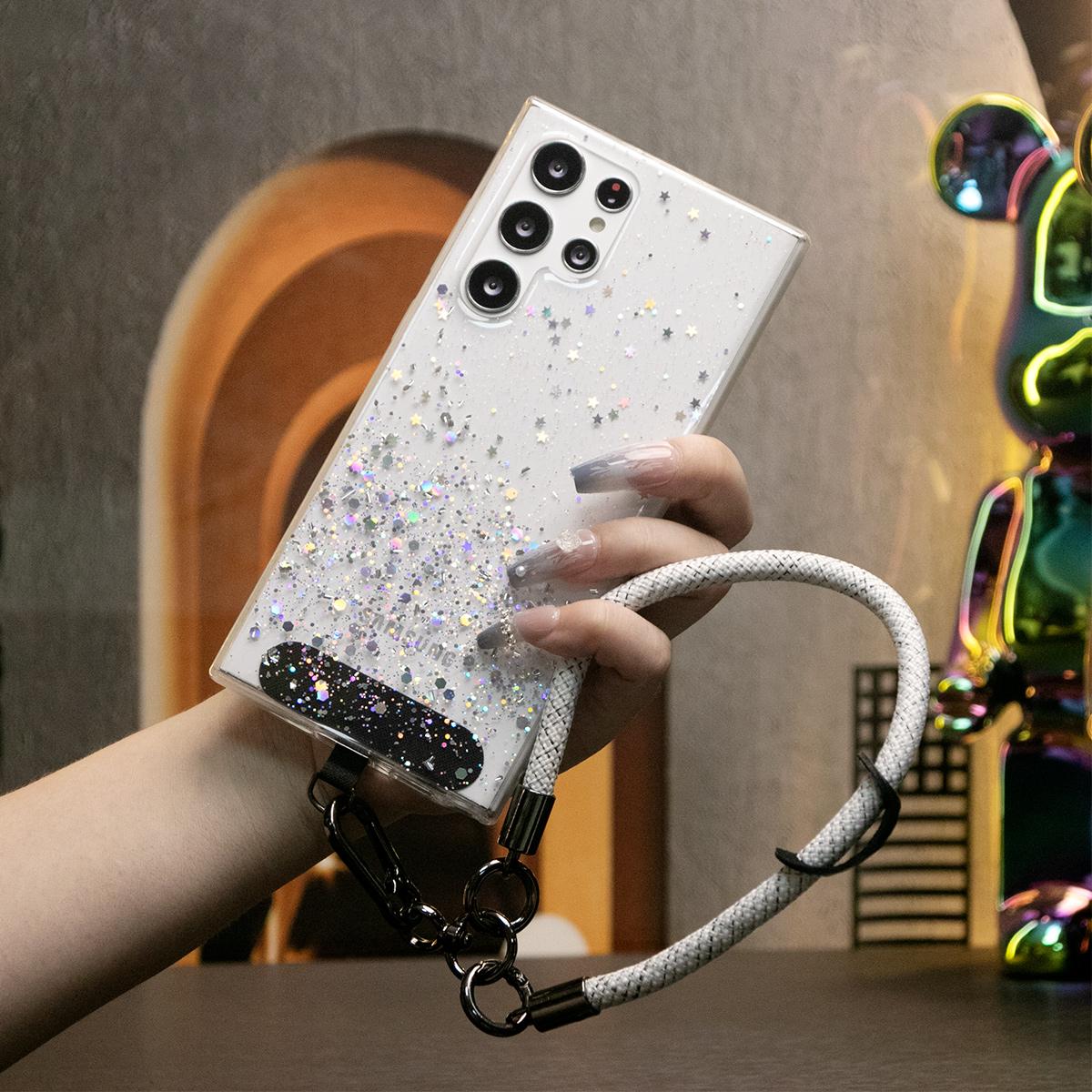 Glitter Star Sequin Basic Phone Case With Multifunctional Wristband For Samsung Galaxy S24 S23 S22 S21 S20 FE Note 20 Ultra Clear Soft TPU Back Cover