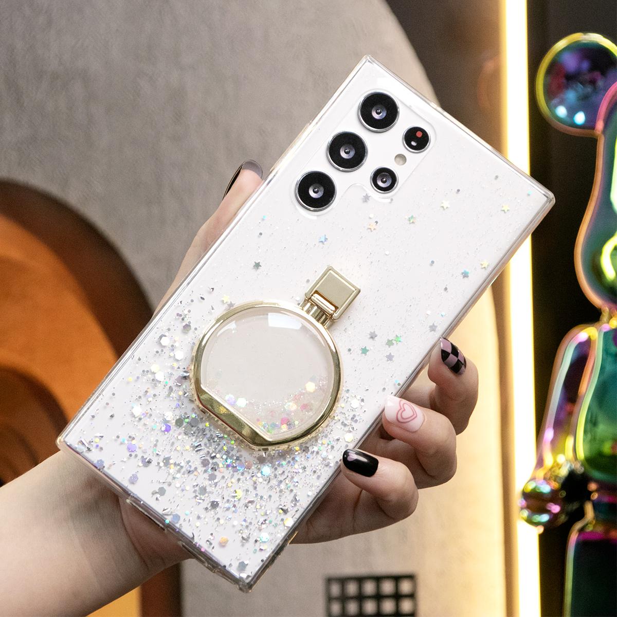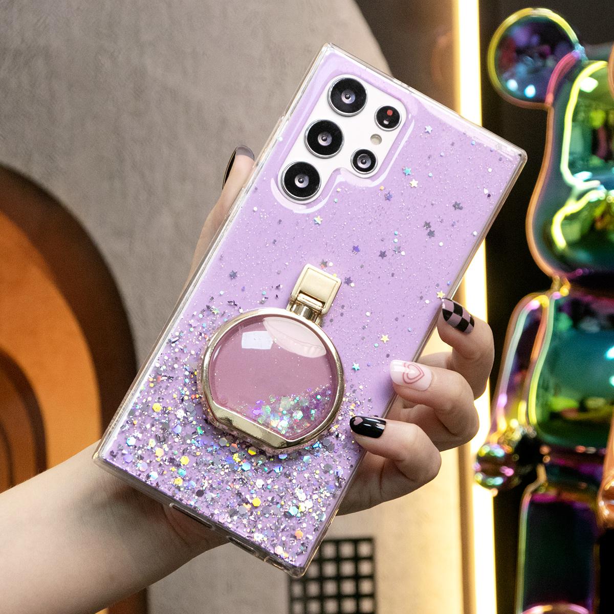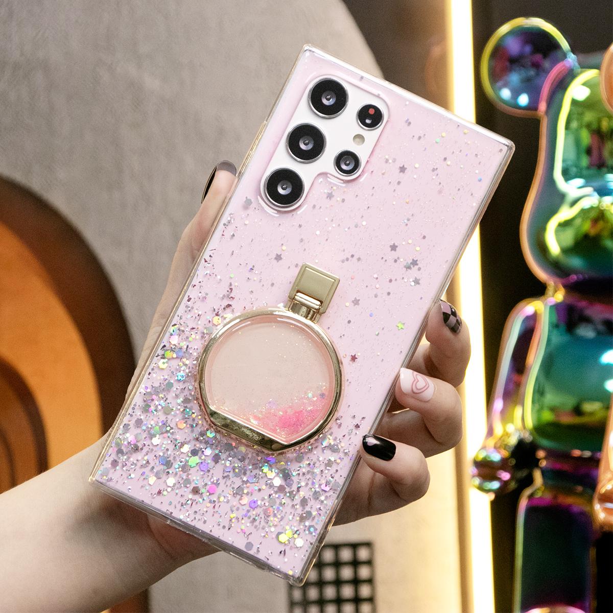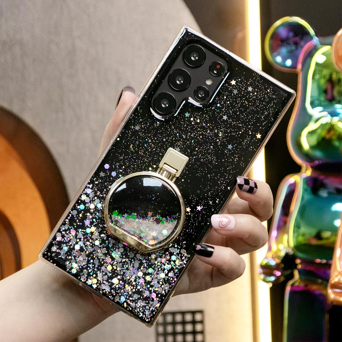 Glitter Star Sequin Quicksand Perfume Bottle Stand Phone Case For Samsung S24 S23 S22 S21 S20 FE Note 20 Ultra Clear Soft TPU Back Cover
