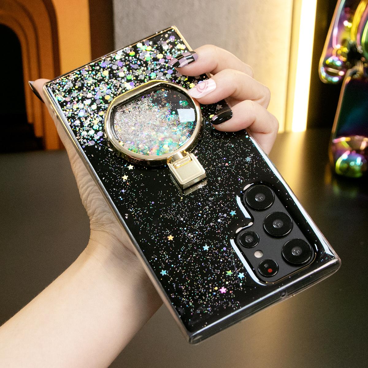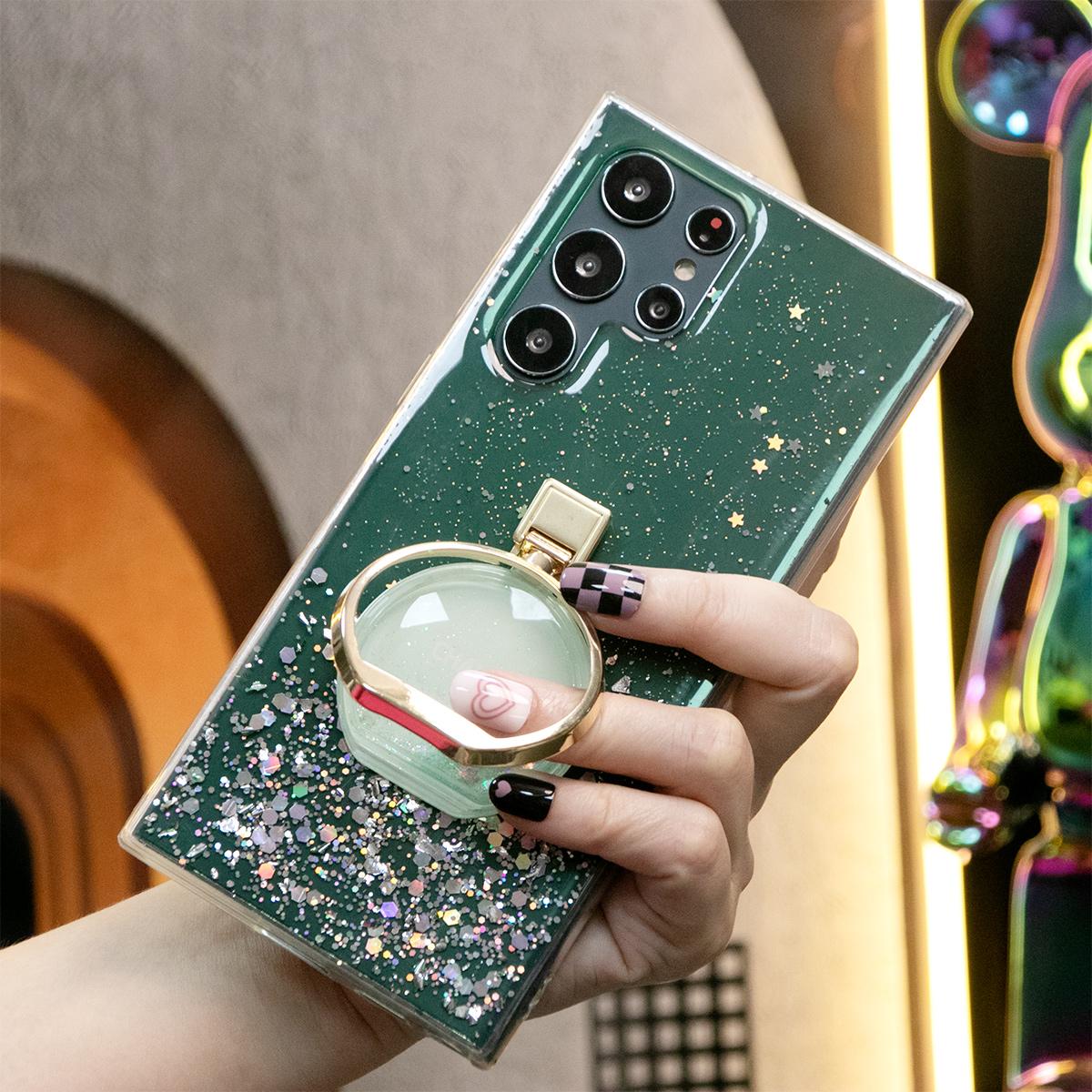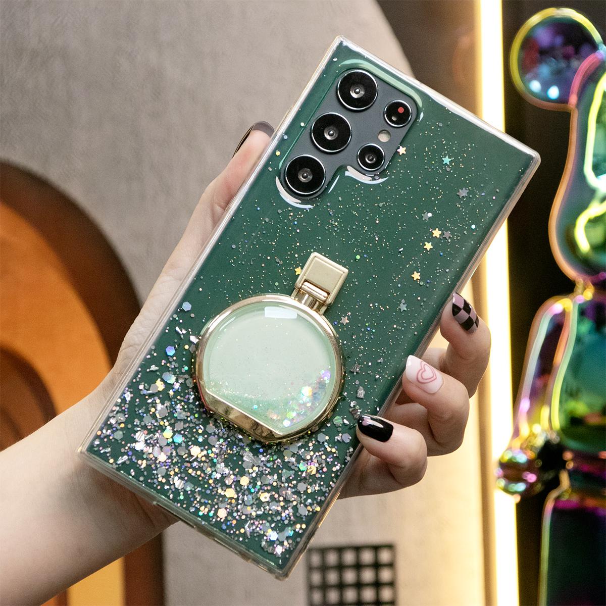 Glitter Star Sequin Quicksand Perfume Bottle Stand Phone Case For Samsung S24 S23 S22 S21 S20 FE Note 20 Ultra Clear Soft TPU Back Cover