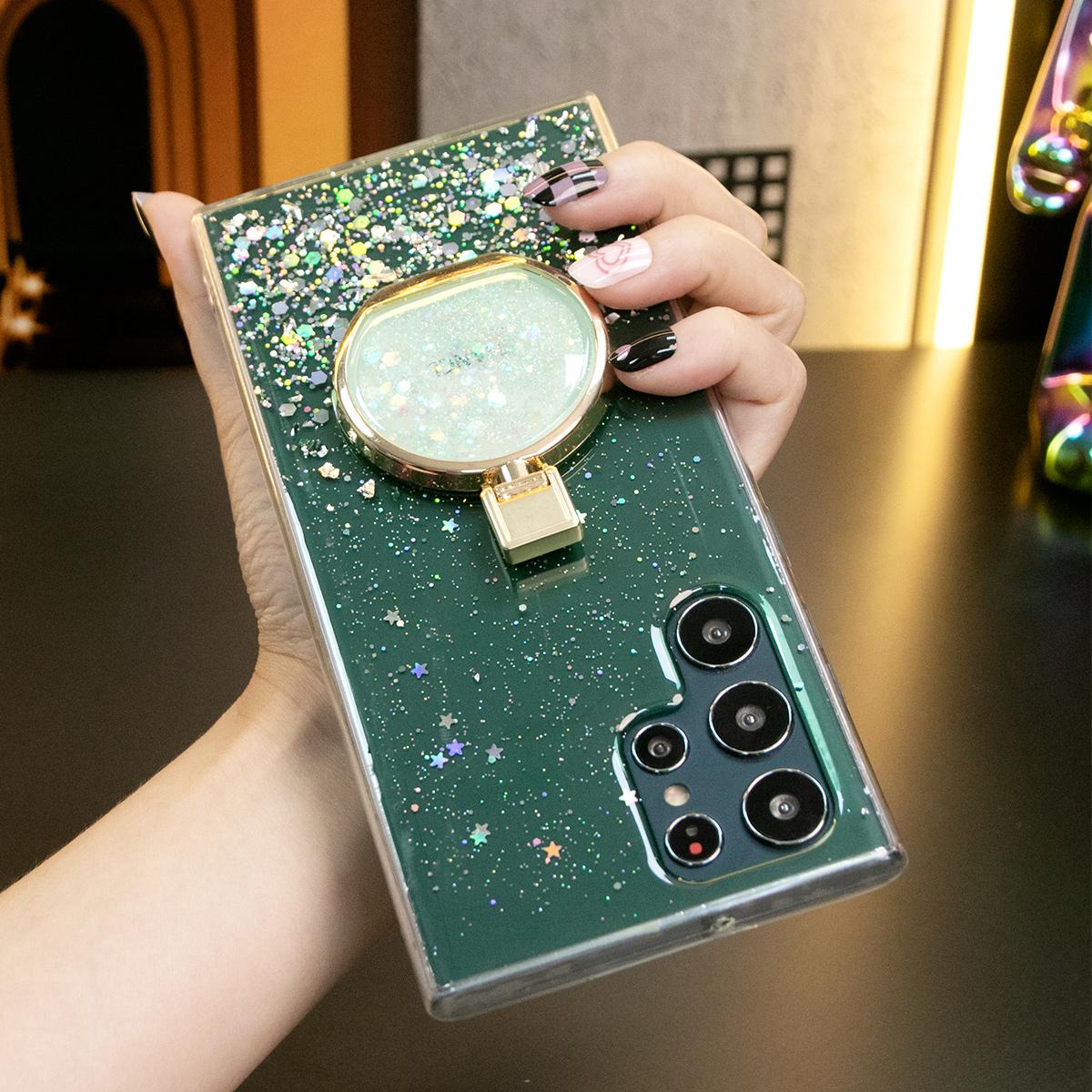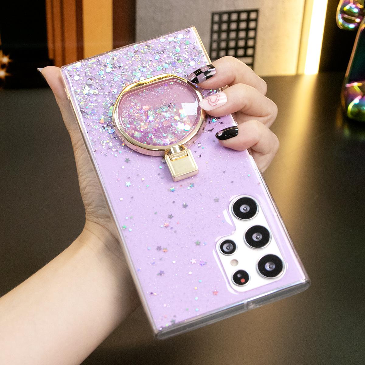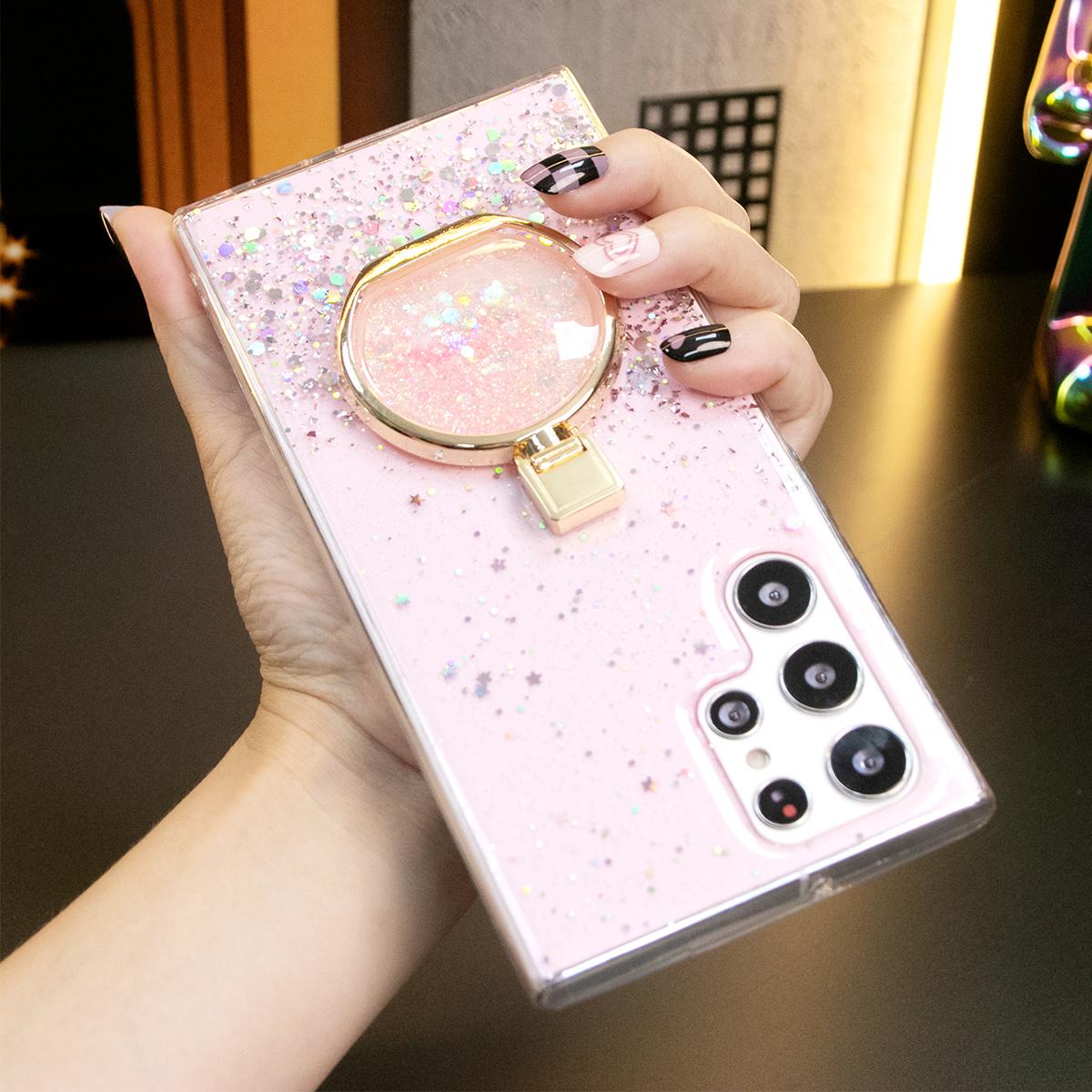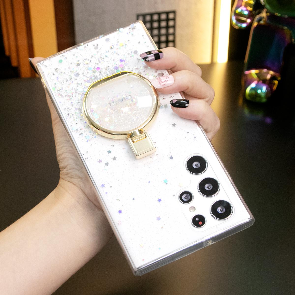 Glitter Star Sequin Quicksand Perfume Bottle Stand Phone Case For Samsung S24 S23 S22 S21 S20 FE Note 20 Ultra Clear Soft TPU Back Cover