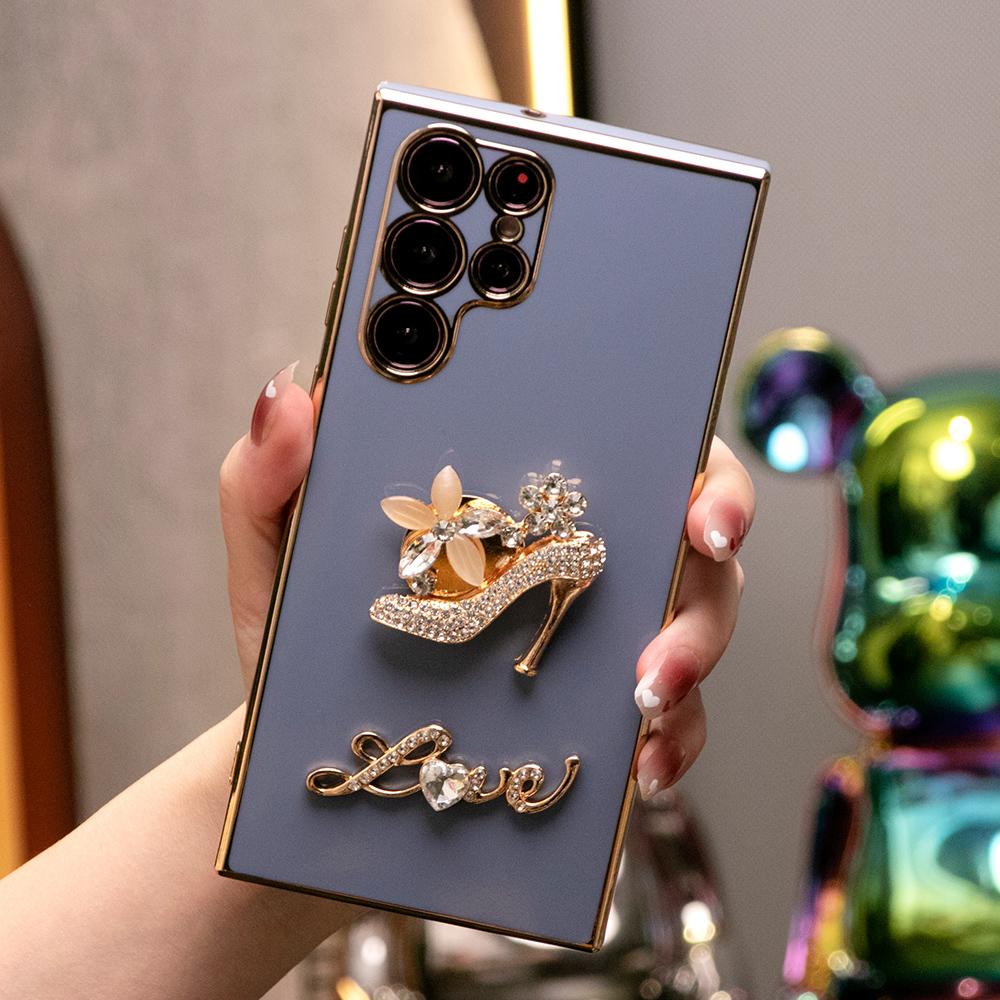 Gold High-heeled Shoes Plating Phone Case for Samsung S24 S23 S22 S21 FE Plus Ultra Note 20