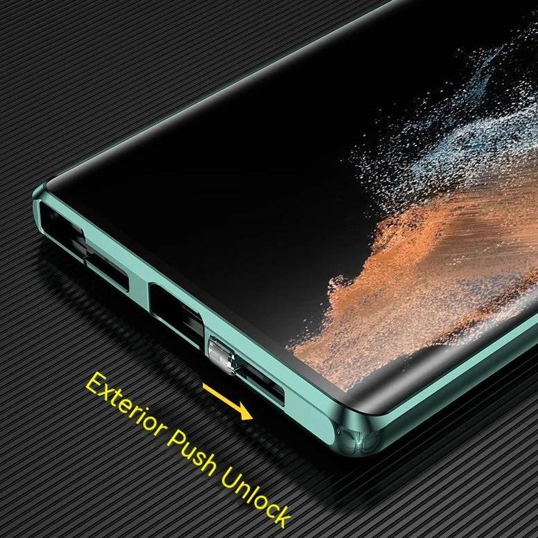 HD Clear Tempered Glass Front Acrylic Magnetic Ring Black Cover Double Sided Magnetic Phone Case for Samsung S25Ultra S25 S24 S23 S22 S21 Metal Frame Shockproof Full Case with Len Protection