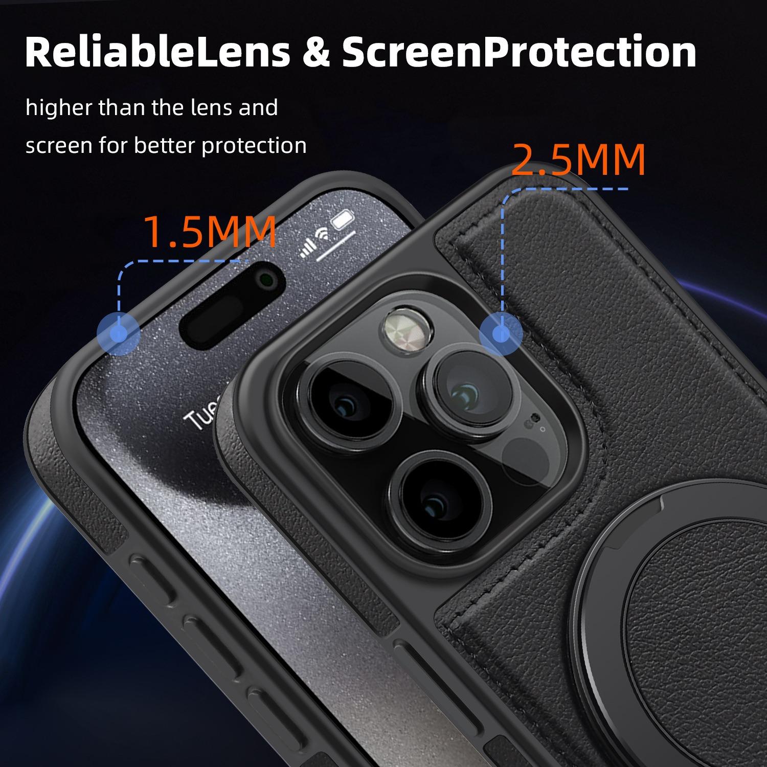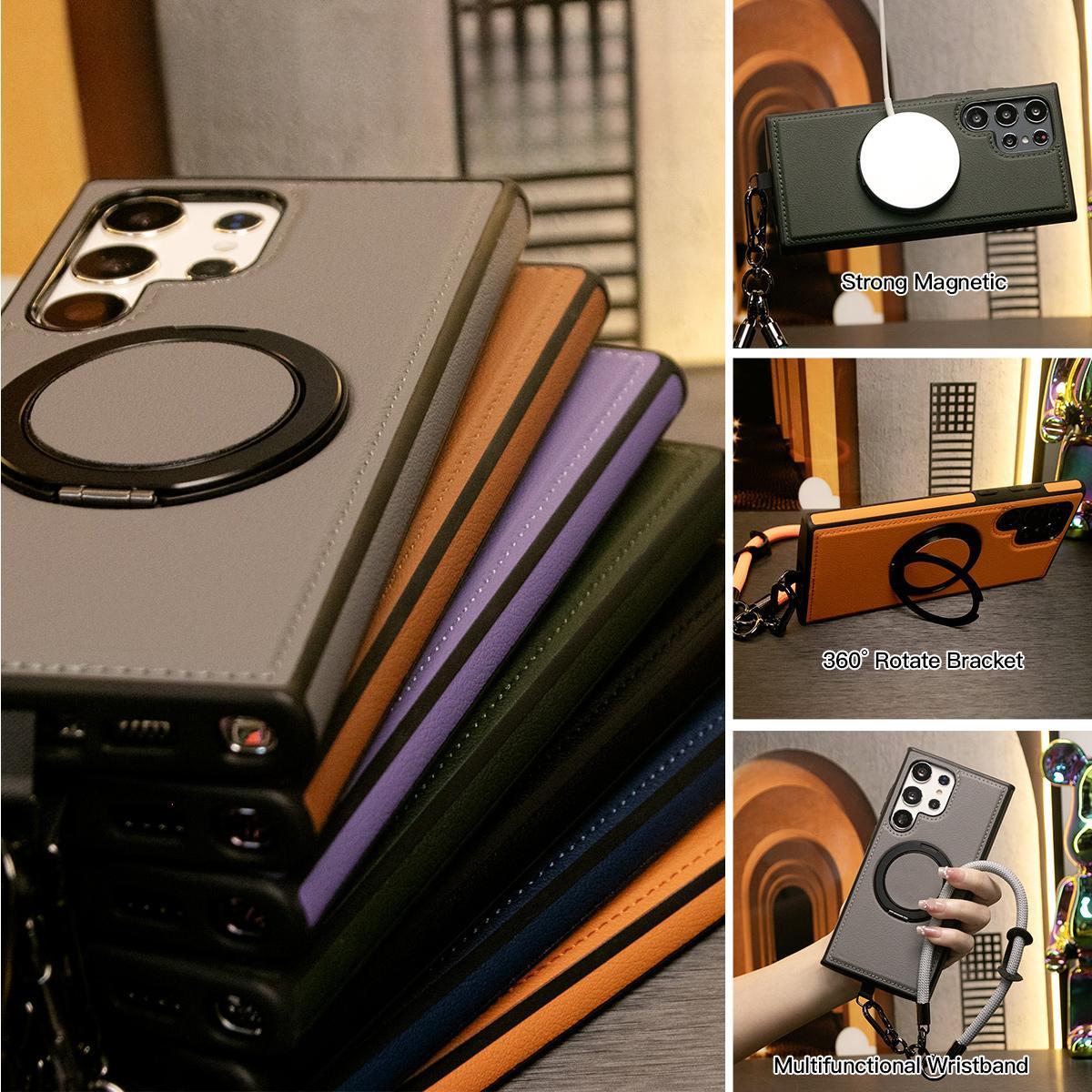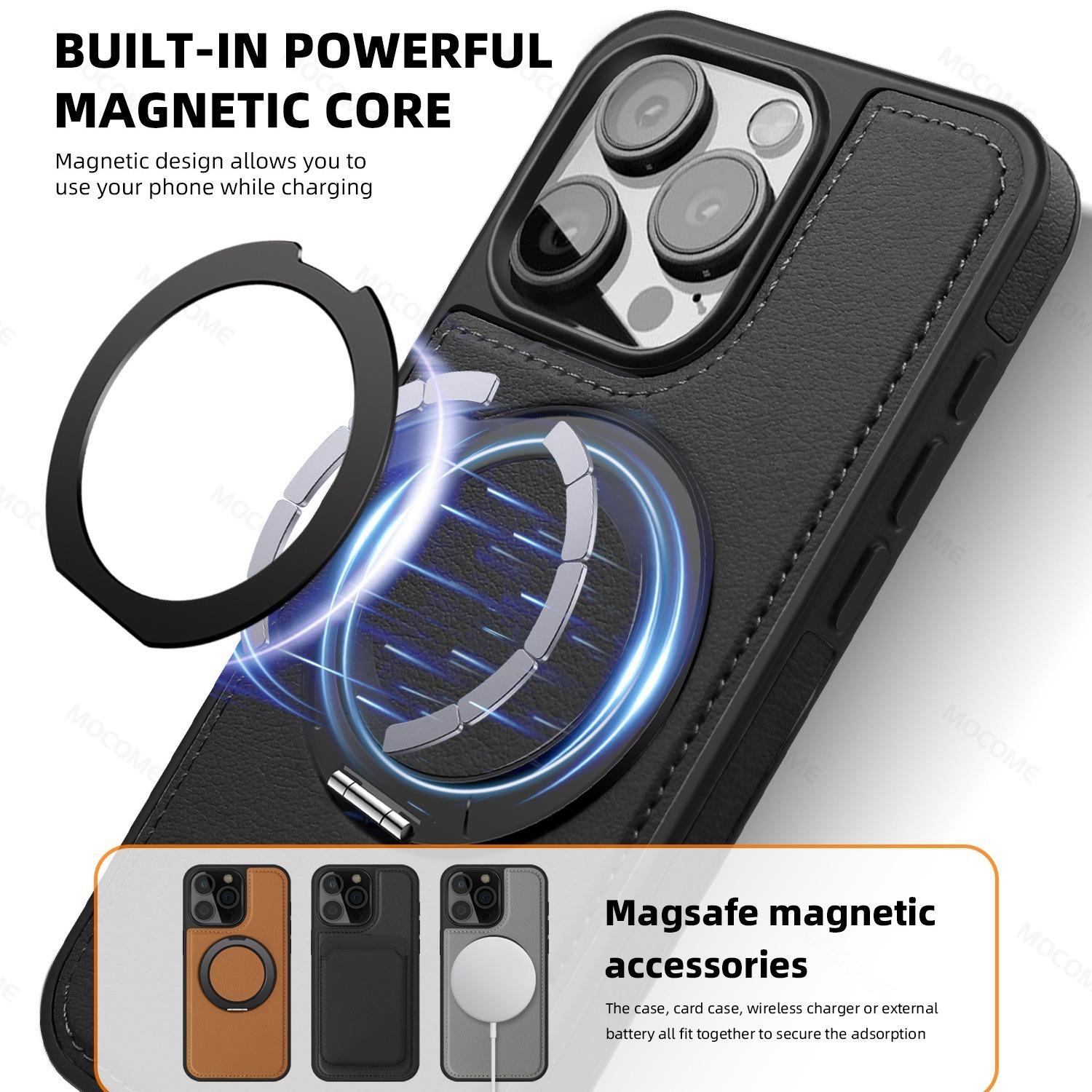 Luxury Full Leather Phone Case WIth Multifunctional Climbing Rope For Magsafe For iPhone 16 15 14 13 12 11 Magnetic Rotate Metal Holder Kickstand Hard Back Cover