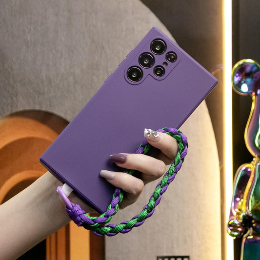 Silicone Matte Phone Case with Braided Rope Bracelet For Samsung S25 S25Plus S25Ultra S24 S24FE S24Plus S24Ultra Camera Protect Soft Cover