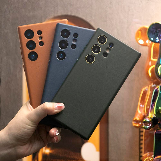 Business Lens Protector Plain Leather Phone Case for Samsung S25 S24 S23 Ultra Anti-Drop Full Cover Phone Case