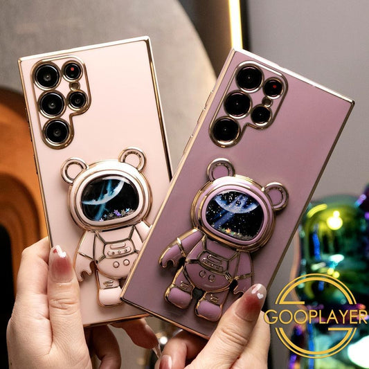 Quicksand Bear Stand Plating Phone Case For Samsung S25 S24 S23 S22 S21 Note20