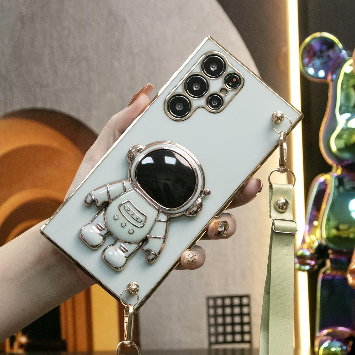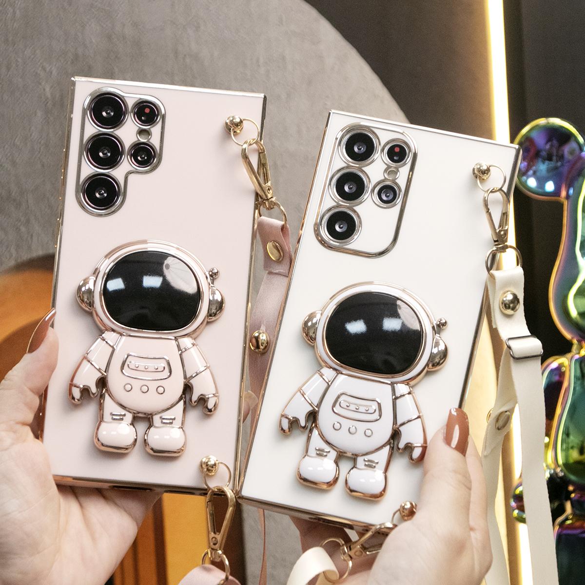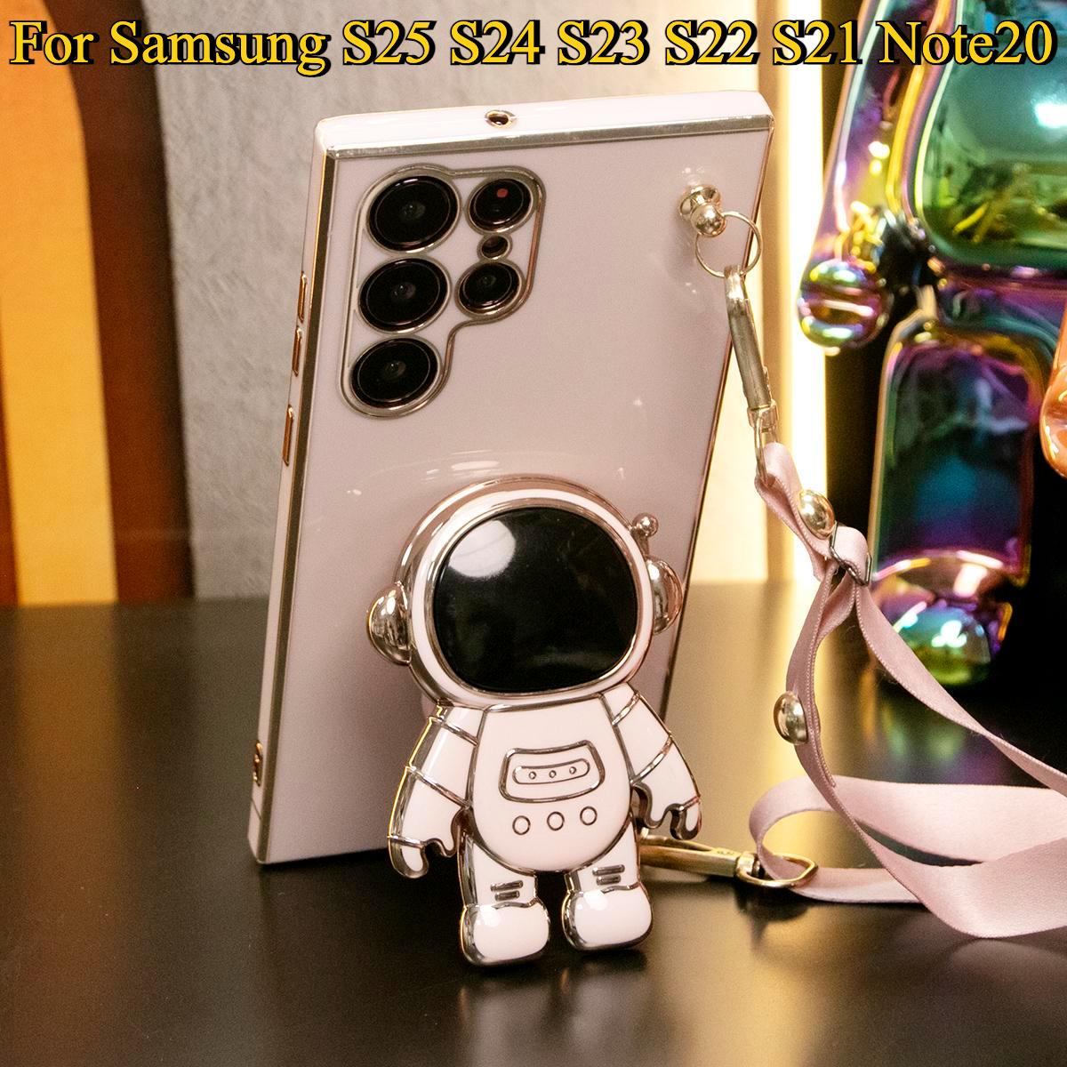 Astronaut Holder Crossbody Lanyard Phone Case For Samsung S25 S24 S23 S22 S21 Note20 Soft TPU Back Cover