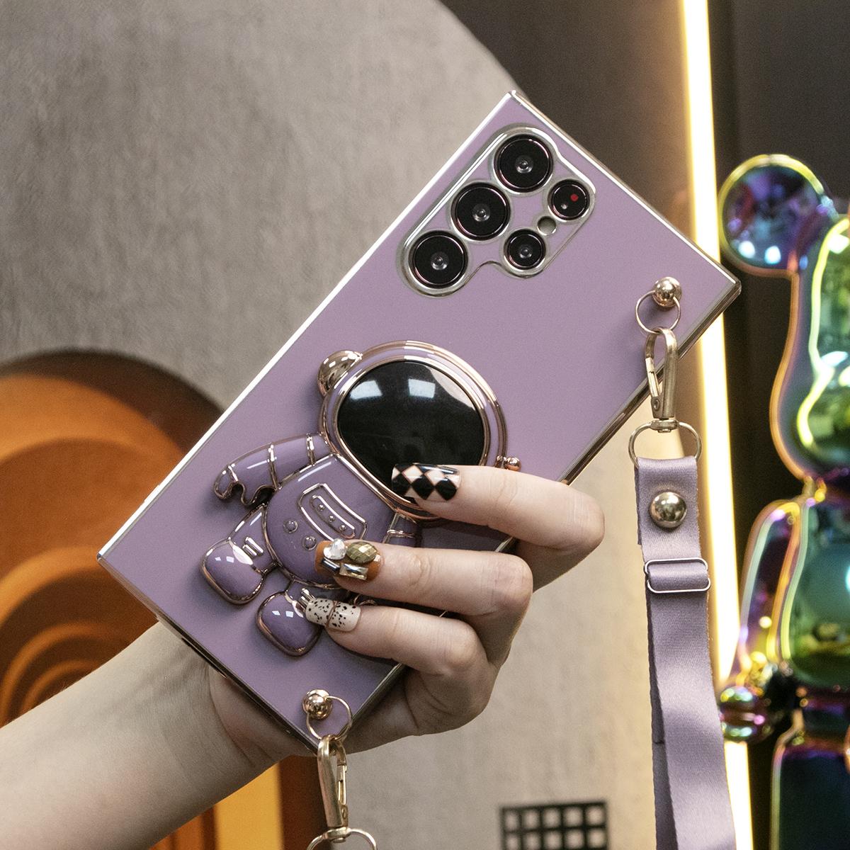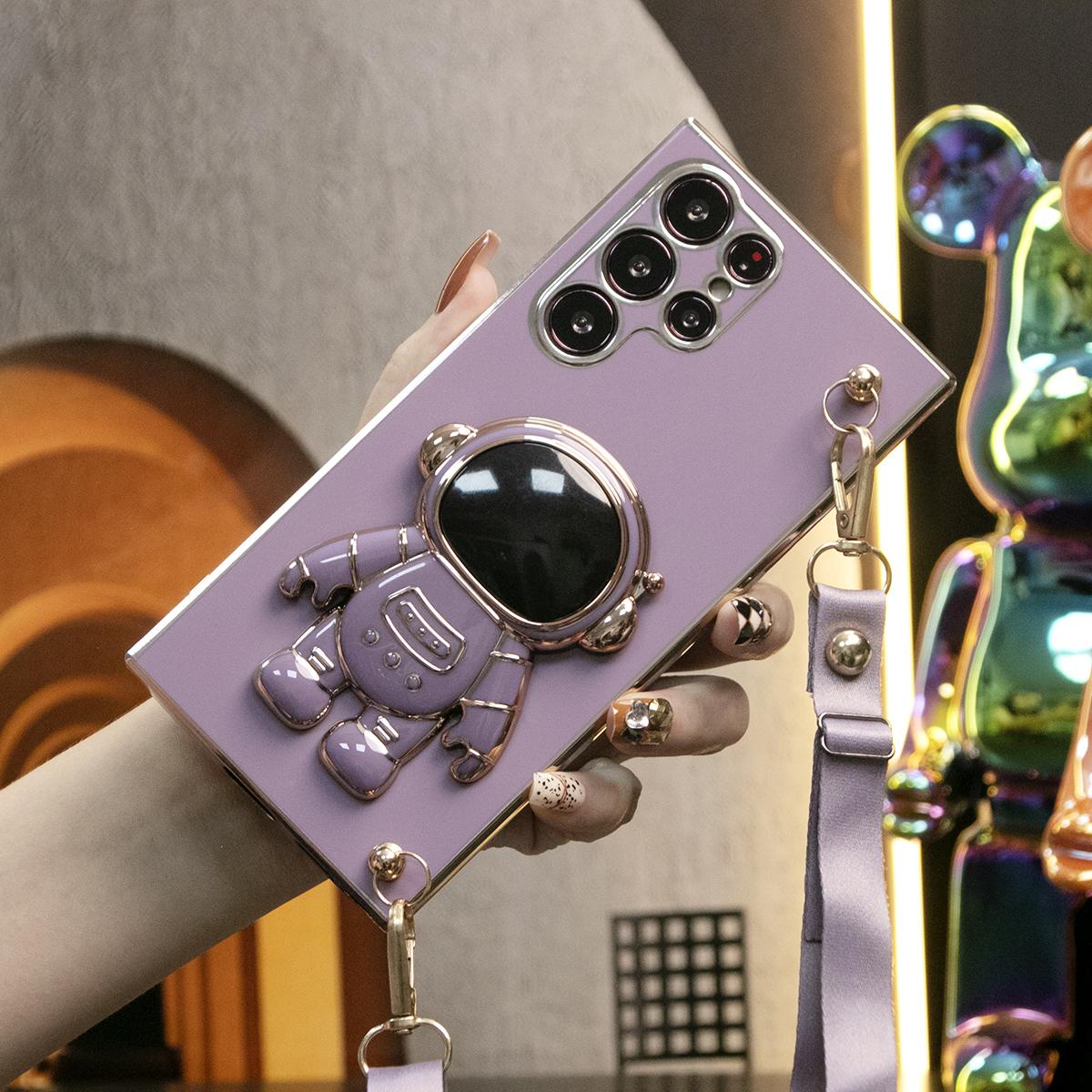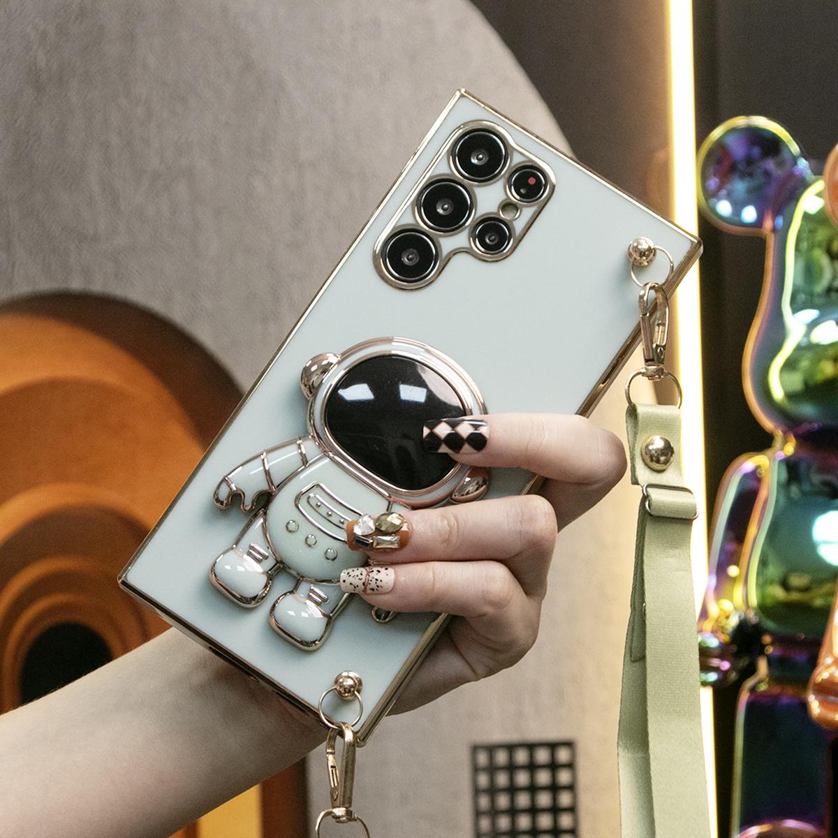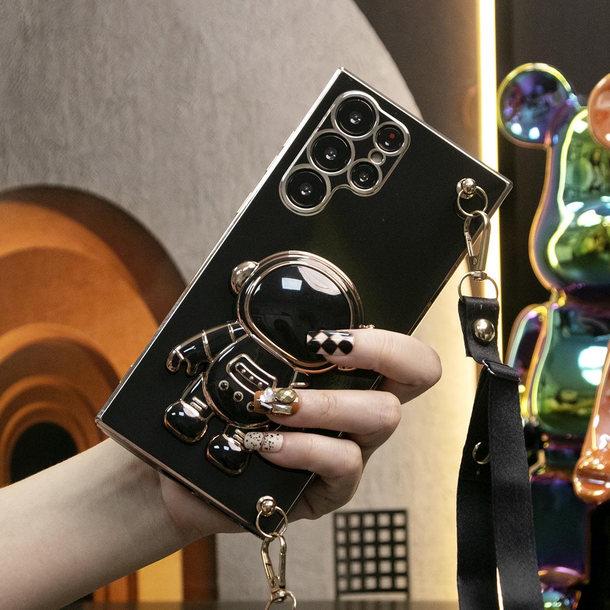 Astronaut Holder Crossbody Lanyard Phone Case For Samsung S25 S24 S23 S22 S21 Note20 Soft TPU Back Cover