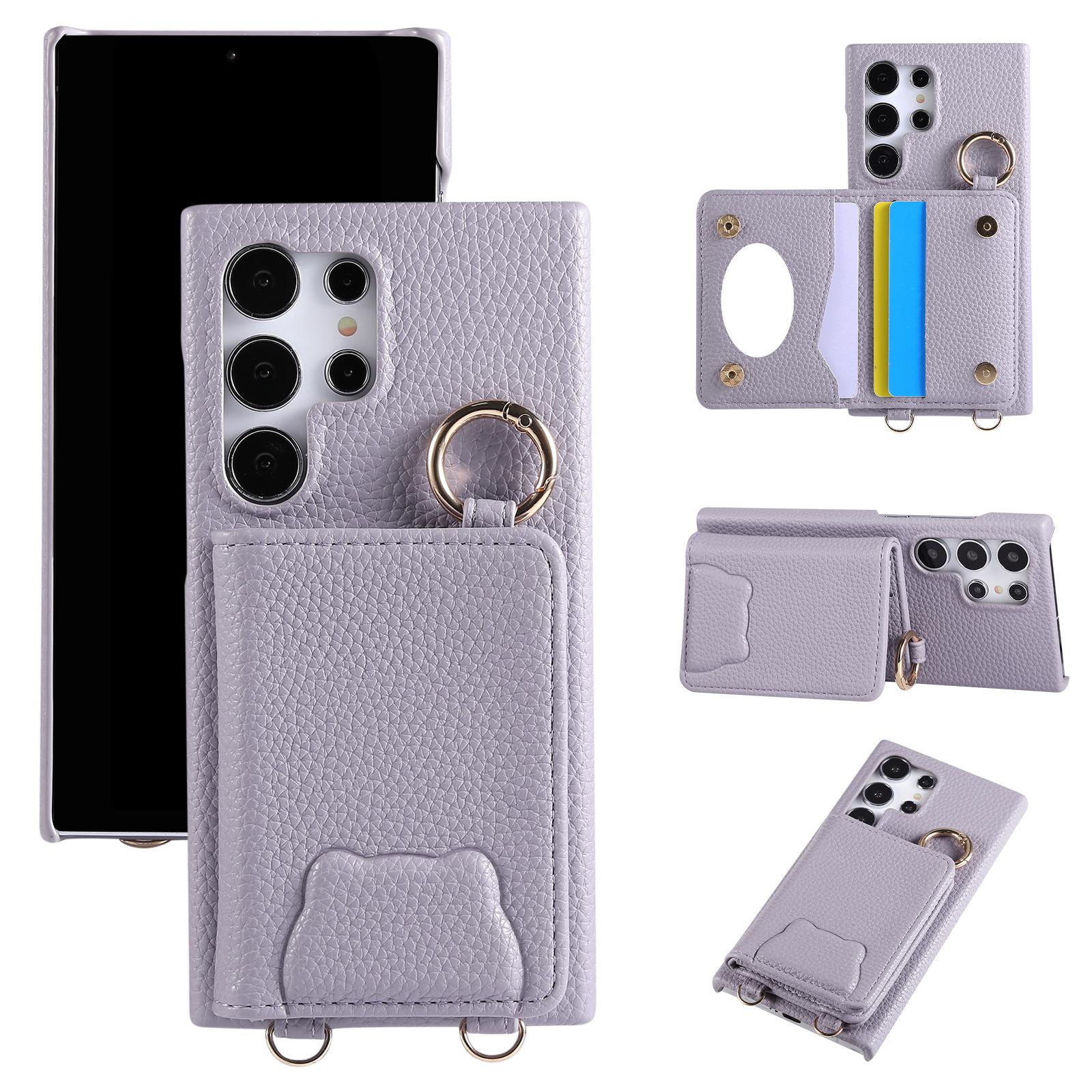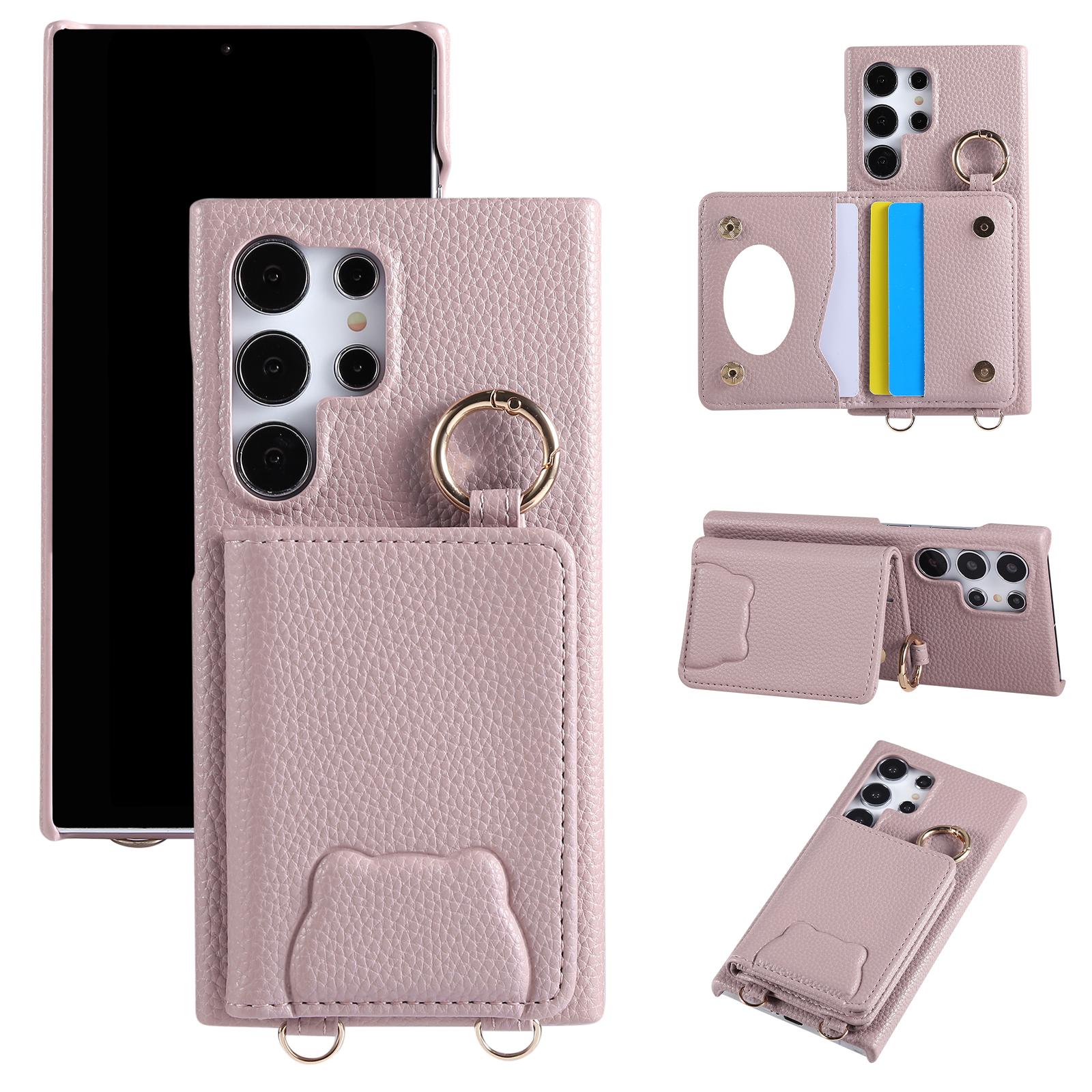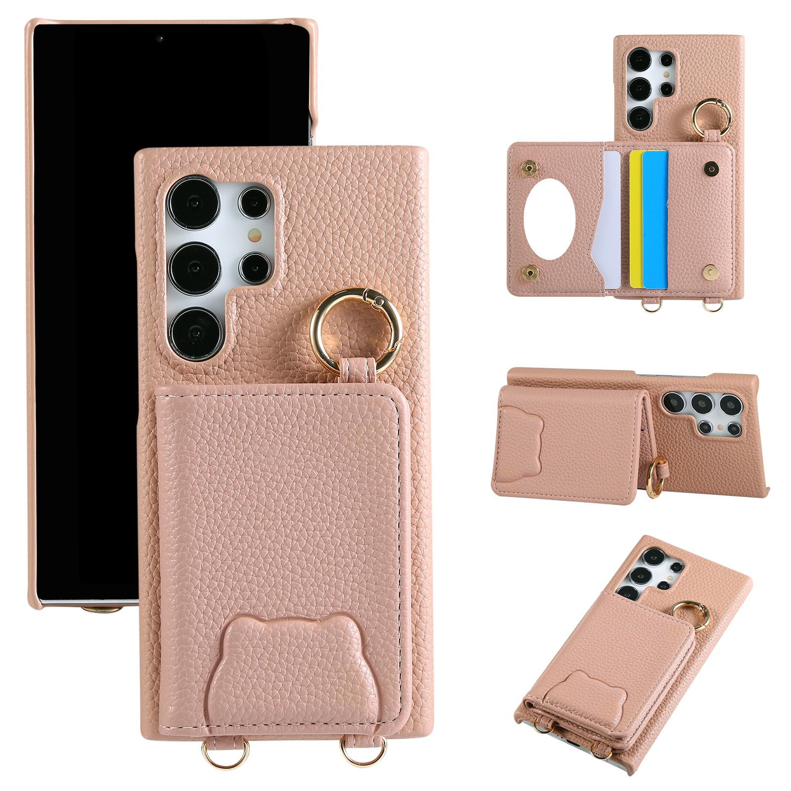 Bear Crossbody Mirror Wallet with Card Holder Phone Case for Samsung Galaxy S25 S24 S23 S22 Ultra Plus S24 FE Back Cover
