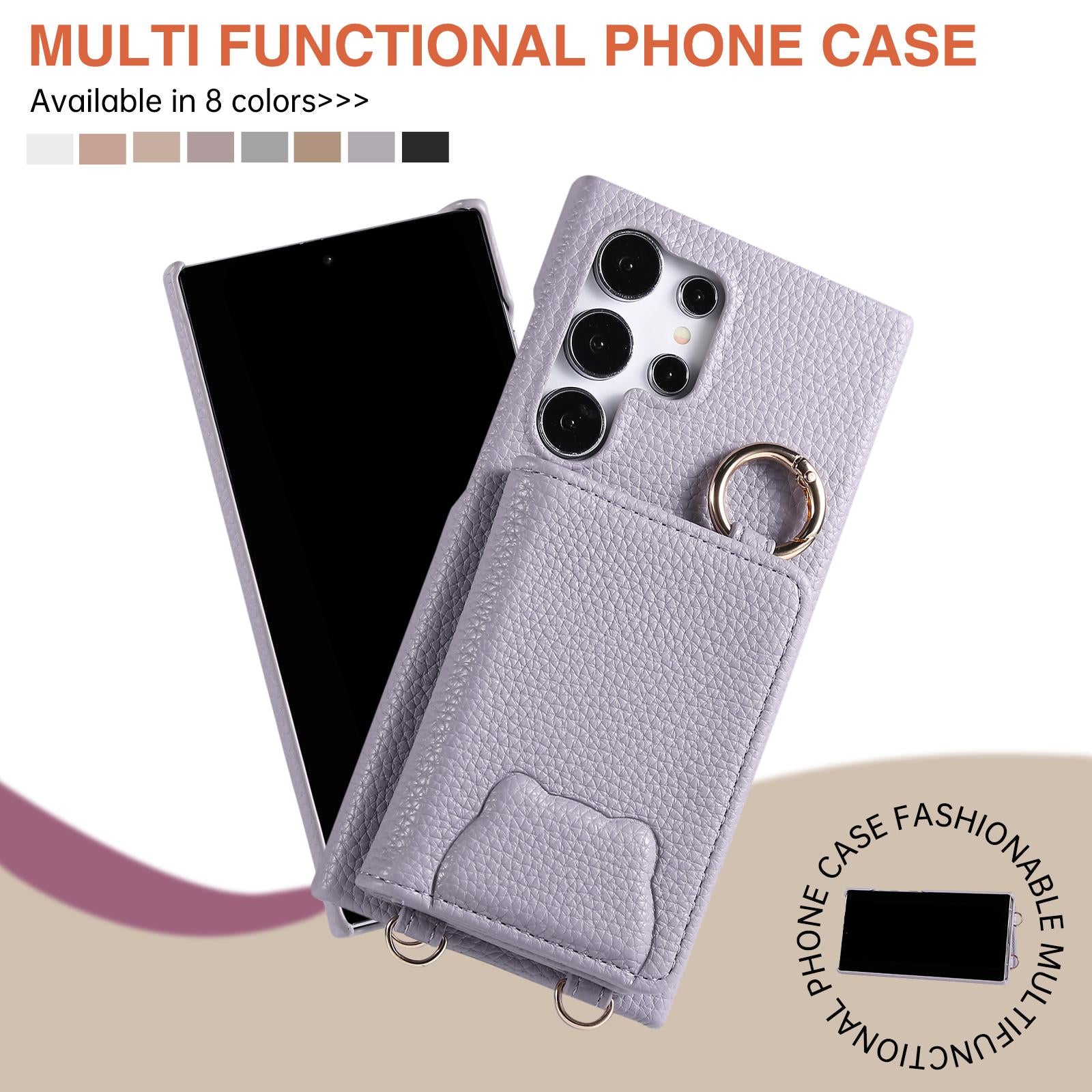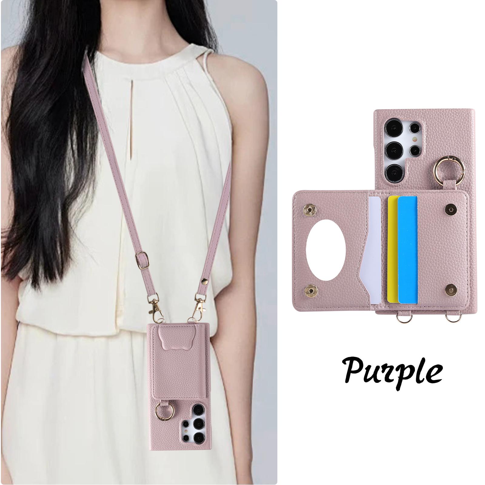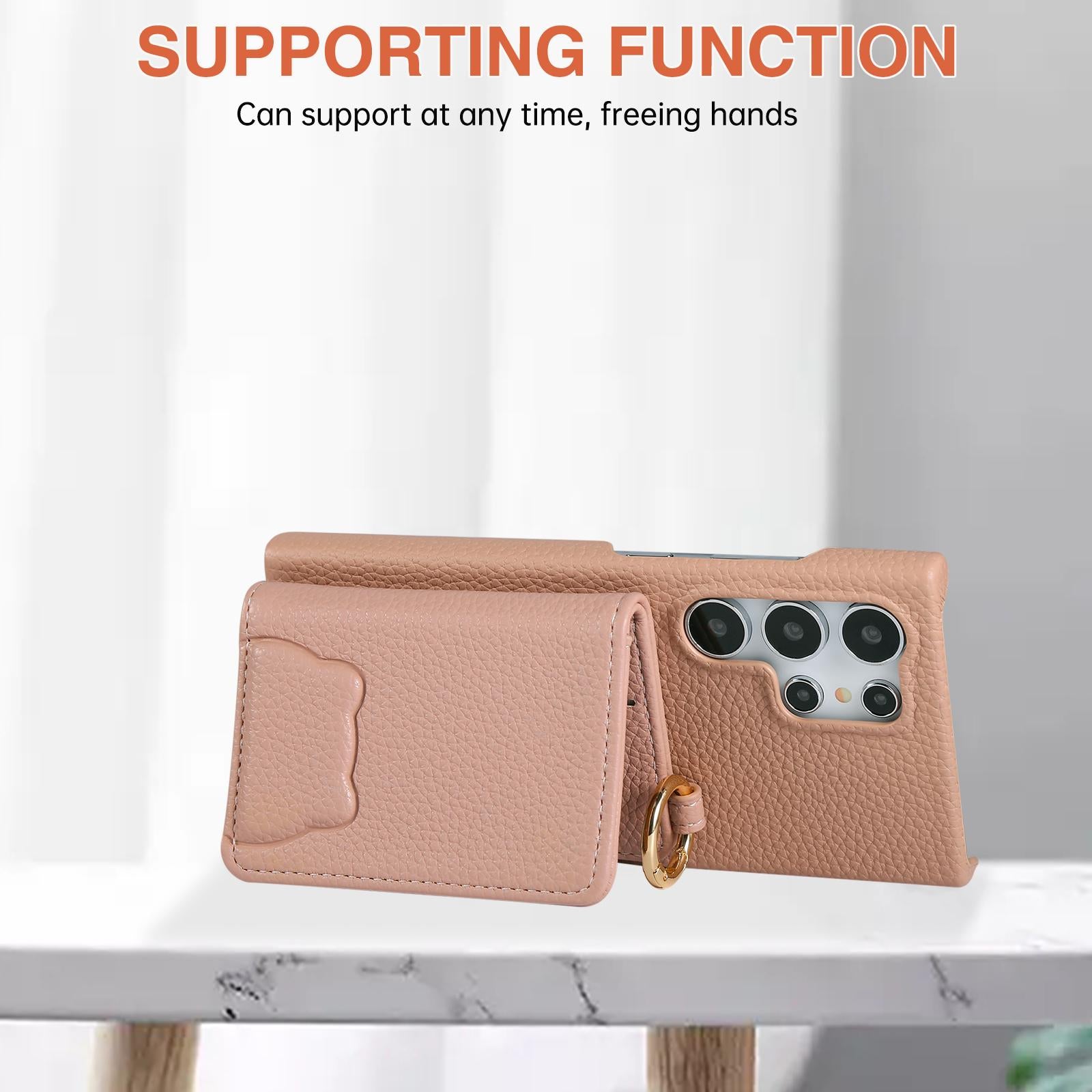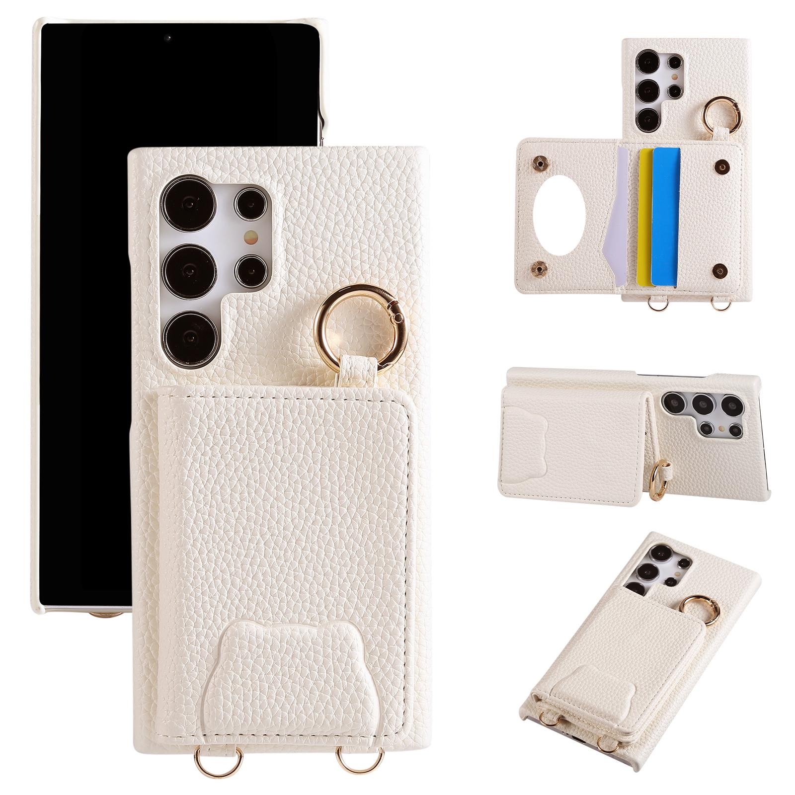 Bear Crossbody Mirror Wallet with Card Holder Phone Case for Samsung Galaxy S25 S24 S23 S22 Ultra Plus S24 FE Back Cover