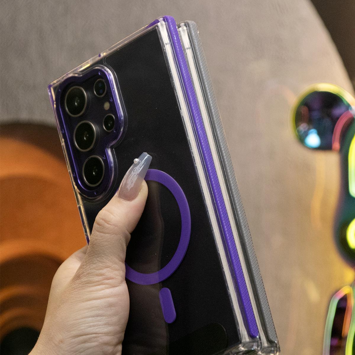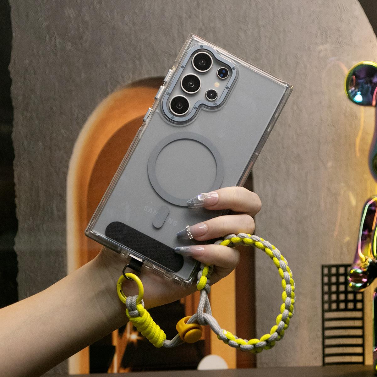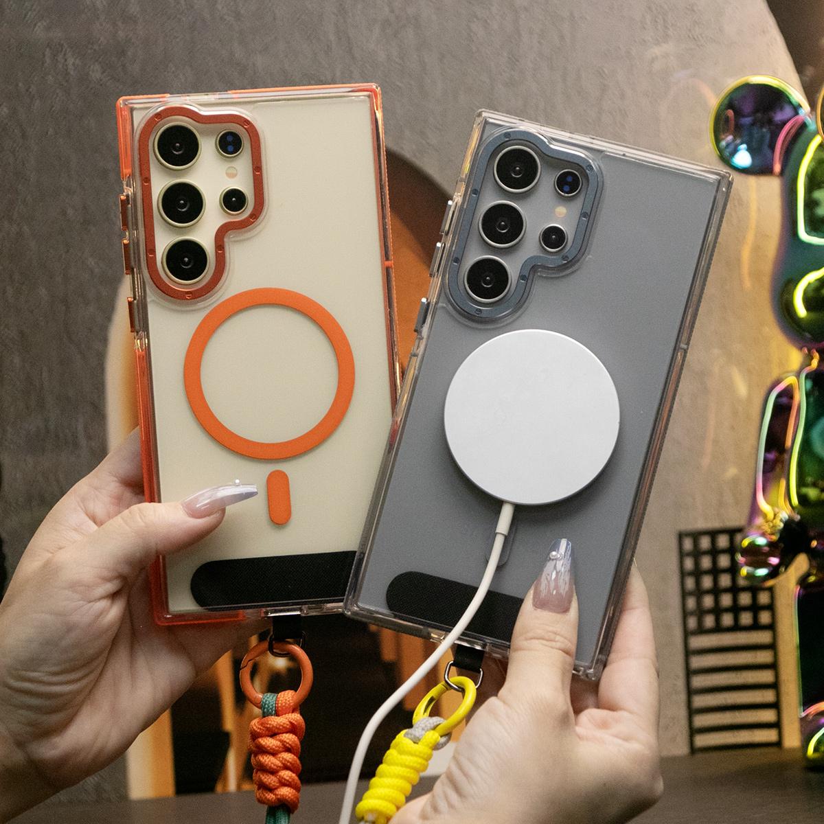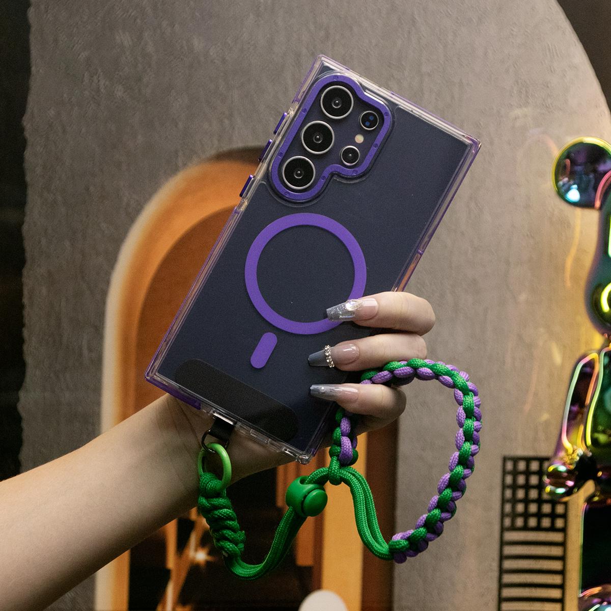Dual Color Magnetic Clear Shockproof Phone Case For Magsafe Wireless Charging Case With Multifunctional Handmade wristband For Samsung S24 S23 Plus Ultra Clear TPU Acrylic Hard Cover