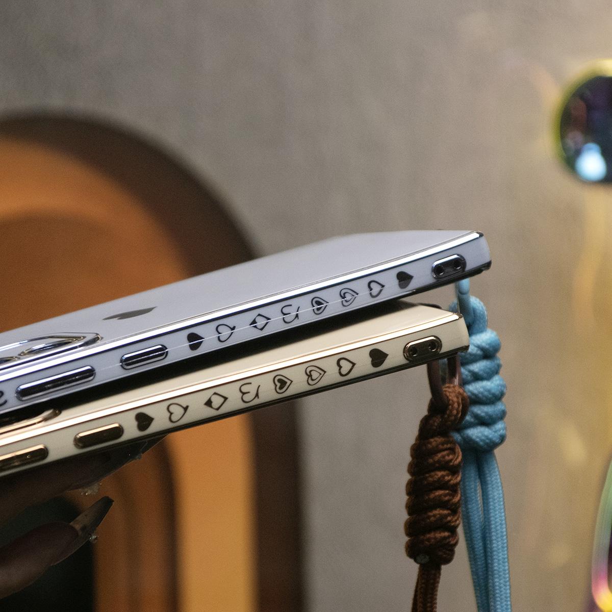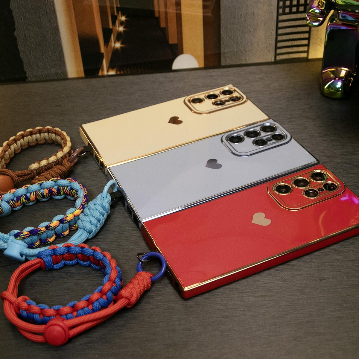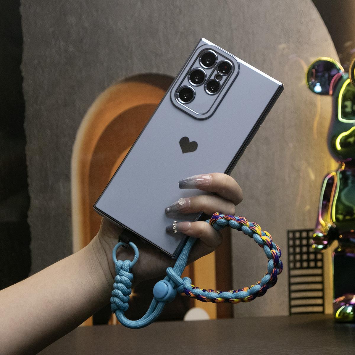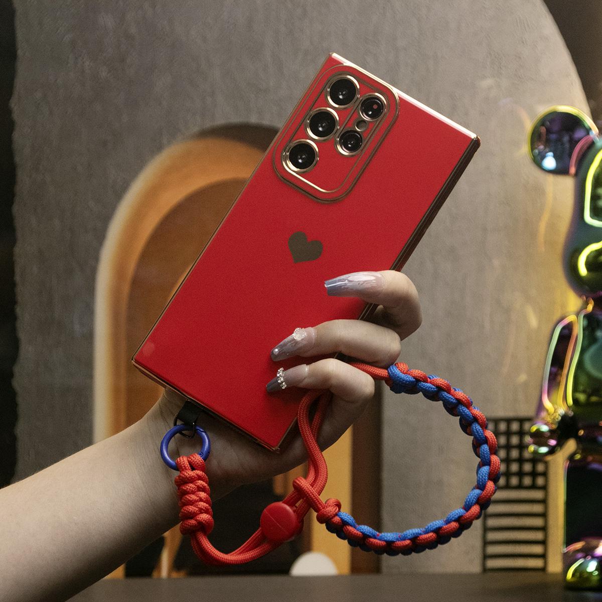 Love Heart Side Pattern Plating Basic Phone Case With Adjustable Wristbands For Samsung S21 S21FE S21Plus S21Ultra S22 S22Plus S22Ultra S23 S23Plus S23Ultra S24Ultra Plus