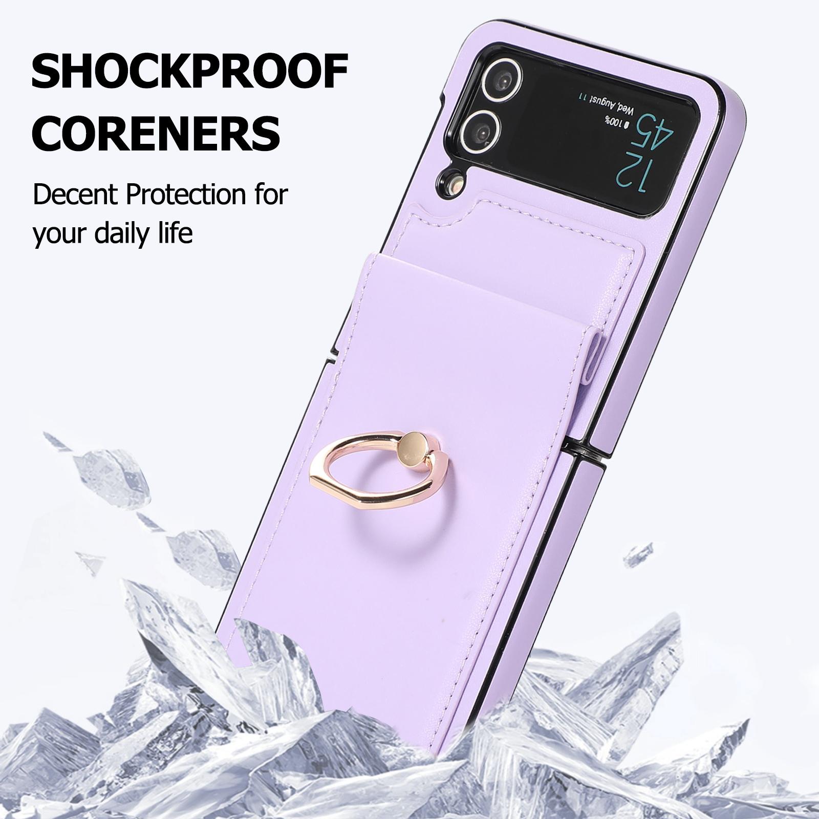 Luxury for Galaxy Z Flip3 4 5 6 Phone Case with Ring Holder Leather Kicstand Stockproof Protective Lightweihgt Thin Cover