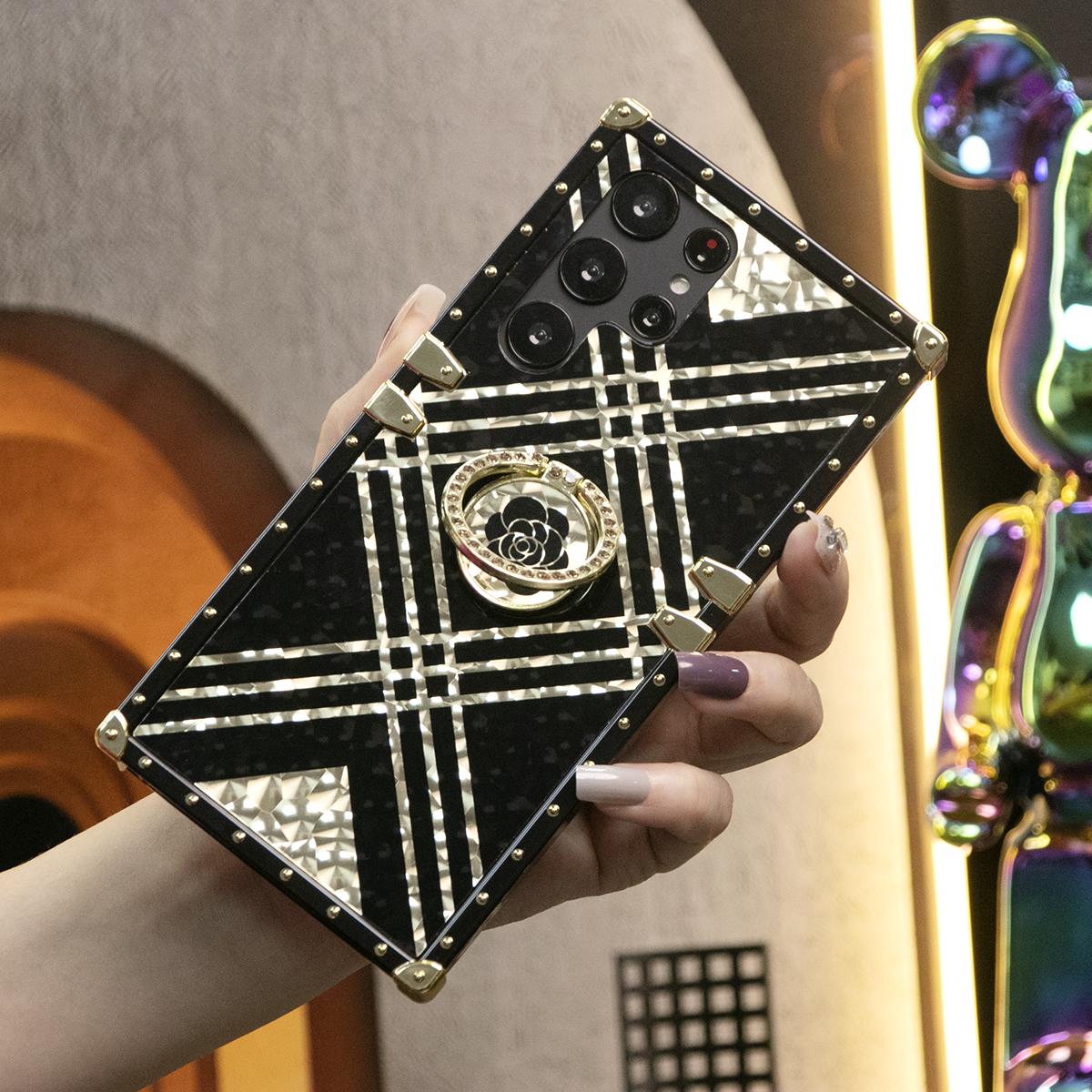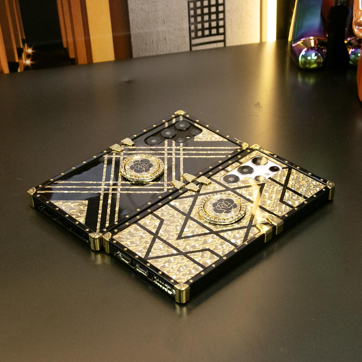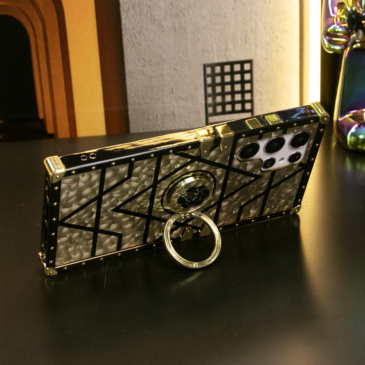 Luxury Glitter Phantom Stripe Flower Heavy Duty Protection Ring Stand Cover Plating Phone Case For Samsung S25Ultra S25 S24 S23 S22 S21 FE Plus Ultra Note20 A55 A54 A35 A34 A25 A24 A15 A14