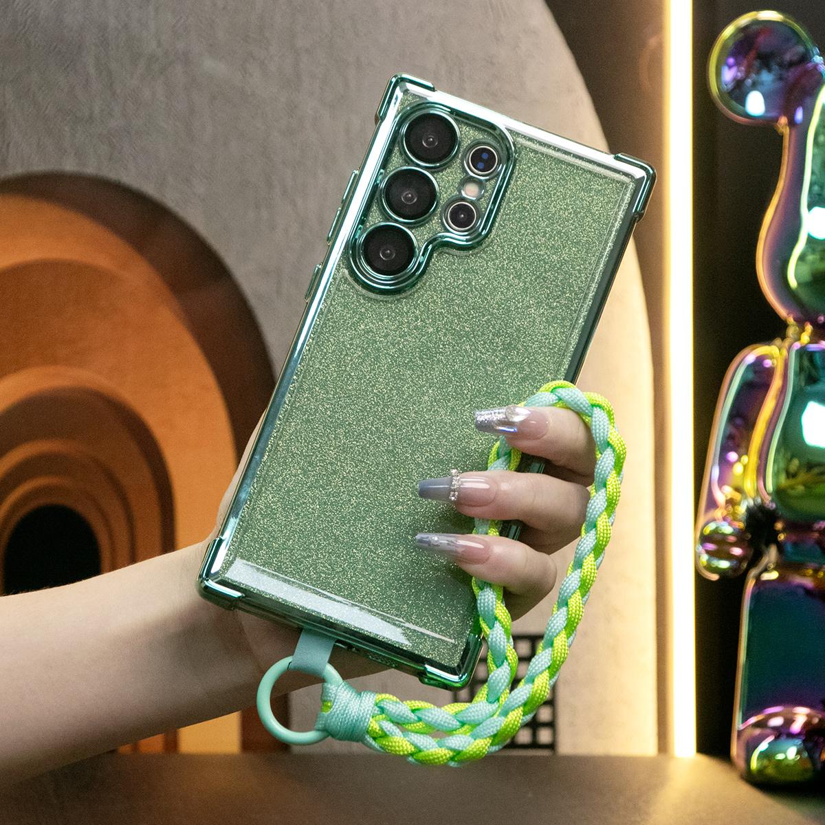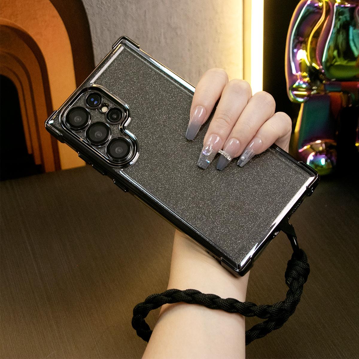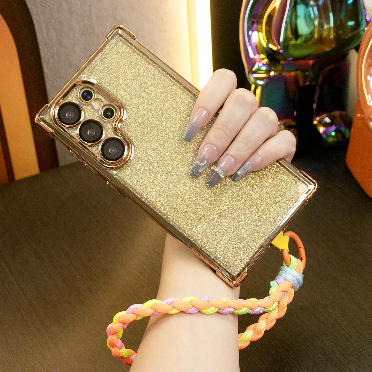 Luxury Glitter Plating Four Corners Shockproof Clear Case With Woven Wristband for Samsung Galaxy S24Ultra S24FE S24 S23FE S22 S21 Plus Transparent Hard Acrylic Hybrid Bumper Armor Cover