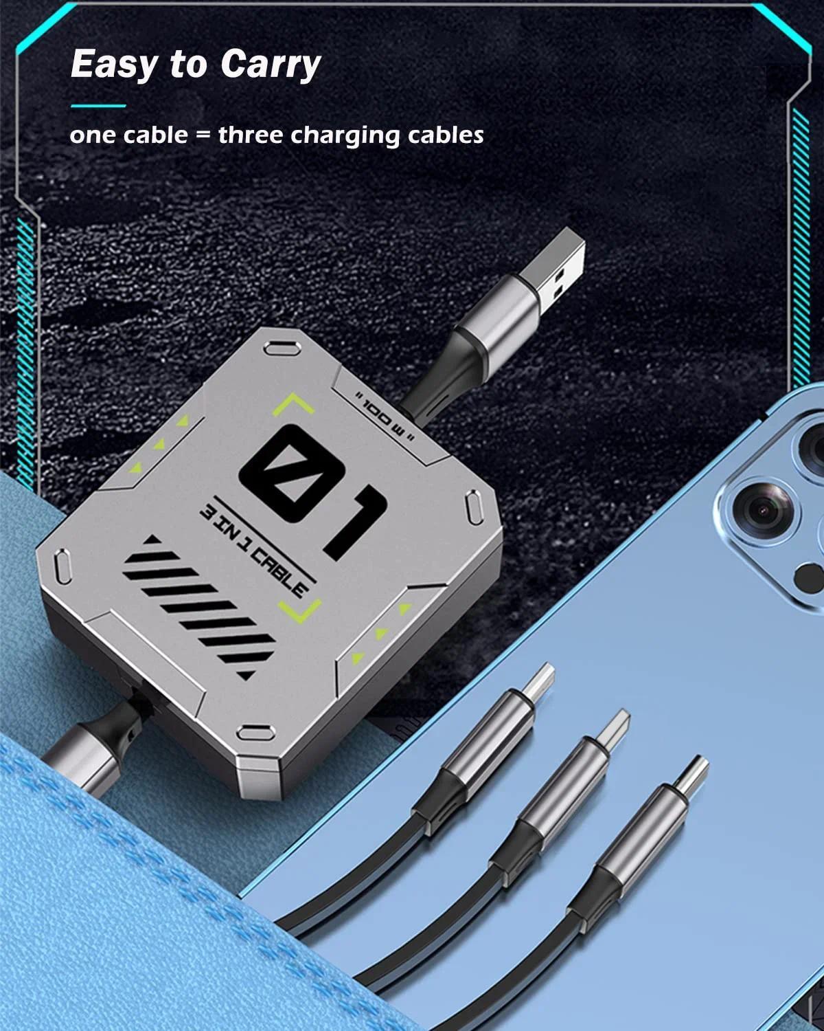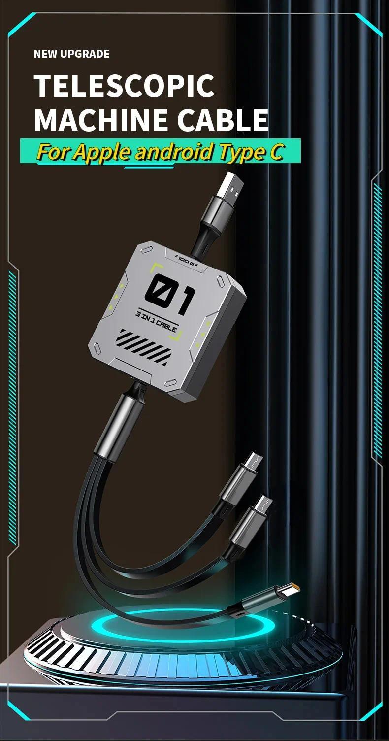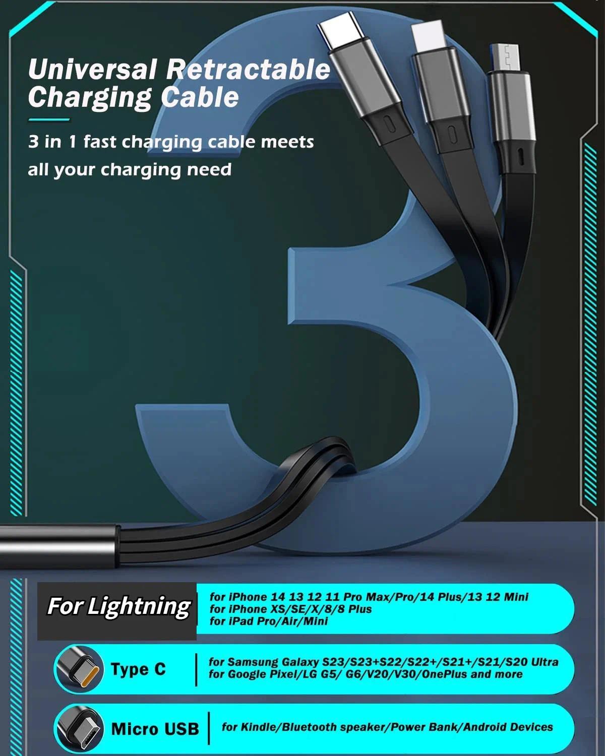 3 In 1 USB Charge Cable 5A 100W for iPhone Samsung Huawei Xiaomi Retractable Portable Micro USB Type-C Cable Charging Cable