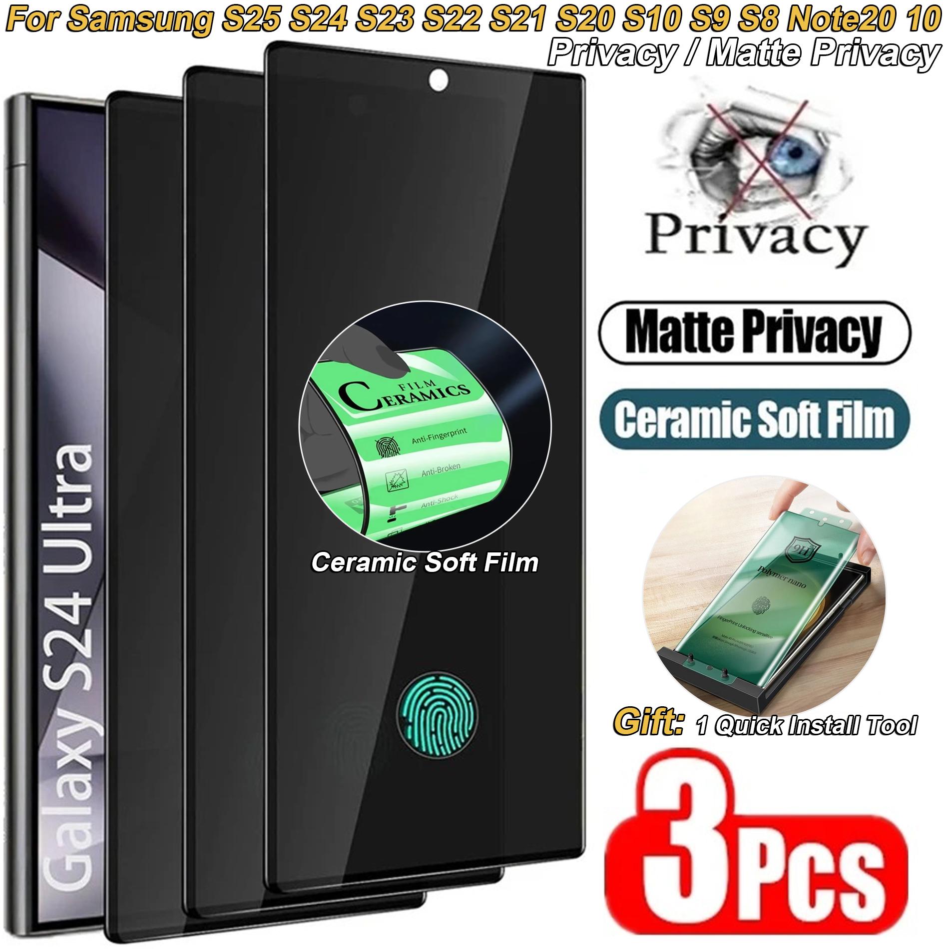 3 Pieces Matte Shock Absorption Ceramic Privacy Screen Protector for Samsung Galaxy S25Ultra S25 S21 S20 S22 S23 S24 Ultra Note 20 10 S8 S9 S10 Plus Anti Spy Film with Install Kit