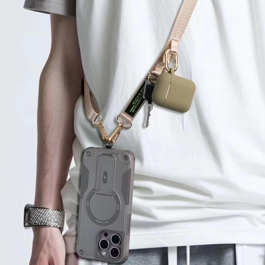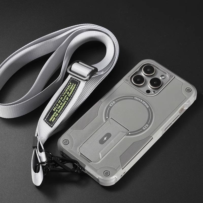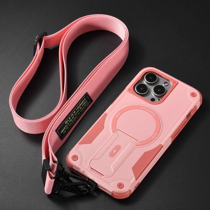 Anti-Dust Anti-Fall Heavy Duty Protection Shockproof Magnetic Phone Case Kickstand With Long Wristband for iPhone 16ProMax 16 15 14 13 12 11 Lanyard Bumper Matte Hard Cover