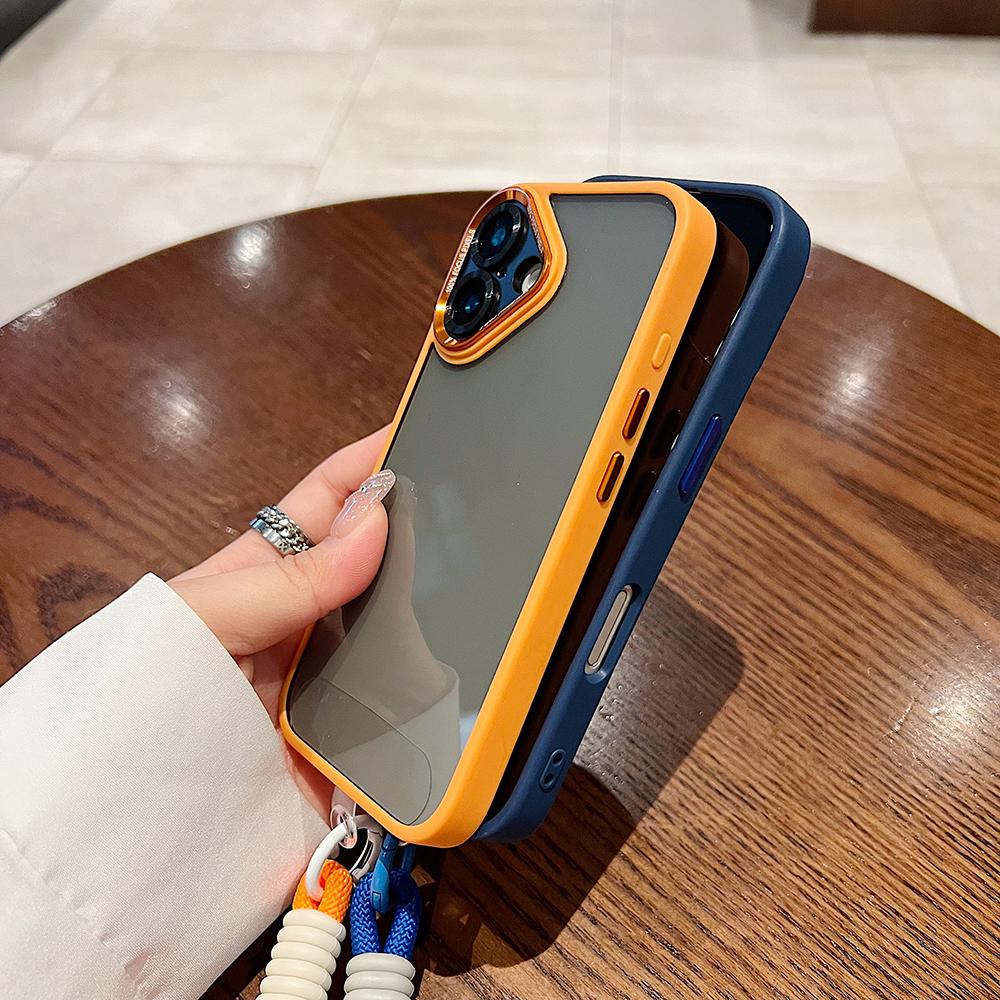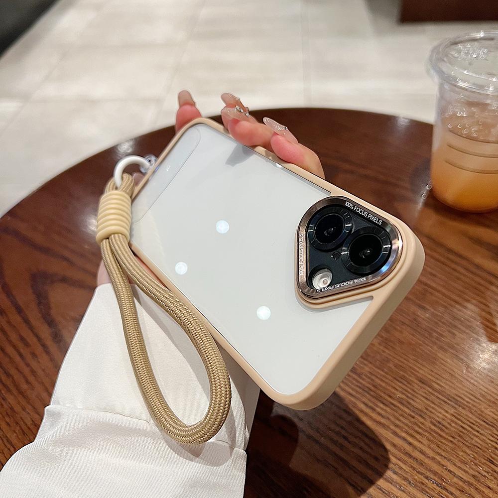 Colorful Crystal High Definition Clear Phone Case with Woven Wristband For iPhone 16ProMax 16 15 14 13 12 11 Pro Max Plus Transparent HD Len Protection Hard Full Cover